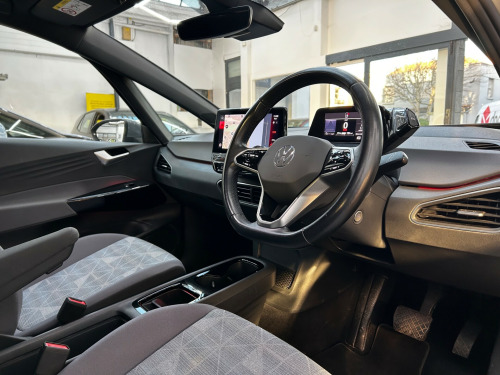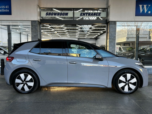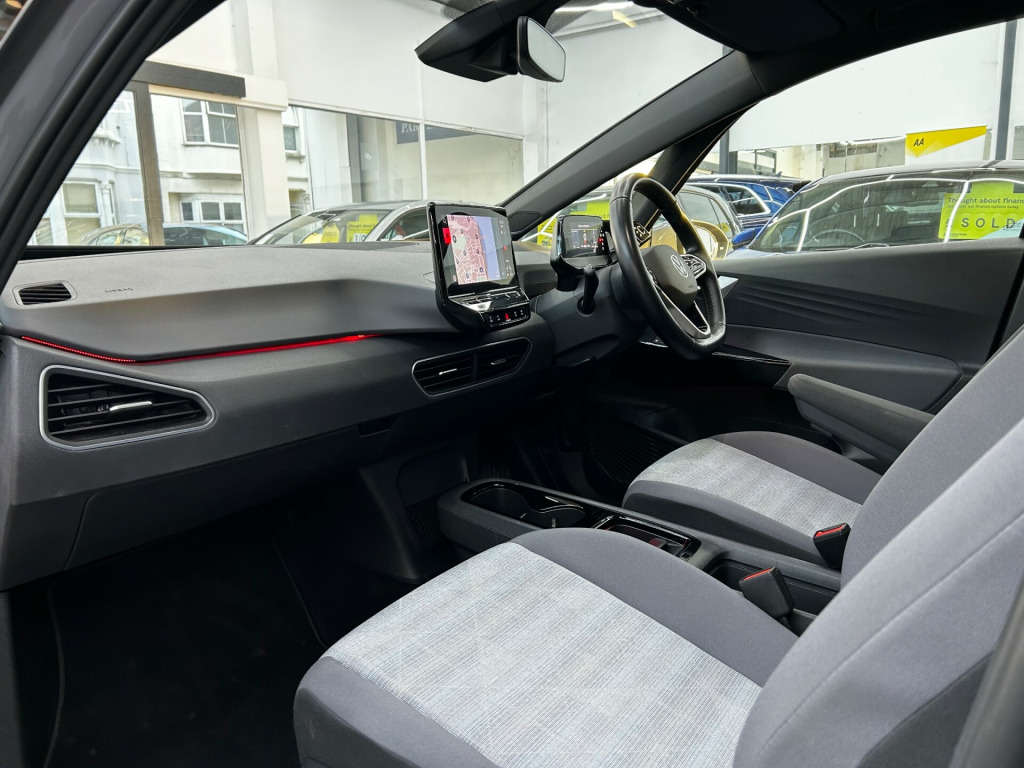 W Jones of Bognor are delighted to present this lovely Volkswagen ID.3 Pro 58kWh Life Electric Auto 5dr. Across all our stock, we ensure servicing is up to date, provide a new 12 month MOT, and provide warranty options of 3/6/12 months. As we are an AA Approved dealership, all vehicles come with 12 months AA breakdown cover free of charge. We are partnered with one of the largest finance brokers in the country, Evolution Funding, in order to cater to all deal sizes and credit ratings, on both HP and PCP. Unsure if you'll be accepted? We can soft search your credit profile to check how likely you are to be accepted! W Jones is a family run business, founded in 1902 and currently run by a 5th generation Jones. We have an indoor showroom facility and also a workshop, for MOTs, servicing and repairs. If you have any questions please do not hesitate to get in touch. zone climatronic, armrest integrated into front seats, comfort package, digital dashboard, free weconnect start for first 3 years, id light, interior ambient lighting - 10 colours, remote tailgate unlocking, special wecharge conditions for id 3 customers within first 3 years, 10in infotainment system, car2x technology, dab digital radio, infotainment package, security and service - sos buttons, we connect id app, wireless app connect, 18in steel wheels - aero, black roof, body coloured bumpers - door handles and door mirrors with integrated indicators, electric windows - front and rear, heated rear window, tool kit with tyre mobility kit, abs - anti-lock braking system, airbag - front centre, airbags - curtain front, airbags - driver, airbags - front side, airbags - passenger, electronic parking brake with auto hold function, exterior e-sound, interior alarm, ncap pack - forward collision warning - extended and proactive pedestrian protection, adaptive cruise control acc including front assist - radar sensor controlled distance - monitoring system - city emergency braking system - cruise control and speed limiter, driver alert system, lane assist, mode 3 - 32-amp - 7.2kw charging cable for charging at public charge points, natural voice control, parking sensors - front and rear, power assisted steering - speed sensitive, winter driving mode, all-led headlights with reflector technology