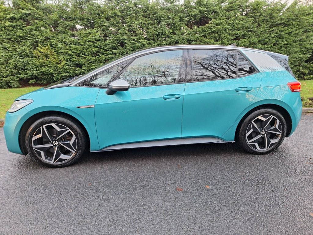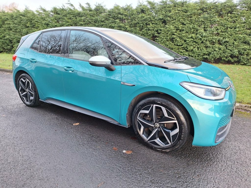 A Stunning example of this Futuristic VW Model. Finished in Stunning Makena Turquoise with Gloss black roof and complimenting Grey & Black Upholstery this really does look the business. This is the 58KW Electric Auto offering which provides staggering performance with over 204ps and also returns a fantastic range of 270 miles. Some WLTP Figures have recorded over 300 miles of range for this model. As you'd expect this is also ULEZ Compliant. Being the Flagship 1st Edition, Pro Performance Model, the specification level is extremely high. The spec highlights are: Navigation, Bluetooth, LED Headlights, Heated Seats, Heated Steering Wheel, Alloy Wheels, Reverse Camera, Parking Assistance, Cruise Control, Rain Sensor Wipers & Auto Headlights, On Board Computer, USB Ports x 2, Wireless Phone Charging, The List Just Goes on and On!!!! This is a lovely, low mileage car in excellent condition throughout. We are lucky to be able to offer it for sale including both original remote keys and we have all the relevant documents present to conclude a sale. Just arrived in stock, please call for more info. We also offer low rate HP & PCP options as well top prices for Part exchanges. Flow - Art Velours - Cloth Style - Plati, Mode 2 - 3-Pin Mains - Charging Cable, Makena Turquoise with Black Roof, 10in Infotainment System, 19in Alloy Wheels - Andoya, ABS - Anti-Lock Braking System, Adaptive Cruise Control ACC including Fr, Airbag - Front Centre, Airbags - Curtain Front, Airbags - Driver, Airbags - Front Side, Airbags - Passenger, Armrest Integrated into Front Seats, Black Roof, Body Coloured Bumpers - Door Handles and, Car2X Technology, Carpet Mats - Front and Rear, Comfort Package Plus, DAB Digital Radio, Design Package, Digital Dashboard, Driver Alert System, Driver Profile Selection with Personalis, Electric Windows - Front and Rear, Electronic Parking Brake with Auto
