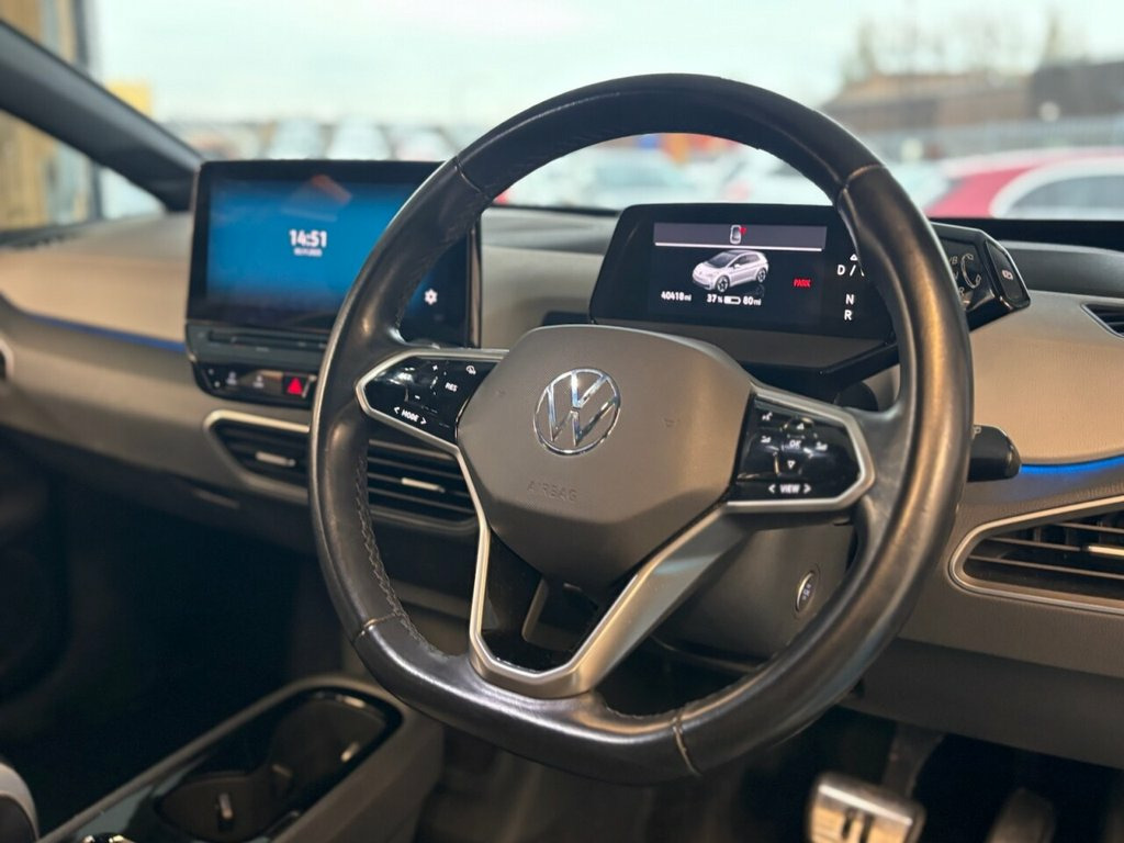 2 KEYS+2 CABLES+PARK CONTROL+18" ALLOYS+DIGITAL DASH+CLIMATE+BLUETOOTH+MEDIA+NAV+USB+AUX+DAB+CRUISE+HPI CLEAR+VOSA MOT HISTORY PRINTOUT, PART EXCHANGE WELCOME, FULL DEALER FACILITIES, CLEAN CAR+NICE DRIVE+RAC CHECKED+good mpg, The car is in very good condition in and out . Bodywork and interior clean for age and mileage . Interior is clean and tyres good ,Engine and gearbox in good order. This 2021 Volkswagen ID.3 Pro Performance Life is a fantastic example of electric motoring, having been owned by just one person since new. As a fully electric vehicle, it offers a smooth and quiet driving experience. This particular model, the Life trim, comes equipped with a 62 kWh battery, providing an impressive maximum range of 260 miles when new. For convenience, a full charge at home using a 7kW charger takes approximately 9 hours and 30 minutes, while rapid public charging can replenish the battery from empty to 80% in as little as 37 minutes. The ID.3 Pro Performance Life boasts a range of notable features designed to enhance your driving pleasure and safety. These include All LED Headlights with Reflector Technology for excellent visibility, and front and rear parking sensors to assist with manoeuvring. Adaptive Cruise Control with Front Assist, including City Emergency Braking, helps maintain a safe distance from the vehicle ahead. Inside, you'll find a 1 Zone Climatronic system for comfortable cabin temperatures and a Comfort Package that adds heated seats and a heate 1-Zone Climatronic, 10in Infotainment System, 18in Alloy Wheels - East Derry, 18in Steel Wheels - Aero, ABS - Anti-Lock Braking System, Adaptive Cruise Control ACC including Fr, Airbag - Front Centre, Airbags - Curtain Front, Airbags - Driver, Airbags - Front Side, Airbags - Passenger, Armrest Integrated into Front Seats, Assistance Pack, Black Roof, Body Coloured Bumpers - Door Handles and, Car2X Technology, Comfort Package, DAB Digital Radio, Design Package, Digital Dashboard, Driver Alert System, Driver Profile Selection with Personalis, Electric Windows - Front and Rear, Electronic Parking Brake with Auto Hold , Exterior E-Sound, Free WeConnect Start for First 3 Years, Glacier White with