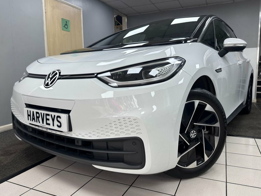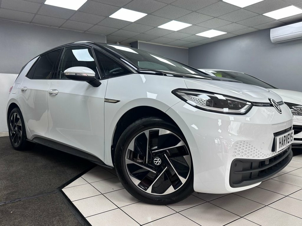 1 OWNER FROM NEW This desirable low mileage top spec model looks exceptional in gleaming Glacier white with black roof, 18" alloy wheels & sports interior. WARRANTY INCLUDED etc, Beautifully designed sporty looks, Powerful 200BHP ofering strong performance with Rapid acceleration. ( 0-60 in 7.3 seconds! ) Excellent road-holding ability combined with class leading comfortable ride, top specification, excellent range of up to 260 miles, strong safety rating, large loading capacity & VW engineered to the highest standard. A sporty looking model that performs well in comfort & style, this car looks amazing & has high VW build quality & durability. A beautifully presented low mileage Family 1 owner example that is offered in the most desirable colour & looks stunning throughout. Consistently rated & reviewed as the best in its class, this highly sought after vehicle looks absolutely stunning & represents excellent value. 10in Infotainment System, 18in Alloy Wheels - East Derry, 18in Steel Wheels - Aero, ABS - Anti-Lock Braking System, Adaptive Cruise Control ACC including Fr, Airbag - Front Centre, Airbags - Curtain Front, Airbags - Driver, Airbags - Front Side, Airbags - Passenger, Armrest Integrated into Front Seats, Assistance Pack, Black Roof, Body Coloured Bumpers - Door Handles and, Car2X Technology, Carpet Mats - Front and Rear, Comfort Package Plus, DAB Digital Radio, Design Package Plus, Digital Dashboard, Driver Alert System, Electric Windows - Front and Rear, Electronic Parking Brake with Auto Hold , Exterior E-Sound, Flow - Art Velours - Cloth Style - Plati, Free WeConnect Start for First 3 Years