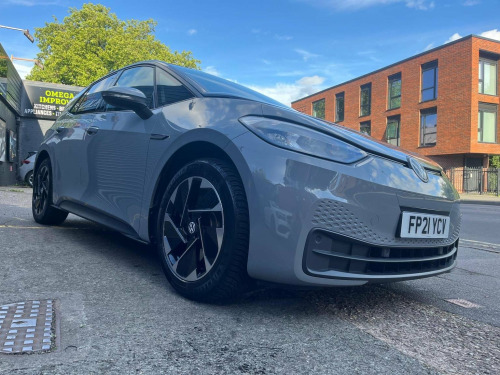 Volkswagen ID.3 Pro Performance 58kWh Life Auto 5dr, CAR FEATURES INCLUDE, HEATED SEATS, HEATED STEERING WHEEL, NAVIGATION, CRUISE CONTROL, PARKING SENSORS,ELECTRIC FOLD WING MIRRORS. *CAR COMES WITH 6 MONTHS WARRANTY*, *FCA APPROVED*FINANCE AVAILABLE*VAT REGISTERED*BUY WITH CONFIDENC. Experience the future of driving with this 2021 Volkswagen ID.3 Pro Performance Life, an all-electric hatchback that combines practicality with cutting-edge technology. This ID.3, in its Life trim, offers a smooth and quiet ride, powered by its electric motor. The ID.3 boasts a large boot space, making it more practical than similar vehicles. The car accelerates from 0-62mph in just 7.3 seconds, showing that it is faster than other similar vehicles. The 62 kWh battery provides a maximum range of 260 miles when new, exceeding the range of other similar vehicles. When you need to charge, a full charge at home using a 7kW charger takes approximately 9 hours 30 minutes. For quicker top-ups, you can achieve an 80% charge in just 37 minutes using a rapid public charger. Enjoy the convenience of Adaptive Cruise Control with Front Assist, front and rear parking sensors, and a Comfort Package including heated seats and steering wheel. The 1-Zone Climatronic ensures a comfortable cabin temperature, while the all-LED headlights provide excellent visibility.