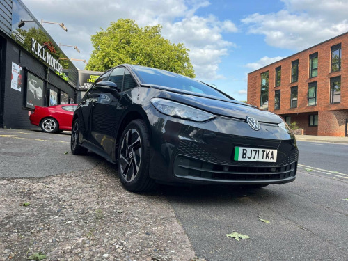 Volkswagen ID.3 Pro Performance 58kWh Life Auto 5dr, CAR FEATURES INCLUDE, HEATED SEATS, HEATED STEERING WHEEL, NAVIGATION, CRUISE CONTROL, PARKING SENSORS,ELECTRIC FOLD WING MIRRORS. *CAR COMES WITH 6 MONTHS WARRANTY*, *FCA APPROVED*FINANCE AVAILABLE*VAT REGISTERED*BUY WITH CONFIDENCE. With only one previous owner, this 2021 Volkswagen ID.3 Pro Performance Life represents a fantastic opportunity to own a modern electric vehicle. As an ID.3 Life, this model boasts a suite of features designed for comfort and convenience. Enjoy the ease of Adaptive Cruise Control (ACC) with Front Assist, making motorway driving a breeze, while the City Emergency Braking System provides added safety in urban environments. Parking Sensors at the front and rear simplify maneuvering, and the 1-Zone Climatronic ensures a comfortable cabin temperature. The Comfort Package, including heated seats and a heated steering wheel, adds a touch of luxury to your daily commute. The ID.3s impressive features extend to its performance and practicality. The large boot space makes it more practical than other similar vehicles. The 62 kWh battery delivers a maximum range of 260 miles when new, outperforming many of its contemporaries. Charging is convenient, with a full charge at home taking approximately 9 hours 30 minutes using a 7kW charger. For those needing a quicker top-up, public charging can take the battery from empty to 80% in just 37 minutes. Acceleration from 0-62mph in 7.3 seconds means it is quicker than other similar vehicles.