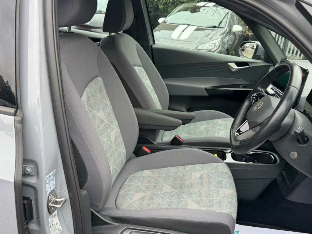 This 2021 Volkswagen ID.3 Pro Performance Life is an excellent example of a modern electric vehicle, offering a compelling blend of technology and practicality. As a fully electric model, it boasts a 62 kWh battery, providing a maximum range of up to 260 miles when new. This particular ID.3 comes equipped with a range of desirable features, including front and rear parking sensors with parking assistance, a 1 Zone Climatronic system for effortless climate control, and a Comfort Package that includes heated seats and a heated steering wheel. For enhanced visibility and safety, it features All LED Headlights with reflector technology, and the Adaptive Cruise Control ACC with Front Assist offers intelligent speed and distance monitoring, including city emergency braking and a speed limiter.The ID.3 Pro Performance Life truly stands out with its impressive performance and convenience. Its electric powertrain delivers brisk acceleration, reaching 0 to 62 miles per hour in just 7.3 seconds, a notable advantage over many comparable vehicles. Charging is also convenient, with a full charge at home using a 7kW charger taking approximately 9 hours and 30 minutes, and rapid charging from empty to 80% possible in as little as 37 minutes at a public charging station. Furthermore, this model offers generous boot space, making it a practical choice for everyday use and longer journeys.. 1-Zone Climatronic, 10in Infotainment System, 18in Steel Wheels - Aero, ABS - Anti-Lock Braking System, Adaptive Cruise Control ACC including Front Assist - Radar Sensor Controlled Distance - Monitoring System - City Emergency Braking System - Cruise Control and Speed Limiter, Airbag - Front Centre, Airbags - Curtain Front, Airbags - Driver, Airbags - Front Side, Airbags - Passenger, All-LED Headlights with Reflector Technology, Armrest Integrated into Front Seats, Black Roof, Body Coloured Bumpers - Door Handles and Door Mirrors with Integrated Indicators, Car2X Technology, Comfort Package, DAB Digital Radio, Digital Dashboard, Driver Alert System, Driver Profile Selection with Personalisation, Electric Windows - Front and Rear, Electronic Parking Brake with Auto Hold Function, Exterior E-Sound, Free WeConnect Start for First 3 Years, Heated Rear Window, ID Light, Infotainment Package, Interior Alarm, Interior Ambient Lighting - 10 Colours, Lane Assist, Mode 3 - 32-AMP - 7.2kW Charging Cable for Charging at Public Charge Points, NCAP Pack - Forward Collision Warning - Extended and Proactive Pedestrian Protection, Natural Voice Control, Parking Sensors - Front and Rear, Power Assisted Steering - Speed Sensitive, Remote Tailgate Unlocking, Security and Service - SOS Buttons, Special WeCharge Conditions for ID 3 Customers within First 3 Years, Steering Wheel - Multifunction, Tyre Mobility Kit, We Connect ID App, Wireless App Connect.