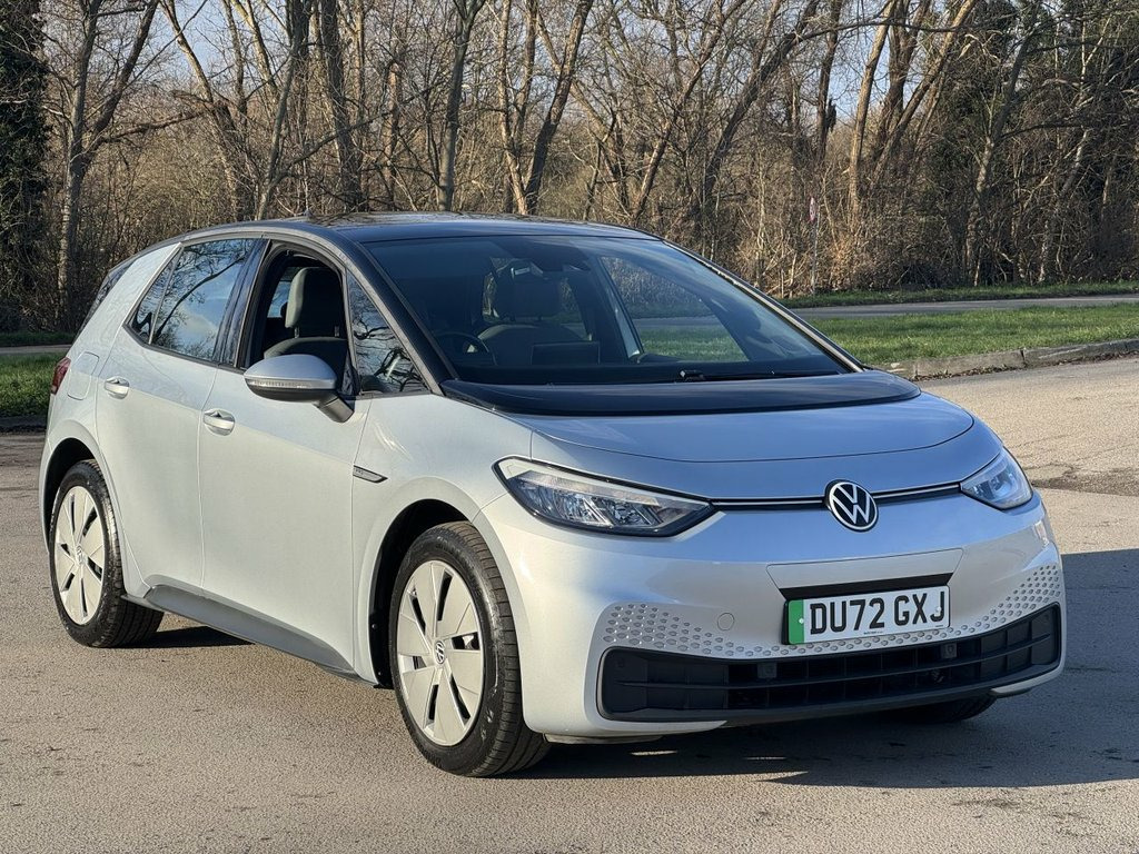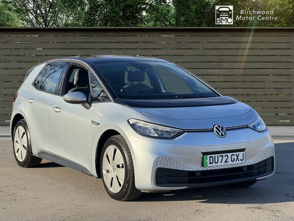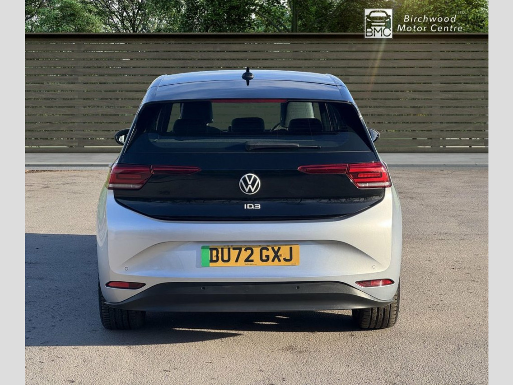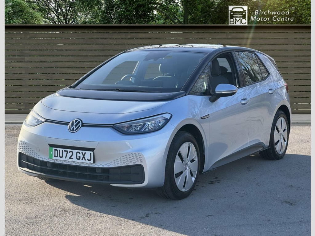 With only one owner and a clear vehicle history, this 2022 Volkswagen ID.3 Pro Performance Life presents a compelling choice for electric motoring. This well maintained example has covered a low mileage of just 17,500 miles, ensuring its MOT remains valid until August 2026. As an electric vehicle, it boasts a 62 kWh battery offering a maximum range of 265 miles when new, and can be fully charged at home using a 7kW charger in approximately 9 hours and 30 minutes. For quicker top ups, public charging can take it from empty to 80% in as little as 37 minutes. This ID.3 Life trim comes equipped with a range of desirable features designed for comfort and convenience. These include 1 Zone Climatronic with climate control, a Comfort Package featuring heated seats and a heated steering wheel, and All LED Headlights for excellent visibility. Parking is made easier with front and rear parking sensors, while the Adaptive Cruise Control with Front Assist provides a more relaxed driving experience. The electric powertrain delivers brisk performance, achieving 0-60mph in 7.3 seconds, demonstrating its capability compared to other vehicles in its class. 1-Zone Climatronic, 10in Infotainment System, 18in Steel Wheels - Aero, ABS - Anti-Lock Braking System, Adaptive Cruise Control ACC including Fr, Airbag - Front Centre, Airbags - Curtain Front, Airbags - Driver, Airbags - Front Side, Airbags - Passenger, All-LED Headlights with Reflector Techno, Armrest Integrated into Front Seats, Assistance Pack, Black Roof, Body Coloured Bumpers - Door Handles and, Car2X Technology, Comfort Package, DAB Digital Radio, Digital Dashboard, Driver Alert System, Electric Windows - Front and Rear, Electronic Parking Brake with Auto Hold , Exterior E-Sound, Free WeConnect Start for First 3 Years, Heated Rear Window, ID Light, Infotainment Package, Interior Alarm