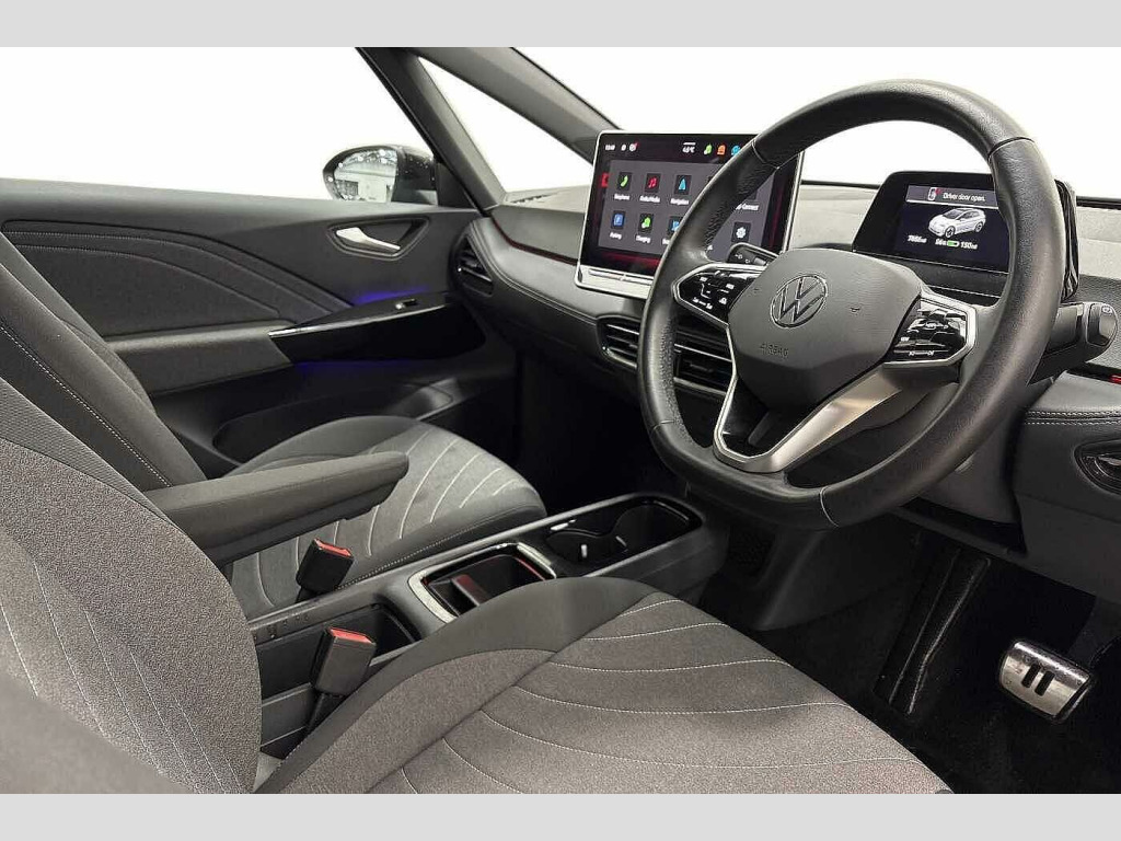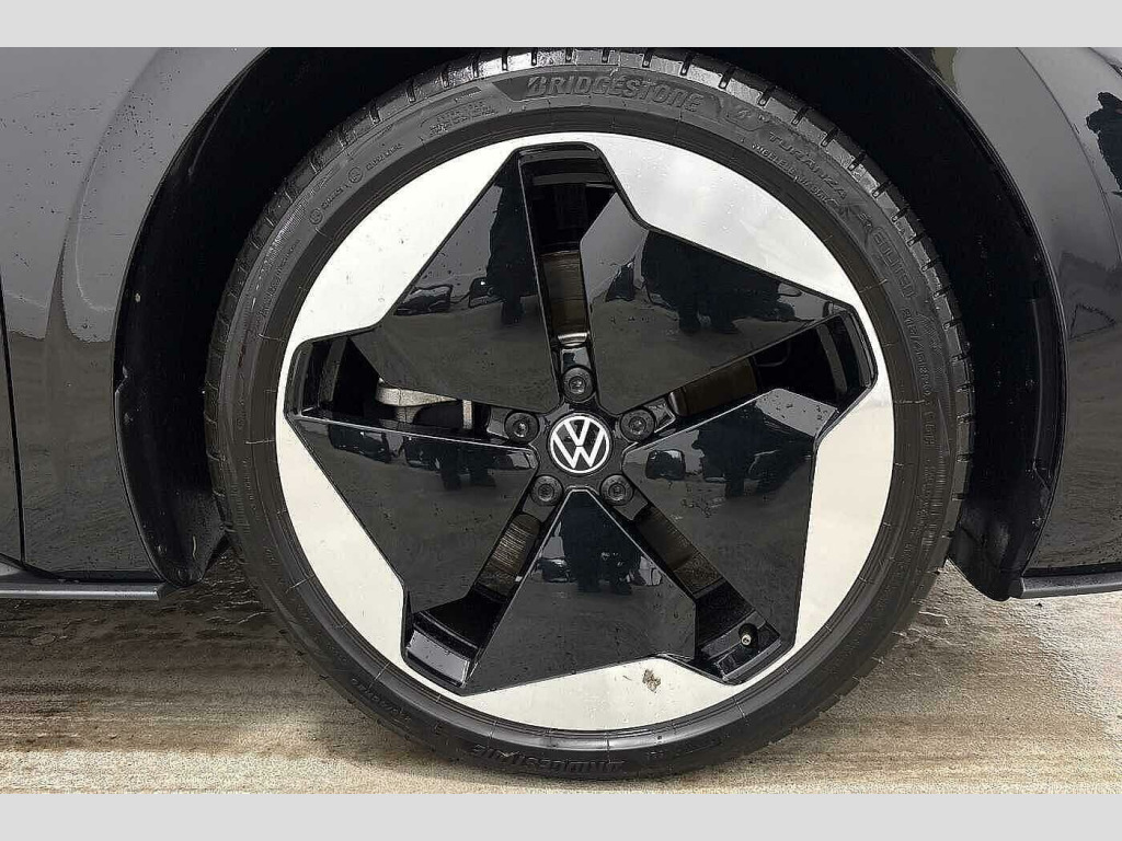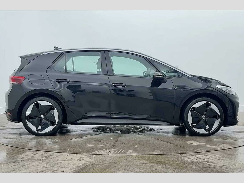 The exterior is finished in the 'Grenadilla Black' paintwork, which is complimented by the 20in Sanya alloy wheels to the side. This ID.3 comes with a range of features on offer such as the LED headlights that provide exceptional visibility, front and rear parking sensors that assist with maneuvering, and driver assistance systems such as adaptive cruise control and lane assist.