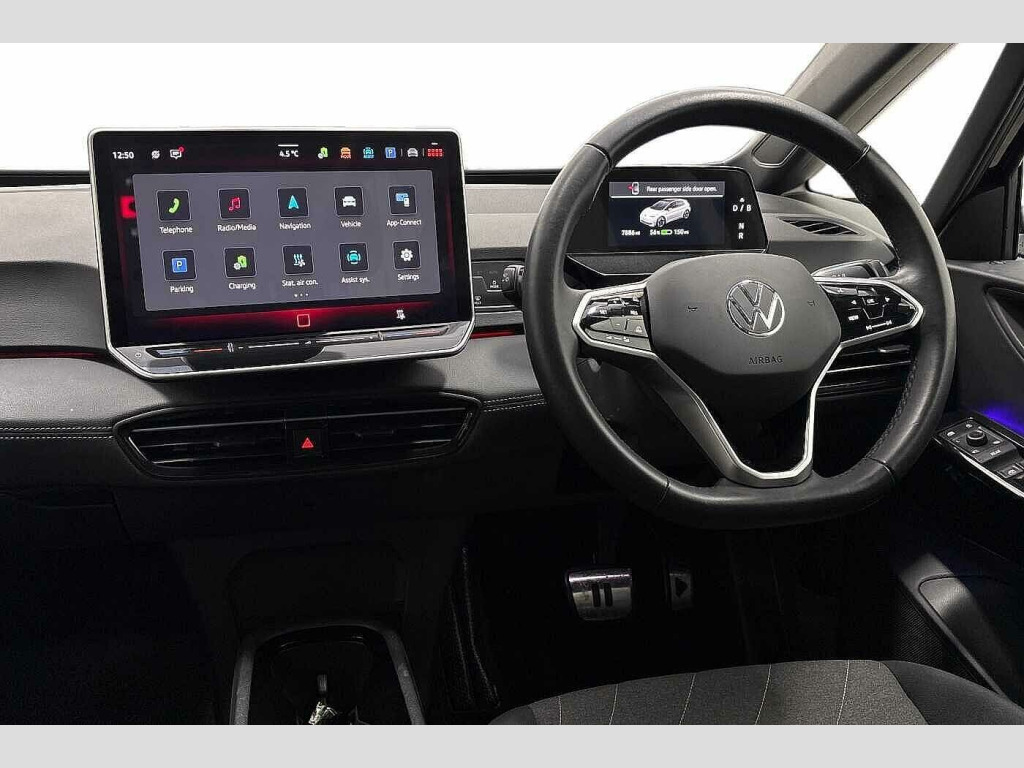 *Range depicts brand new model. Current maximum range may differ in line with battery depreciation. Metallic - Grenadilla black, Artvelour eco - Dusty grey dark, Automatically front heated washer nozzles, Front and rear electric windows, Heat insulating windscreen, Heated windscreen washer jets, Rain sensor, Rear wiper, Variable front intermittent wipers, Body colour door handles, Body coloured bumpers, Rear side wing doors, Automatic headlights, LED 3rd brake lamp, Separate LED daytime running lights which also perform the indicator function, Welcome light, Anti-lock braking system (ABS), Autonomous emergency braking front assist with pedestrian and cyclist monitoring, Disc brakes in front, Electronic parking brake with auto hold, Electronic Stability Programme (ESP), Traction control with on/off button, Adaptive cruise control, Driver alert system with fatigue detection, Driving profile selection, Dynamic road sign display, Oncoming vehicle braking when turning including swerve support, Power assisted speed sensitive steering, Auto dimming rear view mirror, Body coloured door mirrors with intergrated indicators, Remote electrically foldable door mirrors, puddle lights and reverse activated passenger's door mirror, 2 rear 3 point safety belts, Centre airbag, Child locks on rear doors, Driver and front passenger airbags, First aid kit with warning triangle, safety vest + 2 face masks, Front and rear curtain airbags, Front passenger airbag deactivation, Front side airbags, Single tone horn, Tyre pressure loss indicator, Bluetooth connectivity, Car2X intelligent vehicle networking, E-call, E-Sim card for online connectivity, Natural voice control, Security and service (SOS buttons), Wireless app connect, Wireless Smartphone charger, 2 USB C ports in front, 2 USB charging sockets on the centre console in the rear charging capacity upto 45W, DAB Digital radio, Front speakers, Remote tailgate unlocking, Discover pro navigation with 10" screen, Preparation for navigation system with media and internet package, Trip computer, Warning signal and warning light for front and rear seatbelts not fastened, Standard electronic engine sound actuator, Air care climatronic air conditioning system, Electric auxiliary air heater, Artvelour eco upholstery, ArtVelours door and side trim panel, Centre console with illuminated storage compartment with sliding cover and two drinks holders, Front armrests, Leatherette-wrapped multifunction steering wheel, Play and Pause brake and accelerator pedals, Reach + rake adjustable steering column, Rear wheel drive, Sunvisors with illuminated vanity mirrors, Styling pack - ID.3, 2 seat bench in 2nd row, Asymmetric split folding rear seat backrest with center armrest, Comfort seats, Ergoactive seats in front with power adjustment, memory feature and adjustable thigh support, Folding rear seats, Front headrests, Heated front seats, Isofix child seat preparation easy-fit (for two outer rear seats, and front passenger seat) compatible with I-size, Pneumatically adjustable lumbar support on both sides, Rear headrests, Single front passenger seat, Anti theft wheel bolts, Anti-theft alarm system with interior monitoring, backup horn, and towing protection, Immobiliser, Remote central locking, 170kW DC battery charging, Charging cable mode 3, Type 2: 7.2kW 1-Phase/11kW 3-Phase (32A), Tool kit, Tyre repair kit