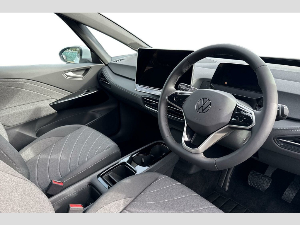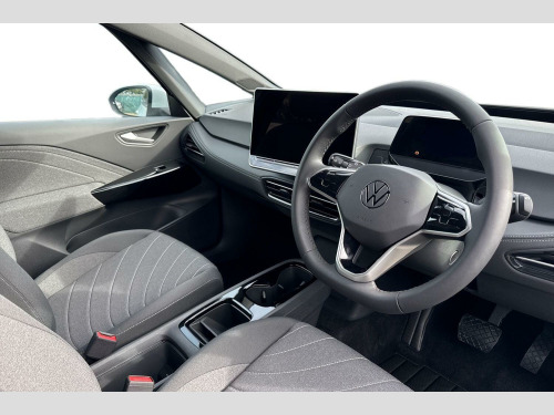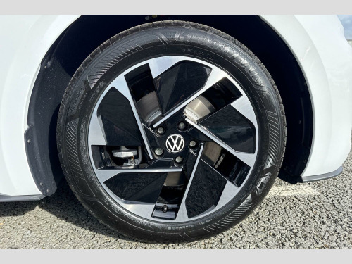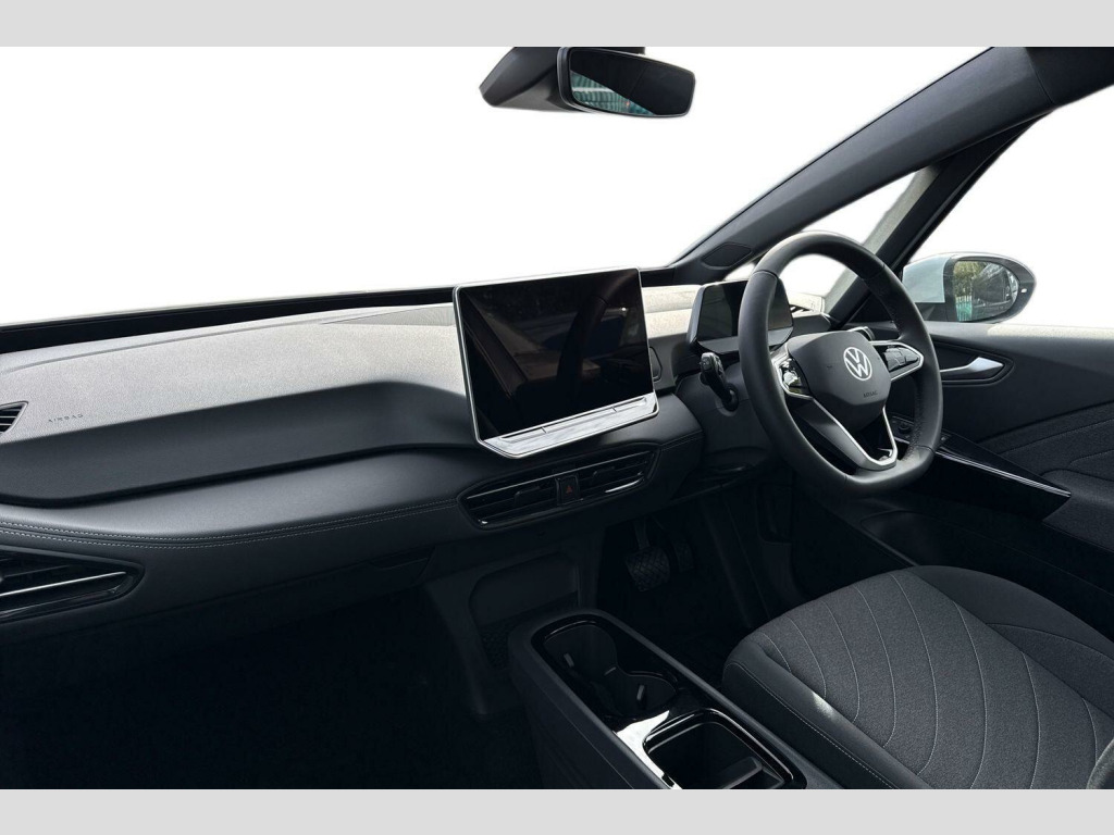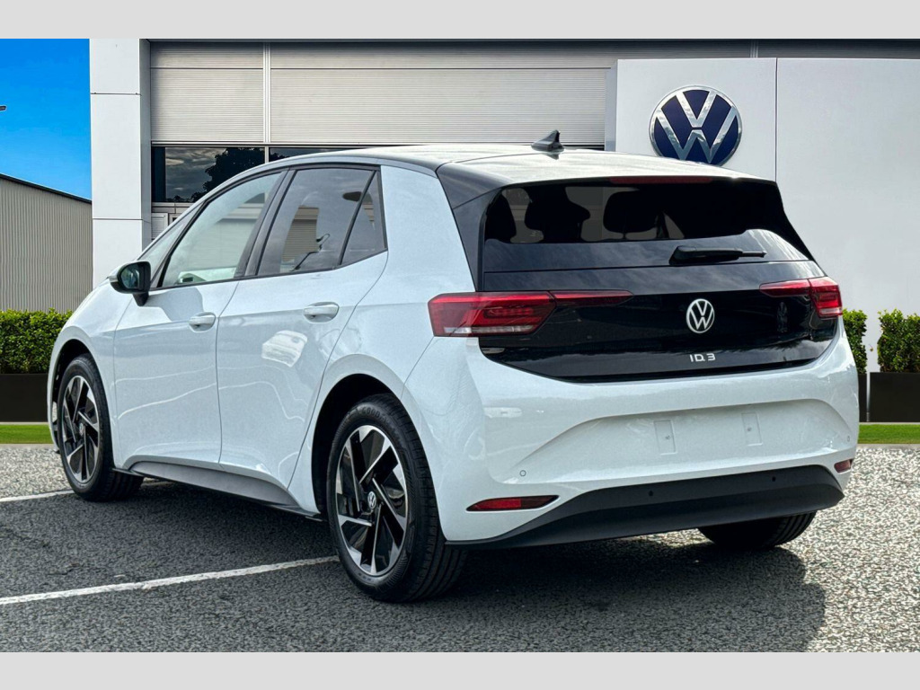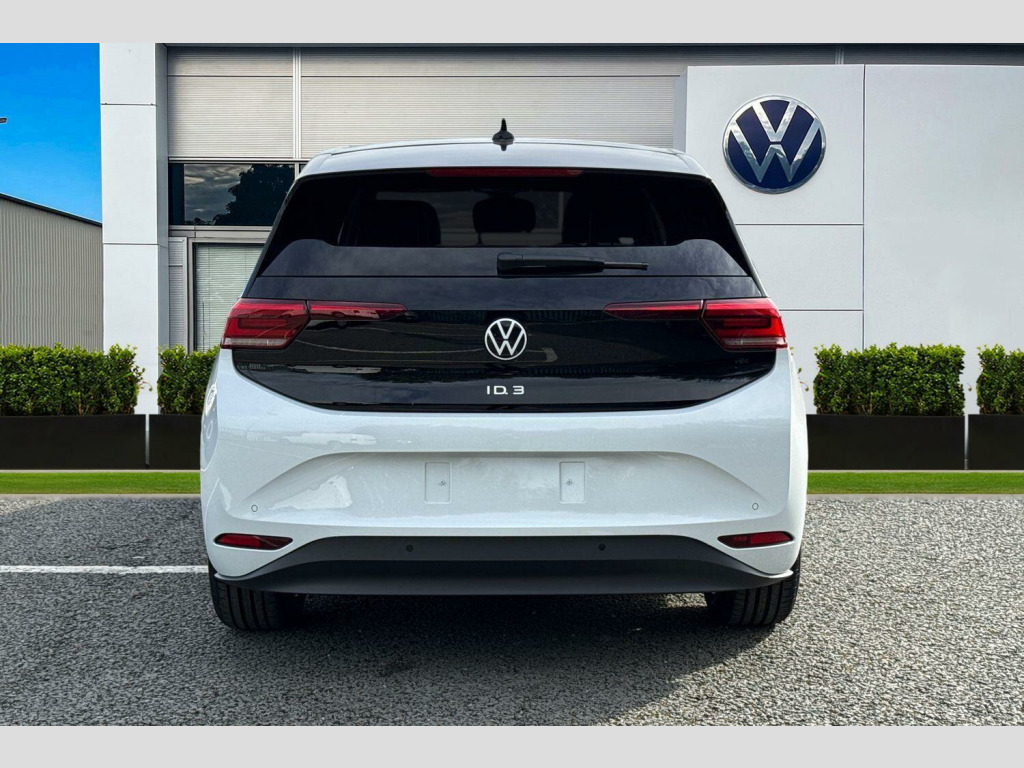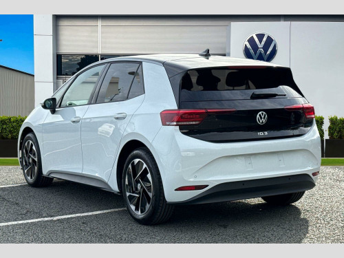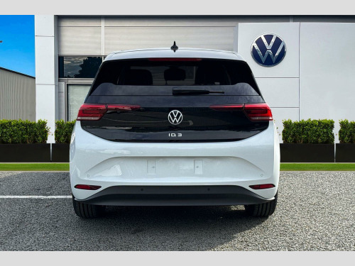 The exterior is finished in a Glacier White paintwork which is complimented by the 18in East Derry alloy wheels to the side. This ID.3 has a range of features on offer such as the LED headlights that keep roads well lit, rear tinted windows for passenger privacy, parking sensors that assist with maneuvering alongside the rear view camera, and various driver assistance systems.