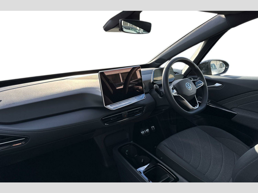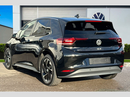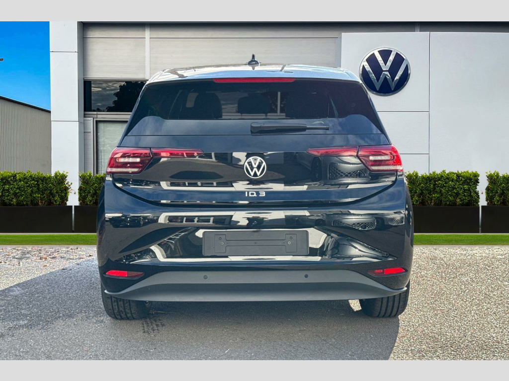 The exterior, which is finished in a Grenadilla Black paintwork, comes with a range of features on offer. To the front of the vehicle you'll find the Matrix LED headlights that provide outstanding visibility, and to the side the rear tinted windows for passenger privacy and the 18in East Derry alloy wheels. For added convenience this ID.3 also features keyless access and starting, and parking sensors that assist with maneuvering alongside the rear view camera.