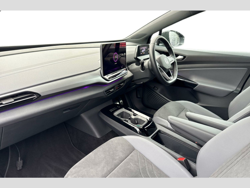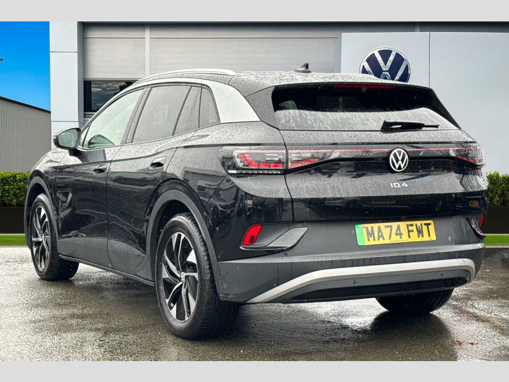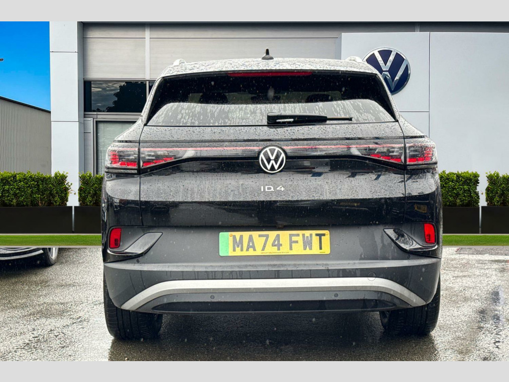The ID.4 Pro Match is designed to impress, with a maximum range of 349 miles when new, indicating its capability for longer journeys. Its acceleration is a standout, achieving 0-62mph in a swift 6.7 seconds, which is faster than many similar vehicles. Furthermore, the generous boot space offers practicality for all your needs, making it a versatile choice. The rapid charging capability is another key advantage, with the ability to charge from empty to 80% in just 32 minutes at a public charging station, setting it apart from other electric cars. Climate windscreen, Front and rear electric windows, Heat insulating darkened glass in side and rear windows, Heated windscreen washer jets, Rain sensor, Rear tinted glass from B-pillar backwards approx 65% tinted, Rear windscreen washer and wiper with interval delay, Variable front intermittent wipers, Body colour door handles, Body coloured bumpers, Front underbody guard, Rear side wing doors, Roof trim strip in matte black, Silver roof rails, Advanced dynamic light assist for LED matrix headlights, Ambient lighting, exterior illuminated styling elements in door handle recesses, Ambient lighting, exterior illuminated styling elements in the front grille, Daytime running lights, LED rear tail lights with dynamic turn signal, Matrix LED headlights with automatic headlight control, Poor weather light and entry lighting, Third brake light, Welcome light, Anti-lock braking system (ABS), Autonomous emergency braking front assist with pedestrian and cyclist monitoring, Drum brakes in rear, Electronic parking brake with auto hold, Electronic Stability Programme (ESP), Front disc brakes, Traction control, Adaptive cruise control, Advanced driver attention and drowsiness monitor, Driving profile selection, Dynamic road sign display, Lane assist, Oncoming vehicle braking when turning including swerve support, Park assistance plus with front and rear parking sensors, Power assisted speed sensitive steering, Automatic dimming interior rear view mirror, Exterior mirrors convex on the left and aspherical on the right, Gloss black door mirrors with integrated indicators, Power adjustable, heated exterior mirrors, 3 Point seat belts in front with pretensioners, 3x3 point rear seat belts, Child safety lock, Driver and front passenger airbag with front passenger airbag deactivation, First aid kit with warning triangle and safety vest, Front curtain and side airbags with center airbag, Proactive passenger protection system in combination with front assist, Seat belt reminder (Japan design), Single tone horn, Tyre pressure loss indicator, Front + rear carpet mats, Air care climatronic 2 zone air conditioning system, Electric auxiliary air heater, 2 USB-C ports in the front, 2 USB-C charging sockets on the centre console in rear, charging capacity up to 45 W, Armrests for both front seats, Art Velours microfleece cloth upholstery, Backrest with ID perforation, Central control unit in black, Centre console with illuminated storage compartment with sliding cover and two drinks holders, Door and side trim panel with leatherette insert, Headliner in recycled material, Illuminated smartphone storage compartment, Leatherette-wrapped multifunction heated steering wheel with touch control, Operating voltage 12V, Play and Pause brake and accelerator pedals, Pockets and smartphone pockets in seats, Reach + rake adjustable steering column, Sides, rear and armrest in leatherette, Storage compartments in driver and front passenger, 30 colour ambient lighting, Rear wheel drive, Sun visors with illuminated vanity mirrors, Car2X intelligent vehicle networking, Natural voice control, Online service, with OCU, with head unit coding, without engine immobilizer interconnection, Preparation for We connect and We connect plus, Telephone interface comfort with inductive charging function, We Charge Go access, We Connect Plus integrated data volume, Wireless app connect, Wireless Smartphone charger, DAB Digital radio, Diversity antenna for FM reception, Radio - Ready 2 discover, Electrically-operated tailgate opening and closing function (Easy open), operated via foot movement under rear tailgate, Tailgate/trunk lid release from outside, 12.9" infotainment screen, Discover pro navigation, Drivers assistance, Emergency call service, Hand brake/low brake fluid level warning light and inscription, ID. Light, Speedo and rev counter, electronic odometer, trip, service interval display and exterior temperature gauge, Warning signal and warning light for front and rear seatbelt
