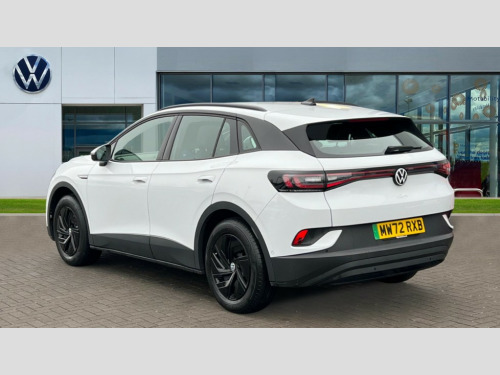 Volkswagen Id.4 109kW Life Pure 52kWh 5dr Auto [110kW Ch] 5.3" Digital dashboard display, Adaptive cruise control ACC stop and go including speed limiter, BLIS (Blind spot information system), Car2X high variant, Comfort telephony with LTE and wireless charging, Discover Navigation Pro capacitive touch-screen navigation infotainment system with 10 inch display, Driver alert system, Driver profile selection, Dynamic road sign display, Emergency call control unit with eCall, Emergency call service, Hand brake/low brake fluid level warning light and inscription, ID. Light, Multifunction camera, Natural voice control, Online service, with OCU, with head unit coding, without engine immobilizer interconnection, Remote tailgate unlocking, Telephone interface comfort with inductive charging function, Trip computer, USB-C ports in the front and rear centre console with increased charging performance, Warning buzzer and light for front seatbelts unfastened, We Charge Go access, We Connect Plus integrated data volume, Winter driving mode with ASR deactivation button, Wireless app connect, Exterior e-sound, Mode 3 32-amp / 7.2kW charging cable for charging at public charge points, Standard electronic engine sound actuator, Bluetooth connectivity including audio streaming, DAB Digital radio, Radio, Soundsystem of six loudspeakers with 140 watt output with two full range speakers in the rear doors and 2 way speaker system installed in front area, Touch control, Acoustic glazing rear window and side windows darkened at the rear, Automatic dimming interior rear view mirror, Body colour door handles, Body coloured bumpers, Body coloured door mirrors with intergrated indicators, Daytime running lights, Front and rear electric windows, Heated clear glass windshield, Heated rear window, LED headlights with automatic driving light switching, LED rear combination lamp, Power adjustable, heated and folding wing mirrors, Rear side wing doors, Rear wiper, Third brake light, 3 seat bench in 2nd row, 30 colour ambient lighting, Art Velours microfleece cloth upholstery, Asymmetric split folding rear seat backrest with load through hatch and center armrest, 2 beverage holders, Center console and armrests in the front seats, Child seat anchor for child seat system i-Size, 2x top tether and child seat anchor in front on front passenger side, Electric auxiliary air heater, Front + rear carpet mats, Front headrests, Heated front seats, Illuminated smartphone storage compartment, Play and Pause brake and accelerator pedals, Pockets and smartphone pockets in seats, Reach + rake adjustable steering column, Sides,rear and armrest in leatherette, Storage compartments in driver and front passenger, Sun visors with illuminated vanity mirrors, Three rear head restraints, Assistance pack - ID.4, Comfort pack - ID.4 Life, Driving assistance pack - ID.4, 3x3 point rear seat belts, Anti-lock braking system (ABS), Child safety lock, Curtain airbag system for front and rear passengers, Driver and front passenger airbag with front passenger airbag deactivation, Electronic parking brake with auto hold, Electronic Stability Programme (ESP), First aid kit with warning triangle and safety vest, Front disc brakes, Proactive passenger protection system in combination with front assist, Seat belt reminder (Japan design), Seatbelt tensioners in front and rear outside, pyrotechnic belt end fitting tensioners at the front, Side airbag in front with curtain airbag and interaction airbag in front, Single torn horn, Traction control, Tyre pressure monitor, Anti-theft alarm system with interior monitoring, backup horn, and towing protection, Immobiliser, Remote central locking with 2 remote keys, Comfort dashboard, Tool kit, Tyre mobility kit