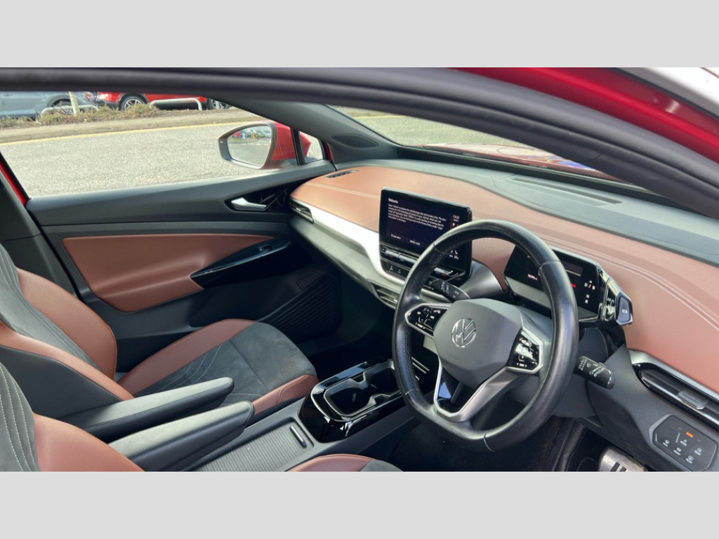 Volkswagen Id.4 109kW Life Pure 52kWh 5dr Auto 5.3" Digital dashboard display, Adaptive cruise control ACC stop and go including speed limiter, BLIS (Blind spot information system), Car2X high variant, Comfort telephony with LTE and wireless charging, Driver alert system, Driver profile selection, Dynamic road sign display, Emergency call control unit with eCall, Emergency call service, Hand brake/low brake fluid level warning light and inscription, ID. Light, Multifunction camera, Natural voice control, Online service, with OCU, with head unit coding, without engine immobilizer interconnection, Remote tailgate unlocking, Telephone interface comfort with inductive charging function, Trip computer, Warning buzzer and light for front seatbelts unfastened, We Charge Go access, We Connect ID app, Wireless app connect, Exterior e-sound, Mode 3 32-amp / 7.2kW charging cable for charging at public charge points, Standard electronic engine sound actuator, Bluetooth connectivity including audio streaming, DAB Digital radio, Radio, Soundsystem of six loudspeakers with 140 watt output with two full range speakers in the rear doors and 2 way speaker system installed in front area, Touch control, Acoustic glazing rear window and side windows darkened at the rear, Automatic dimming interior rear view mirror, Body colour door handles, Body coloured bumpers, Body coloured door mirrors with intergrated indicators, Daytime running lights, Front and rear electric windows, Heated clear glass windshield, Heated rear window, Power adjustable, heated and folding wing mirrors, Rear side wing doors, Rear wiper, Third brake light, 3 seat bench in 2nd row, 30 colour ambient lighting, Art Velours microfleece cloth upholstery, Asymmetric split folding rear seat backrest with load through hatch and center armrest, 2 beverage holders, Center console and armrests in the front seats, Child seat anchor for child seat system i-Size, 2x top tether and child seat anchor in front on front passenger side, Electric auxiliary air heater, Front + rear carpet mats, Front headrests, Heated front seats, Illuminated smartphone storage compartment, Play and Pause brake and accelerator pedals, Pockets and smartphone pockets in seats, Reach + rake adjustable steering column, Sides,rear and armrest in leatherette, Storage compartments in driver and front passenger, Sun visors with illuminated vanity mirrors, Three rear head restraints, Comfort pack - ID.4 Life, Driving assistance pack - ID.4, 3x3 point rear seat belts, Anti-lock braking system (ABS), Child safety lock, Curtain airbag system for front and rear passengers, Driver and front passenger airbag with front passenger airbag deactivation, Electronic parking brake with auto hold, Electronic Stability Programme (ESP), First aid kit with warning triangle and safety vest, Front disc brakes, Proactive passenger protection system in combination with front assist, Seat belt reminder (Japan design), Seatbelt tensioners in front and rear outside, pyrotechnic belt end fitting tensioners at the front, Side airbag in front with curtain airbag and interaction airbag in front, Single torn horn, Traction control, Tyre pressure monitor, Anti-theft alarm system with interior monitoring, backup horn, and towing protection, Immobiliser, Remote central locking with 2 remote keys, Comfort dashboard, Tool kit, Tyre mobility kit