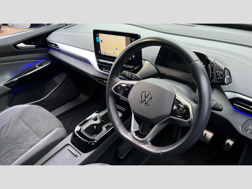 Volkswagen Id.4 109kW Style Pure 52kWh 5dr Auto [110kW Ch] 5.3" Digital dashboard display, Adaptive cruise control ACC stop and go including speed limiter, BLIS (Blind spot information system), Car2X high variant, Comfort telephony with LTE and wireless charging, Discover Navigation Pro capacitive touch-screen navigation infotainment system with 10 inch display, Driver alert system, Driver profile selection, Dynamic road sign display, Emergency call control unit with eCall, Emergency call service, Hand brake/low brake fluid level warning light and inscription, ID. Light, Multifunction camera, Natural voice control, Online service, with OCU, with head unit coding, without engine immobilizer interconnection, Remote tailgate unlocking, Telephone interface comfort with inductive charging function, Trip computer, USB-C ports in the front and rear centre console with increased charging performance, Warning buzzer and light for front seatbelts unfastened, We Charge Go access, We Connect Plus integrated data volume, Winter driving mode with ASR deactivation button, Wireless app connect, Exterior e-sound, Mode 3 32-amp / 7.2kW charging cable for charging at public charge points, Standard electronic engine sound actuator, Bluetooth connectivity including audio streaming, DAB Digital radio, Radio, Soundsystem of six loudspeakers with 140 watt output with two full range speakers in the rear doors and 2 way speaker system installed in front area, Touch control, Acoustic glazing rear window and side windows darkened at the rear, Automatic dimming interior rear view mirror, Automatic headlights, Body colour door handles, Body coloured bumpers, Body coloured door mirrors with intergrated indicators, Front and rear electric windows, Heated clear glass windshield, Heated rear window, Heated washer nozzles in front, Laminated safety glass windshield, heated (w/o wires), infrared-reflecting windshield, sound-insulating, Power adjustable, heated and folding wing mirrors, Rain sensor, Rear side wing doors, Rear wiper, Third brake light, 2 USB-C ports in the front, 2 USB-C charging sockets on the center console in the rear, 3 seat bench in 2nd row, 30 colour ambient lighting, 6 way manual drivers and 4 way front passenger seats, Art Velours microfleece cloth upholstery, Asymmetric split folding rear seat backrest with load through hatch and center armrest, 2 beverage holders, Backrest with ID perforation, Center console and armrests in the front seats, Child seat anchor for child seat system i-Size, 2x top tether and child seat anchor in front on front passenger side, Electric auxiliary air heater, Front + rear carpet mats, Front headrests, Heated front seats, Heated steering wheel, Illuminated smartphone storage compartment, Leather wrapped multifunction steering wheel with decorative aluminum inserts, Play and Pause brake and accelerator pedals, Pockets and smartphone pockets in seats, Reach + rake adjustable steering column, Sides,rear and armrest in leatherette, Storage compartments in driver and front passenger, Sun visors with illuminated vanity mirrors, Three rear head restraints, Variable center console with changeable inserts for cup holders and storage compartments, Assistance pack - ID.4, Comfort plus pack - ID.4, Design pack - ID.4, Driving assistance pack - ID.4, 3x3 point rear seat belts, Anti-lock braking system (ABS), Child safety lock, Curtain airbag system for front and rear passengers, Driver and front passenger airbag with front passenger airbag deactivation, Electronic parking brake with auto hold, Electronic Stability Programme (ESP), First aid kit with warning triangle and safety vest, Front disc brakes, Proactive passenger protection system in combination with front assist, Seat belt reminder (Japan design), Seatbelt tensioners in front and rear outside, pyrotechnic belt end fitting tensioners at the front, Side airbag in front with curtain airbag and interaction airbag in front, Single torn horn, Traction control, Tyre pressure monitor, Anti-theft alarm system with interior monitoring, backup horn, and towing protection, Immobiliser, Remote central locking with 2 remote keys, Comfort dashboard, 18" Falun alloy wheels, Tool kit, Tyre mobility kit