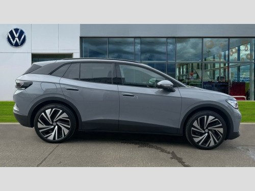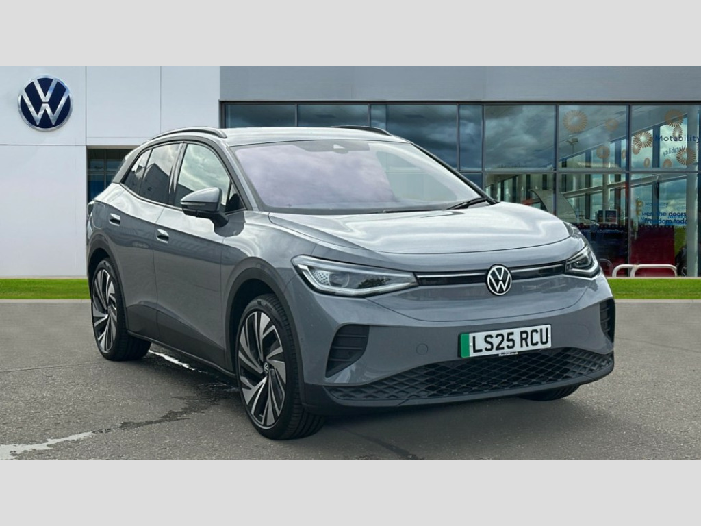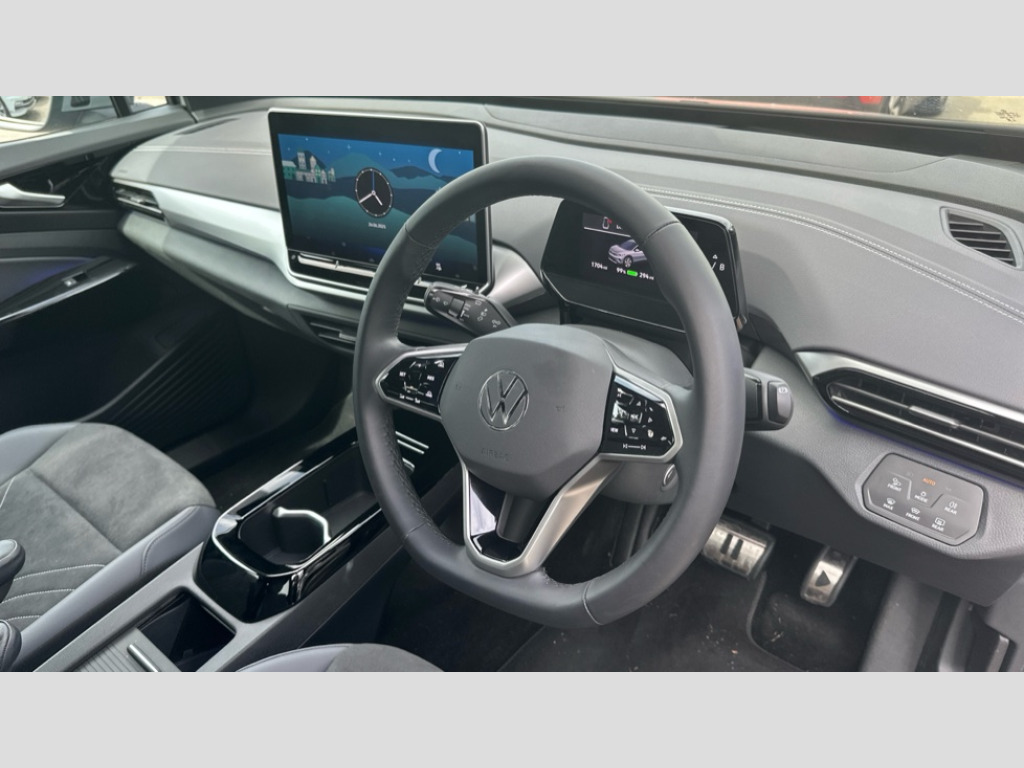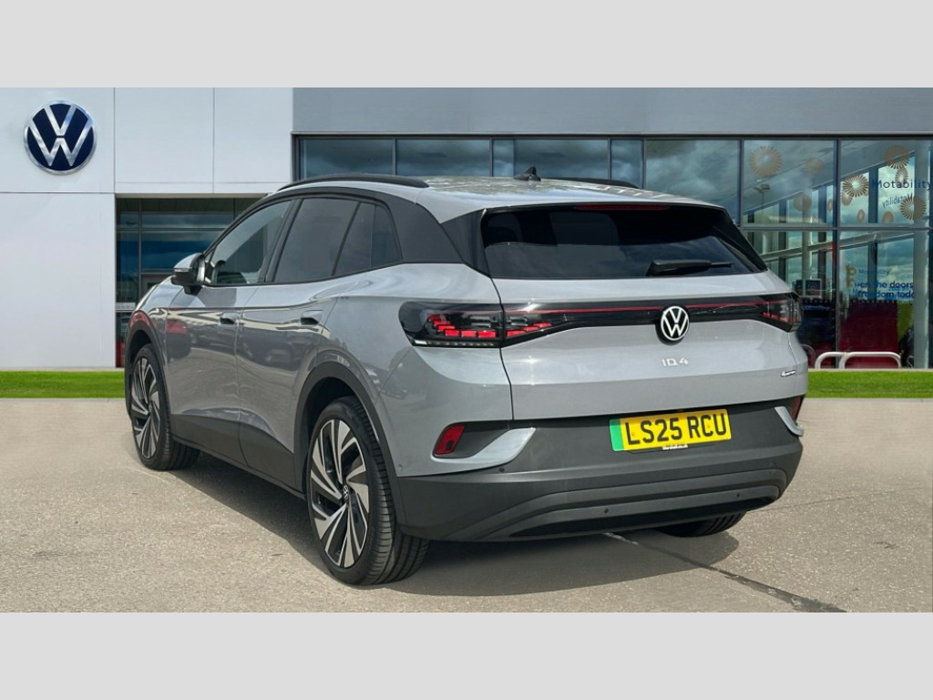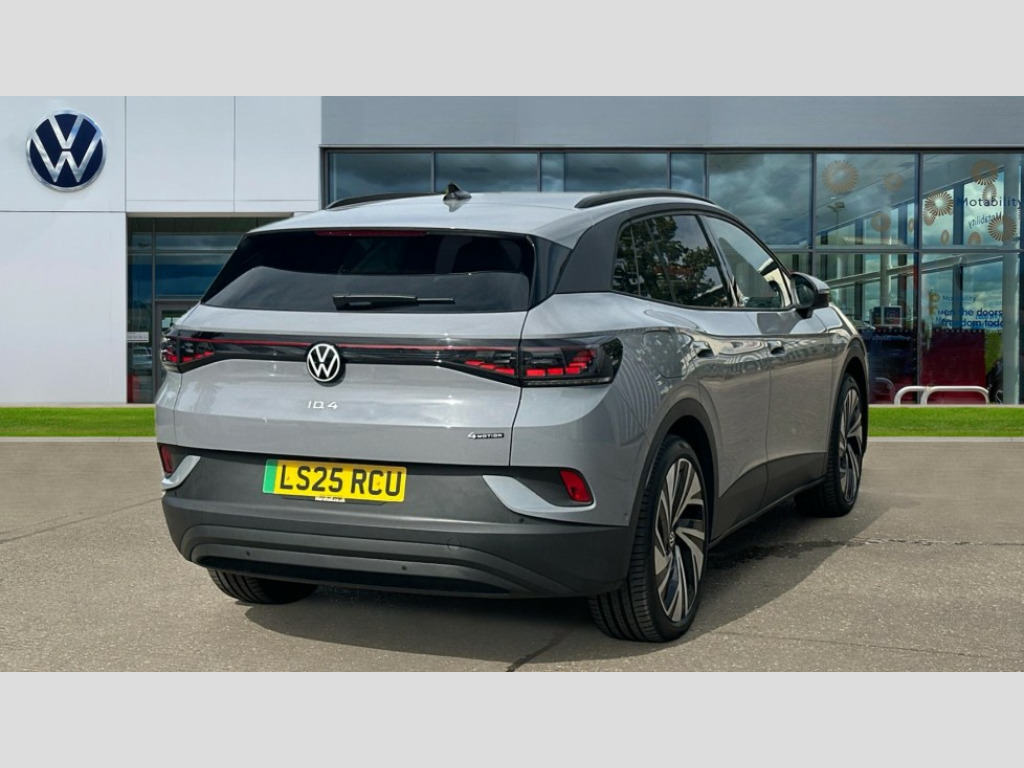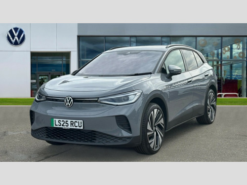 Volkswagen Id.4 210kW 4MOTION Match Pro 77kWh 5dr Auto his 2025 Volkswagen ID.4 comes manufacturer-approved, offering you extra peace of mind. As a Pure Style Edition, this electric vehicle combines practicality with modern technology. The Style Edition trim adds a touch of sophistication to this five-door hatchback. Stay connected on the move with App Connect, featuring wireless Apple CarPlay and Android Auto. Enjoy the convenience of keyless entry and start, along with a rear-view camera to make parking a breeze. The leather-wrapped, multi-function steering wheel is heated for those chilly mornings, and includes touch controls for easy access to your favourite features. 12.9" infotainment screen, Adaptive cruise control, Advanced driver attention and drowsiness monitor, Car2X intelligent vehicle networking, Discover pro navigation, Drivers assistance, Driving profile selection, Dynamic road sign display, Electrically-operated tailgate opening and closing function (Easy open), operated via foot movement under rear tailgate, Emergency call service, Exit warning system, Hand brake/low brake fluid level warning light and inscription, ID. Light, Lane change system side assist and rear traffic alert, Natural voice control, Oncoming vehicle braking when turning including swerve support, Online service, with OCU, with head unit coding, without engine immobilizer interconnection, Park assistance plus with front and rear parking sensors, Power assisted speed sensitive steering, Preparation for We connect and We connect plus, Speedo and rev counter, electronic odometer, trip, service interval display and exterior temperature gauge, Tailgate/trunk lid release from outside, Telephone interface comfort with inductive charging function, Warning signal and warning light for front and rear seatbelts not fastened, We Charge Go access, We Connect Plus integrated data volume, Wireless app connect, Wireless Smartphone charger, 11 kW AC charging power, 82 kWh High voltage battery, AC charging socket (Type 2), All Wheel Drive (AWD), Battery 320 A (49 Ah), Charging cable mode 3, Type 2: 7.2kW 1-Phase/11kW 3-Phase (32A), DC battery charging capablity (Type 2:CCS), DC-DC converter 2.4 kW, Standard electronic engine sound actuator, DAB Digital radio, Diversity antenna for FM reception, Gaming platform via car app, Radio - Ready 2 discover, Advanced dynamic light assist for LED matrix headlights, Ambient lighting, exterior illuminated styling elements in door handle recesses, Automatic dimming interior rear view mirror, Body colour door handles, Body coloured bumpers, Climate windscreen assists defrosting and prevents fogging, Daytime running lights, Exterior mirrors convex on the left and aspherical on the right, Front and rear electric windows, Front underbody guard, Gloss black door mirrors with integrated indicators, Heat insulating darkened glass in side and rear windows, Illuminated molding between headlamps, Laminated safety glass from B-pillar backwards 90% tinted, LED rear tail lights with dynamic turn signal, Matrix LED headlights with automatic headlight control, Poor weather light and entry lighting, Power adjustable, heated and folding mirrors with front passenger lowering function, Rain sensor, Rear side wing doors, Rear tinted glass from B-pillar backwards approx 65% tinted, Rear windscreen washer and wiper with interval delay, Roof trim strip in matte black, Silver roof rails, Third brake light, Variable front intermittent wipers, Welcome light, Windscreen washer jets, 2 USB-C ports in the front, 2 USB-C charging sockets on the centre console in rear, charging capacity up to 45 W, 3 seat bench in 2nd row, 30 colour ambient lighting, Air care climatronic 2 zone air conditioning system, Armrests for both front seats, Art Velours microfleece cloth upholstery, Backrest with ID perforation, Black steering wheel, Central control unit in black, Centre console with illuminated storage compartment with sliding cover and two drinks holders, Door and side trim panel with leatherette insert, Electric auxiliary air heater, Front + rear carpet mats, Headliner in recycled material, Heated front seats, Illuminated smartphone storage compartment, Interior style comfort seats, Isofix child seat preparation easy-fit (for two outer rear seats, and front passenger seat) compatible with I-size, Leatherette-wrapped multifunction heated steering wheel with touch control, Operating voltage 12V, Play and Pause brake and accelerator pedals, Pockets and smartphone pockets in seats, Reach + rake adjustable steering column, Rear seat bench unsplit, backrest split folding with center armrest, Safety optimised front head restraints, Sides,rear and armrest in leatherette, Storage compartments in driver and front passenger, Sun visors with illuminated vanity mirrors, Three rear head restraints, Bi-colour styling pack - ID.4, 3 Point seat belts in front with pretensioners, 3x3 point rear seat belts, Anti-lock braking system (ABS), Autonomous emergency braking front assist with pedestrian and cyclist monitoring, Child safety lock, Driver and front passenger airbag with front passenger airbag deactivation, Drum brakes in rear, Electronic parking brake with auto hold, Electronic Stability Programme (ESP), First aid kit with warning triangle and safety vest, Front curtain and side airbags with center airbag, Front disc brakes, Proactive passenger protection system in combination with front assist, Seat belt reminder (Japan design), Single tone horn, Traction control, Tyre pressure loss indicator, Alarm with interior protection, Anti theft wheel bolts, Immobiliser, Keyless entry and start, Remote central locking with 2 remote keys, Soul black dash trim, Tool kit + Tyre mobility set (including 12-volt compressor + tyre sealant), Trims for alloy wheels