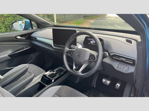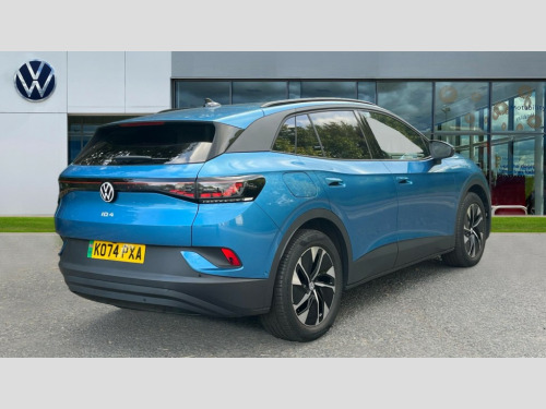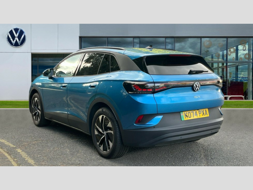 Volkswagen Id.4 210kW Match Pro 77kWh 5dr Auto 12.9" infotainment screen, Adaptive cruise control, Advanced driver attention and drowsiness monitor, Car2X intelligent vehicle networking, Discover pro navigation, Drivers assistance, Driving profile selection, Dynamic road sign display, Electrically-operated tailgate opening and closing function (Easy open), operated via foot movement under rear tailgate, Emergency call service, Exit warning system, Hand brake/low brake fluid level warning light and inscription, ID. Light, Lane change system side assist and rear traffic alert, Natural voice control, Oncoming vehicle braking when turning including swerve support, Online service, with OCU, with head unit coding, without engine immobilizer interconnection, Park assistance plus with front and rear parking sensors, Power assisted speed sensitive steering, Preparation for We connect and We connect plus, Speedo and rev counter, electronic odometer, trip, service interval display and exterior temperature gauge, Tailgate/trunk lid release from outside, Telephone interface comfort with inductive charging function, Warning signal and warning light for front and rear seatbelts not fastened, We Charge Go access, We Connect Plus integrated data volume, Wireless app connect, Wireless Smartphone charger, 11 kW AC charging power, 82 kWh High voltage battery, AC charging socket (Type 2), Battery 320 A (49 Ah), Charging cable mode 3, Type 2: 7.2kW 1-Phase/11kW 3-Phase (32A), DC battery charging capablity (Type 2:CCS), DC-DC converter 2.4 kW, Rear wheel drive, Standard electronic engine sound actuator, DAB Digital radio, Diversity antenna for FM reception, Gaming platform via car app, Radio - Ready 2 discover, Advanced dynamic light assist for LED matrix headlights, Ambient lighting, exterior illuminated styling elements in door handle recesses, Automatic dimming interior rear view mirror, Body colour door handles, Body coloured bumpers, Climate windscreen assists defrosting and prevents fogging, Daytime running lights, Exterior mirrors convex on the left and aspherical on the right, Front and rear electric windows, Front underbody guard, Gloss black door mirrors with integrated indicators, Heat insulating darkened glass in side and rear windows, Illuminated molding between headlamps, Laminated safety glass from B-pillar backwards 90% tinted, LED rear tail lights with dynamic turn signal, Matrix LED headlights with automatic headlight control, Poor weather light and entry lighting, Power adjustable, heated and folding mirrors with front passenger lowering function, Rain sensor, Rear side wing doors, Rear tinted glass from B-pillar backwards approx 65% tinted, Rear windscreen washer and wiper with interval delay, Roof trim strip in matte black, Silver roof rails, Third brake light, Variable front intermittent wipers, Welcome light, Windscreen washer jets, 2 USB-C ports in the front, 2 USB-C charging sockets on the centre console in rear, charging capacity up to 45 W, 3 seat bench in 2nd row, 30 colour ambient lighting, Air care climatronic 2 zone air conditioning system, Armrests for both front seats, Art Velours microfleece cloth upholstery, Backrest with ID perforation, Black steering wheel, Central control unit in black, Centre console with illuminated storage compartment with sliding cover and two drinks holders, Door and side trim panel with leatherette insert, Electric auxiliary air heater, Front + rear carpet mats, Headliner in recycled material, Heated front seats, Illuminated smartphone storage compartment, Interior style comfort seats, Isofix child seat preparation easy-fit (for two outer rear seats, and front passenger seat) compatible with I-size, Leatherette-wrapped multifunction heated steering wheel with touch control, Operating voltage 12V, Play and Pause brake and accelerator pedals, Pockets and smartphone pockets in seats, Reach + rake adjustable steering column, Rear seat bench unsplit, backrest split folding with center armrest, Safety optimised front head restraints, Sides,rear and armrest in leatherette, Storage compartments in driver and front passenger, Sun visors with illuminated vanity mirrors, Three rear head restraints, Bi-colour styling pack - ID.4, 3 Point seat belts in front with pretensioners, 3x3 point rear seat belts, Anti-lock braking system (ABS), Autonomous emergency braking front assist with pedestrian and cyclist monitoring, Child safety lock, Driver and front passenger airbag with front passenger airbag deactivation, Drum brakes in rear, Electronic parking brake with auto hold, Electronic Stability Programme (ESP), First aid kit with warning triangle and safety vest, Front curtain and side airbags with center airbag, Front disc brakes, Proactive passenger protection system in combination with front assist, Seat belt reminder (Japan design), Single tone horn, Traction control, Tyre pressure loss indicator, Alarm with interior protection, Anti theft wheel bolts, Immobiliser, Keyless entry and start, Remote central locking with 2 remote keys, Soul black dash trim, Tool kit + Tyre mobility set (including 12-volt compressor + tyre sealant), Trims for alloy wheels