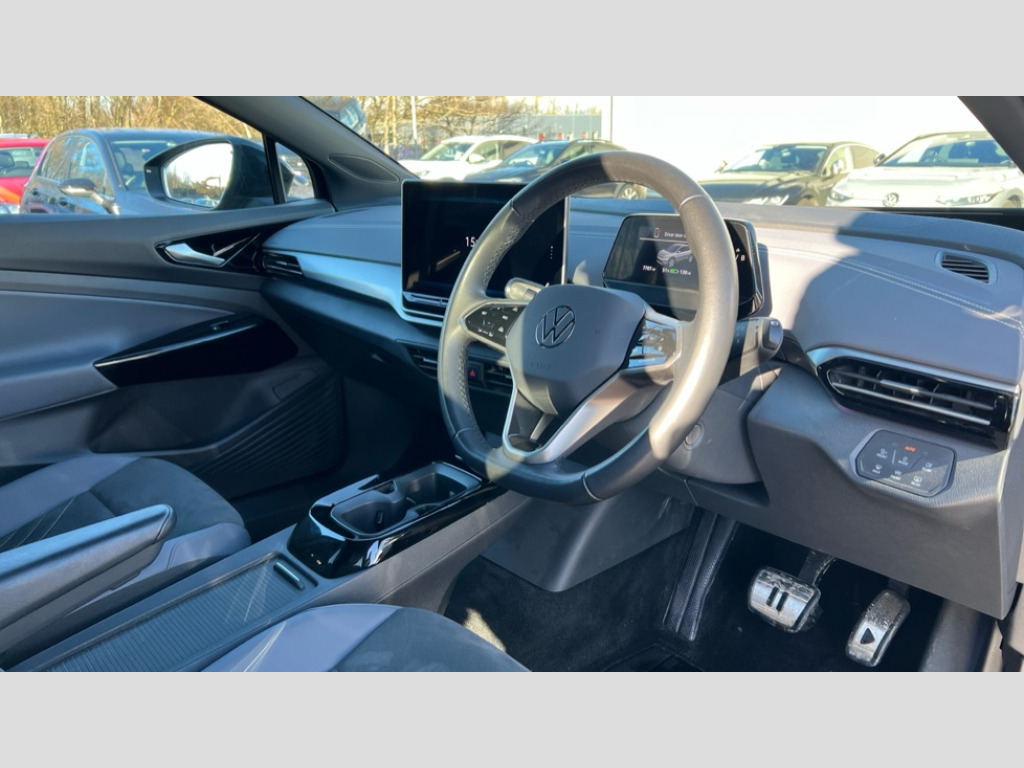 This 2025 Volkswagen ID.4 Pro Match is a remarkable example, having had only one owner from new and benefiting from Volkswagen manufacturer approval. This electric vehicle boasts an impressive 82 kWh battery, offering a substantial maximum range of 347 miles on a full charge. Driving is made easier and more comfortable with features like Adaptive Cruise Control, Keyless Entry and Starting, and a Wireless Smartphone Charger. The advanced Matrix LED Headlights automatically adjust for optimal visibility, while the Air Care Climatronic 2 zone air conditioning system ensures a pleasant cabin environment for all occupants.
