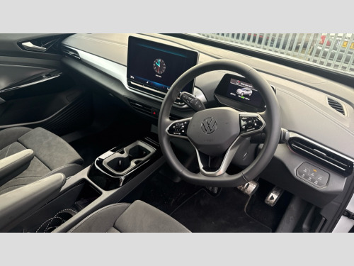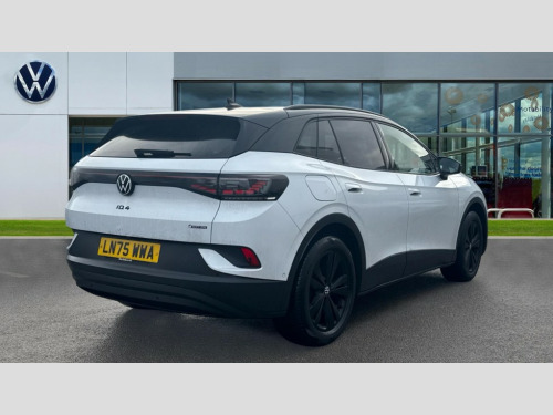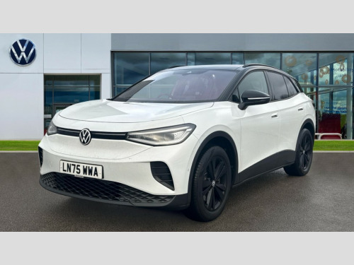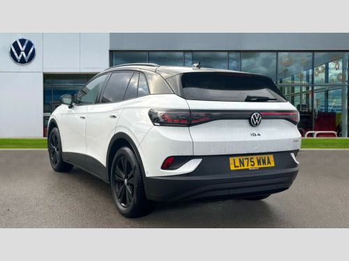 Volkswagen Id.4 210kW 4MOTION Black Edition Pro 77kWh 5dr Auto This Volkswagen ID.4 Pro Black Edition from 2025 is a remarkable example, having had only one owner from new and benefiting from Volkswagen manufacturer approval. This electric vehicle boasts a substantial 82 kWh battery, offering a maximum range of 322 miles, and features a capable Four Wheel Drive system powered by dual motors for confident handling. Convenience is key with keyless entry and starting, alongside heated front seats and a heated steering wheel, all part of the Interior Package Plus with sports seats that also include memory function. A rear view camera with parking assistance further enhances usability.