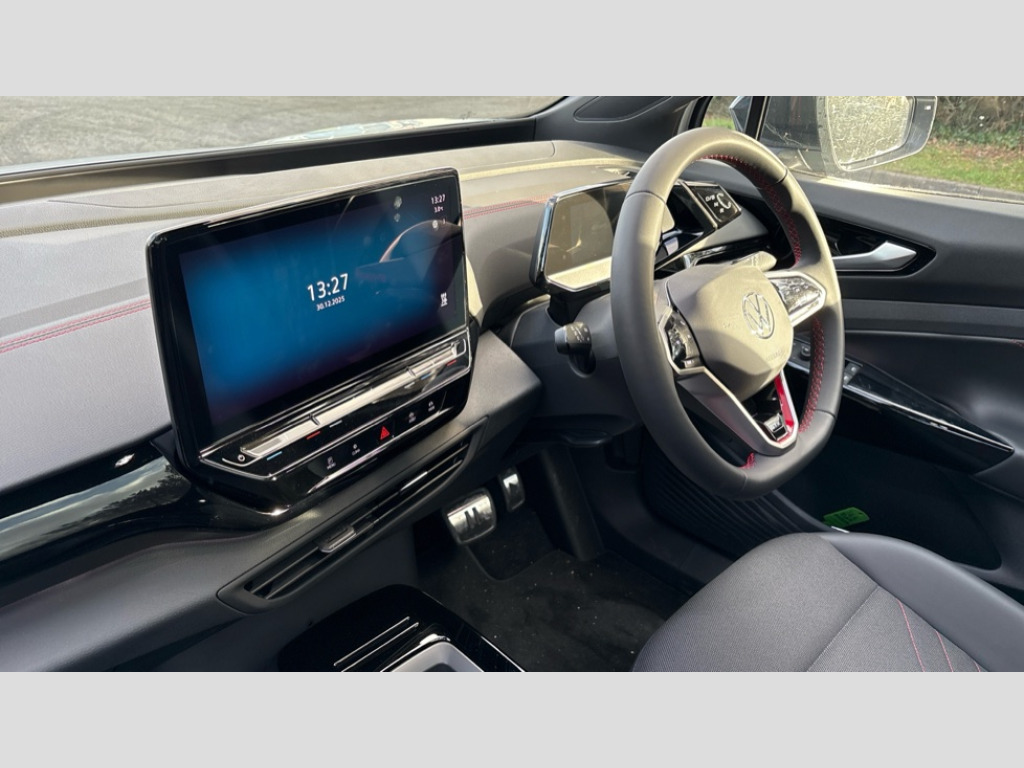 Volkswagen Id.4 250kW 4MOTION GTX 77kWh 5dr Auto 12.9" infotainment screen, Adaptive cruise control, Advanced driver attention and drowsiness monitor, Car2X intelligent vehicle networking, Discover pro navigation, Dynamic road sign display, Emergency call service, Hand brake/low brake fluid level warning light and inscription, ID. Light, Lane assist, Natural voice control, Oncoming vehicle braking when turning including swerve support, Online service, with OCU, with head unit coding, without engine immobilizer interconnection, Park assistance plus with front and rear parking sensors, Preparation for We connect and We connect plus, Progressive steering, Remote tailgate unlocking, Speedo and rev counter, electronic odometer, trip, service interval display and exterior temperature gauge, Telephone interface comfort with inductive charging function, Warning signal and warning light for front and rear seatbelts not fastened, We Charge Go access, We Connect Plus integrated data volume, Wireless app connect, Wireless Smartphone charger, 11 kW AC charging power, AC charging socket (Type 2), Charging cable mode 3, Type 2: 7.2kW 1-Phase/11kW 3-Phase (32A), DC battery charging capablity (Type 2:CCS), DC-DC converter 2.4 kW, Sports suspension, Standard electronic engine sound actuator, System torque four wheel drive, Bluetooth connectivity including audio streaming, DAB Digital radio, Diversity antenna for FM reception, Radio - Ready 2 discover, Touch control, Advanced dynamic light assist for LED matrix headlights, Automatic dimming interior rear view mirror, Black C-pillar, Body colour door handles, Climate windscreen, Comfort bumpers, Daytime running lights, Exterior mirrors convex on the left and aspherical on the right, Fixed panoramic sunroof with electric sunblind, Front and rear electric windows, Front underbody guard, Gloss black door mirrors with integrated indicators, GTX Emblems, Heat insulating darkened glass in side and rear windows, Heated windscreen washer jets, Illuminated door handle recesses, Laminated safety glass from B-pillar backwards 90% tinted, LED rear tail lights with dynamic turn signal, Matrix LED headlights with automatic headlight control, Poor weather light and entry lighting, Power adjustable, heated exterior mirrors, Rain sensor, Rear side wing doors, Rear windscreen washer and wiper with interval delay, Roof trim strip in matte black, Silver roof rails, Third brake light, Variable front intermittent wipers, Welcome light, 2 USB-C ports in the front, 2 USB-C charging sockets on the centre console in rear, charging capacity up to 45 W, 3 seat bench in 2nd row, 30 colour ambient lighting, Air care climatronic 3 zone air conditioning system with rear air conditioning control panel, Armrests for both front seats, Backrest with ID perforation, Central control unit in black, Centre console with illuminated storage compartment with sliding cover and two drinks holders, Door and side trim panel with leatherette insert, Electric auxiliary air heater, Front + rear carpet mats, GTX interior styling including red stitching and GTX logo on steering wheel, Headliner in recycled material, Heated front seats, Height adjustable and removable variable boot floor, Illuminated smartphone storage compartment, Interior style comfort seats, Isofix child seat preparation easy-fit (for two outer rear seats, and front passenger seat) compatible with I-size, Leatherette-wrapped (imitation leather) heated multifunction steering wheel with touch control, Luggage net, Operating voltage 12V, Play and Pause brake and accelerator pedals, Pockets and smartphone pockets in seats, Reach + rake adjustable steering column, Rear seat bench unsplit, backrest split folding with center armrest, Safety optimised front head restraints, Sides,rear and armrest in leatherette, Single front passenger seat, Storage compartments in driver and front passenger, Sun visors with illuminated vanity mirrors, Three rear head restraints, Infotainment plus pack - RD3 - ID.4, 3 Point seat belts in front with pretensioners, 3x3 point rear seat belts, Anti-lock braking system (ABS), Autonomous emergency braking front assist with pedestrian and cyclist monitoring, Child safety lock, Driver and front passenger airbag with front passenger airbag deactivation, Drum brakes in rear, Electronic parking brake with auto hold, Electronic Stability Programme (ESP), First aid kit with warning triangle and safety vest, Front curtain and side airbags with center airbag, Front disc brakes, Proactive passenger protection system in combination with front assist, Seat belt reminder (Japan design), Single torn horn, Traction control, Tyre pressure loss indicator, Alarm with interior protection, Anti theft wheel bolts, Immobiliser, Keyless entry and start, Remote central locking with 2 remote keys, Soul black dash trim with red inserts