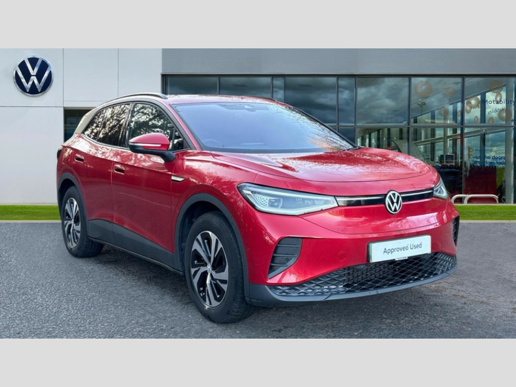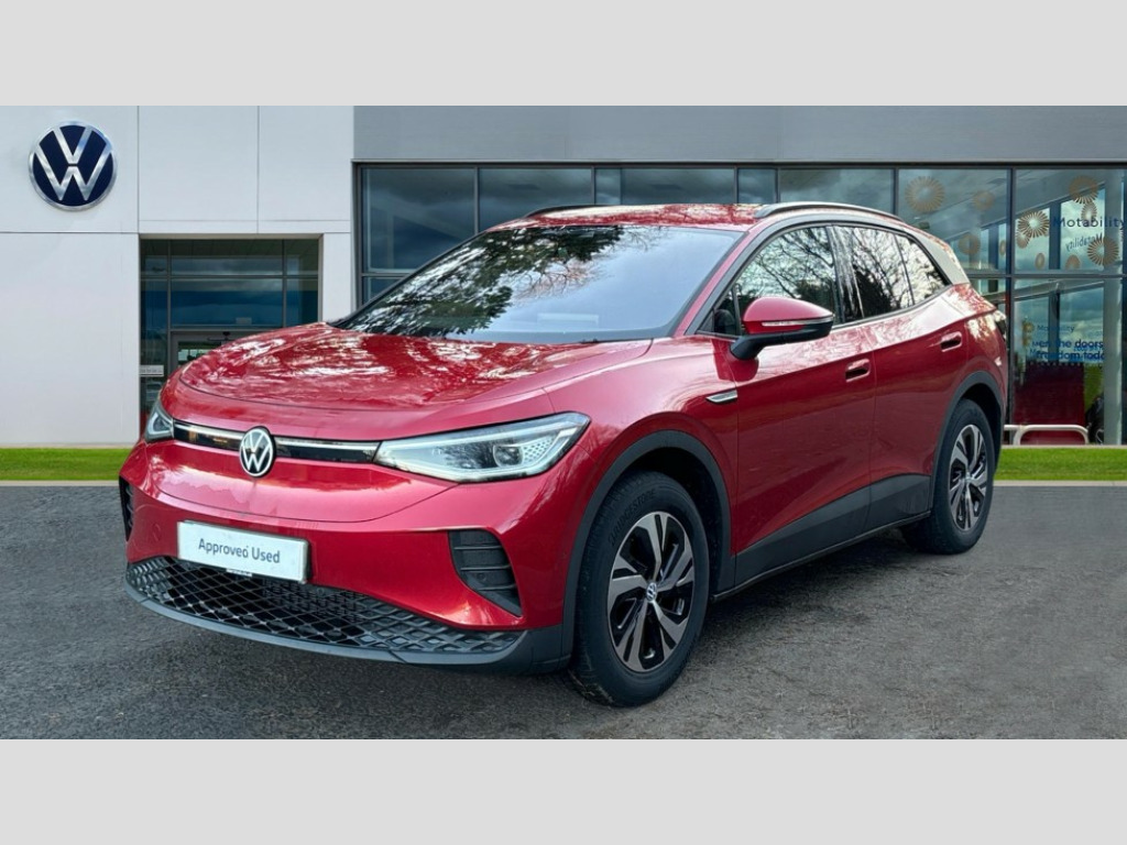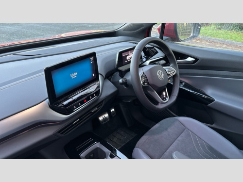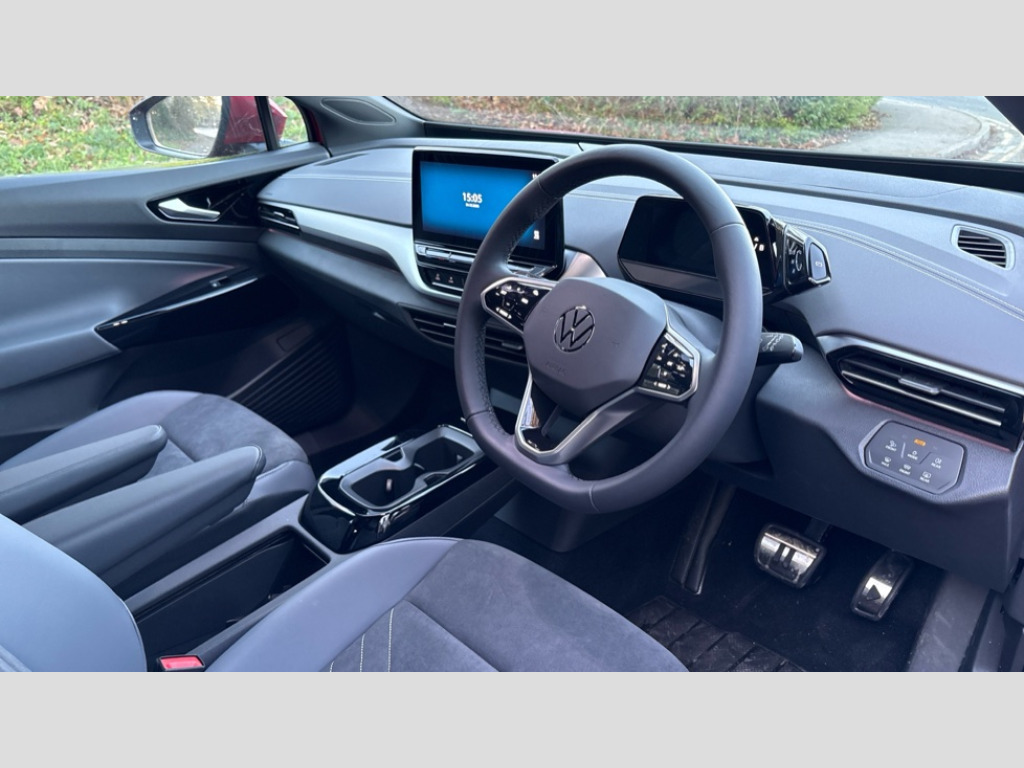 Volkswagen Id.4 210kW Style Pro 77kWh 5dr Auto 12.9" infotainment screen, Adaptive cruise control, Advanced driver attention and drowsiness monitor, Car2X intelligent vehicle networking, Discover pro navigation, Driving profile selection, Dynamic road sign display, Emergency call service, Exit warning system, Hand brake/low brake fluid level warning light and inscription, ID. Light, Lane change system side assist and rear traffic alert, Natural voice control, Oncoming vehicle braking when turning including swerve support, Online service, with OCU, with head unit coding, without engine immobilizer interconnection, Park assistance plus with front and rear parking sensors, Power assisted speed sensitive steering, Preparation for We connect and We connect plus, Remote tailgate unlocking, Speedo and rev counter, electronic odometer, trip, service interval display and exterior temperature gauge, Telephone interface comfort with inductive charging function, Warning signal and warning light for front and rear seatbelts not fastened, We Charge Go access, We Connect Plus integrated data volume, Wireless app connect, Wireless Smartphone charger, 11 kW AC charging power, AC charging socket (Type 2), Charging cable mode 3, Type 2: 7.2kW 1-Phase/11kW 3-Phase (32A), DC battery charging capablity (Type 2:CCS), DC-DC converter 2.4 kW, Standard electronic engine sound actuator, Bluetooth connectivity including audio streaming, DAB Digital radio, Diversity antenna for FM reception, Gaming platform via car app, Radio - Ready 2 discover, Touch control, Advanced dynamic light assist for LED matrix headlights, Ambient lighting, exterior illuminated styling elements in door handle recesses, Automatic dimming interior rear view mirror, Body colour door handles, Climate windscreen assists defrosting and prevents fogging, Daytime running lights, Exterior mirrors convex on the left and aspherical on the right, Fixed panoramic sunroof with electric sunblind, Front and rear electric windows, Gloss black door mirrors with integrated indicators, Heat insulating darkened glass in side and rear windows, Laminated safety glass from B-pillar backwards 90% tinted, LED rear tail lights with dynamic turn signal, Matrix LED headlights with automatic headlight control, Poor weather light and entry lighting, Power adjustable, heated and folding mirrors with front passenger lowering function, Rain sensor, Rear side wing doors, Rear windscreen washer and wiper with interval delay, Roof trim strip in matte black, Silver roof rails, Third brake light, Variable front intermittent wipers, Welcome light, Windscreen washer jets, 2 USB-C ports in the front, 2 USB-C charging sockets on the centre console in rear, charging capacity up to 45 W, 3 seat bench in 2nd row, 30 colour ambient lighting, Air care climatronic 3 zone air conditioning system with rear air conditioning control panel, Armrests for both front seats, Art Velours microfleece cloth upholstery, Backrest with ID perforation, Central control unit in black, Centre console with illuminated storage compartment with sliding cover and two drinks holders, Door and side trim panel with leatherette insert, Electric auxiliary air heater, Front + rear carpet mats, Headliner in recycled material, Heated front seats, Height adjustable and removable variable boot floor, Illuminated smartphone storage compartment, Interior style comfort seats, Isofix child seat preparation easy-fit (for two outer rear seats, and front passenger seat) compatible with I-size, Leatherette-wrapped multifunction heated steering wheel with touch control, Luggage net, Net partition, Operating voltage 12V, Play and Pause brake and accelerator pedals, Pockets and smartphone pockets in seats, Reach + rake adjustable steering column, Rear seat bench unsplit, backrest split folding with center armrest, Safety optimised front head restraints, Sides,rear and armrest in leatherette, Single front passenger seat, Storage compartments in driver and front passenger, Sun visors with illuminated vanity mirrors, Three rear head restraints, Bi-colour styling pack - ID.4, 3 Point seat belts in front with pretensioners, 3x3 point rear seat belts, Anti-lock braking system (ABS), Autonomous emergency braking front assist with pedestrian and cyclist monitoring, Child safety lock, Driver and front passenger airbag with front passenger airbag deactivation, Drum brakes in rear, Electronic parking brake with auto hold, Electronic Stability Programme (ESP), First aid kit with warning triangle and safety vest, Front curtain and side airbags with center airbag, Front disc brakes, Proactive passenger protection system in combination with front assist, Seat belt reminder (Japan design), Single torn horn, Traction control, Tyre pressure loss indicator, Alarm with interior protection, Anti theft wheel bolts, Immobiliser, Keyless entry and start, Remote central locking with 2 remote keys, Soul black dash trim, Tool kit + Tyre mobility set (including 12-volt compressor + tyre sealant), Tyre mobility kit