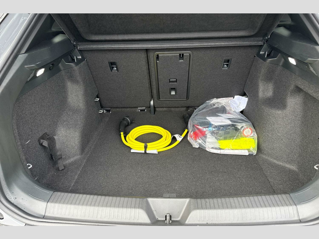 *Range depicts brand new model. Current maximum range may differ in line with battery depreciation. Solid - Moonstone grey, Art velours microfleece cloth - Soul black/Platinum grey stitching, Climate windscreen assists defrosting and prevents fogging, Front and rear electric windows, Heat insulating darkened glass in side and rear windows, Heated windscreen washer jets, Rain sensor, Rear tinted glass from B-pillar backwards approx 65% tinted, Rear windscreen washer and wiper with interval delay, Variable front intermittent wipers, Body colour door handles, Body coloured bumpers, Front underbody guard, Rear side wing doors, Roof trim strip in matte black, Silver roof rails, Advanced dynamic light assist for LED matrix headlights, Ambient lighting, exterior illuminated styling elements in door handle recesses and front grille, Daytime running lights, LED rear tail lights with dynamic turn signal, Matrix LED headlights with automatic headlight control, Poor weather light and entry lighting, Third brake light, Welcome light, Anti-lock braking system (ABS), Autonomous emergency braking front assist with pedestrian and cyclist monitoring, Drum brakes in rear, Electronic parking brake with auto hold, Electronic Stability Programme (ESP), Front disc brakes, Traction control, Adaptive cruise control, Advanced driver attention and drowsiness monitor, Driving profile selection, Dynamic road sign display, Lane change system side assist and rear traffic alert, Oncoming vehicle braking when turning including swerve support, Park assistance plus with front and rear parking sensors, Power assisted speed sensitive steering, Automatic dimming interior rear view mirror, Exterior mirrors convex on the left and aspherical on the right, Gloss black door mirrors with integrated indicators, 3 Point seat belts in front with pretensioners, 3x3 point rear seat belts, Child safety lock, Driver and front passenger airbag with front passenger airbag deactivation, First aid kit with warning triangle and safety vest, Front curtain and side airbags with center airbag, Proactive passenger protection system in combination with front assist, Seat belt reminder (Japan design), Two tone horn, Tyre pressure loss indicator, Front + rear carpet mats, Air care climatronic 2 zone air conditioning system, Electric auxiliary air heater, 2 USB-C ports in the front, 2 USB-C charging sockets on the centre console in rear, charging capacity up to 45 W, Armrests for both front seats, Art Velours microfleece cloth upholstery, Backrest with ID perforation, Black steering wheel, Central control unit in black, Centre console with illuminated storage compartment with sliding cover and two drinks holders, Door and side trim panel with leatherette insert, Headliner in recycled material, Illuminated smartphone storage compartment, Leatherette-wrapped multifunction heated steering wheel with touch control, Operating voltage 12V, Play and Pause brake and accelerator pedals, Pockets and smartphone pockets in seats, Reach + rake adjustable steering column, Sides, rear and armrest in leatherette, Rear wheel drive, Sun visors with illuminated vanity mirrors, Car2X intelligent vehicle networking, Natural voice control, Online service, with OCU, with head unit coding, without engine immobilizer interconnection, Preparation for We connect and We connect plus, Telephone interface comfort with inductive charging function, We Charge Go access, We Connect Plus integrated data volume, Wireless app connect, Wireless Smartphone charger, DAB Digital radio, Diversity antenna for FM reception, Gaming platform via car app, Radio - Ready 2 discover, Electrically-operated tailgate opening and closing function (Easy open), operated via foot movement under rear tailgate, Central control unit - 12.9" infotainment screen in black, Discover pro navigation, Drivers assistance, Emergency call service, Hand brake/low brake fluid level warning light and inscription, Speedo and rev counter, electronic odometer, trip, service interval display and exterior temperature gauge, Warning signal and warning light for fron