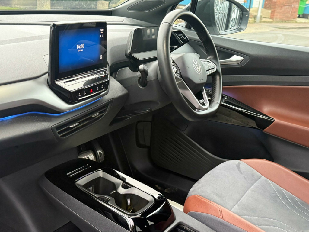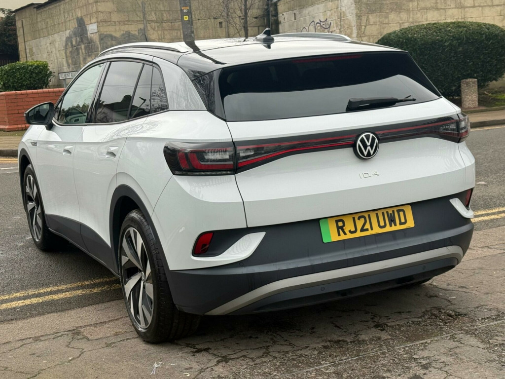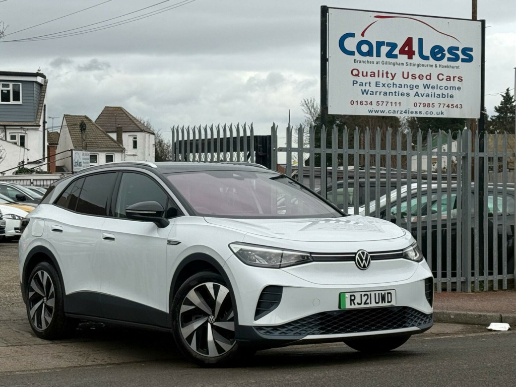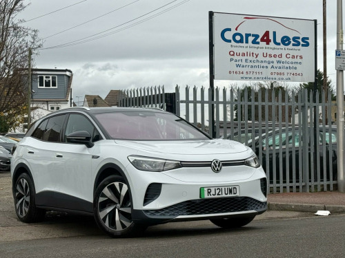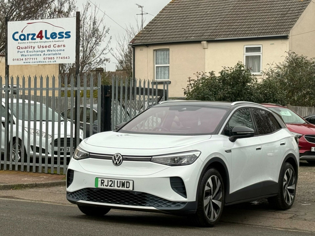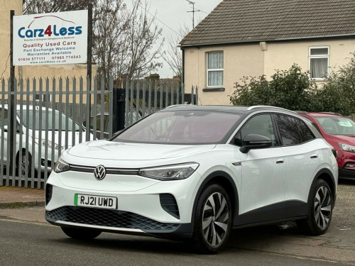 ONE OWNER FROM NEW, COMES WITH A FRESH MOT, VISIT OUR WEBSITE FOR A FREE FINANCE CHECK WWW.CARZ4LESS.CO.UKThis 2021 Volkswagen ID.4 Pro Performance 1ST Edition offers an impressive electric driving experience with a substantial 82 kWh battery, providing a maximum range of 310 miles when new. As a 1ST Edition model, it comes equipped with desirable features including heated front seats for added comfort, a comprehensive Driver Assistance Pack with front and rear parking sensors, and a rear view camera to aid manoeuvring. The Air Care Climatronic 2 zone air conditioning system ensures a pleasant cabin environment, while Smart Adaptive Cruise Control and a rain sensor enhance the driving experience.The generous 310 mile range highlights how this ID.4 can cater to longer journeys, offering greater flexibility than many comparable electric vehicles. Furthermore, the large boot space provides ample room for luggage or shopping, making it a practical choice for families or those who require extra storage. When it comes to charging, a full charge at home using a 7kW charger takes approximately 12 hours and 40 minutes, while rapid public charging can replenish the battery from empty to 80% in as little as 40 minutes, demonstrating its efficiency and convenience.. 10-Inch Display including App Connect and Digital Connectivity, 20in Alloy Wheel - Drammen - Black, ABS - Anti-Lock Braking System, Air Care Climatronic 2-Zone Air Conditioning System, AirStop Tyres, Airbags - Curtain Front and Rear, Airbags - Front Side, Ambient Lighting with 30 Colour Options, Anti-Theft Alarm System with Interior Monitoring in Cab - Backup Horn and Tow-Away Protection, Anti-Theft Wheel Bolts, Automatic Dimming Rear View Mirror, Belt Tensioners in the Front and Rear Outside, Bi-Colour Exterior Style Pack - Silver, Black Roof, Car2X Technology, Carpet Mats - Front and Rear, Center Console with Roller Blind and Illuminated Smartphone Storage Compartment and 2 USB-C Interfaces at the Rear, Centre Console with Armrest in the Front Seats, Child Seat Anchor for Child Seat System - i-Size 2x Top Tether and Child Seat Anchor in Front Passenger Side, DAB Digital Radio, Discover Pro Navigation System incl. Automatic Charging Stop Planning, Driver Alert System, Driver Assistance Pack, Drivers and Front Passengers Airbags, Electric Auxiliary Air Heater, Electric Windows - Front and Rear, Emergency Call Control Unit with eCall, Exterior E-Sound, Exterior Mirrors - Power-Folding - Power-Adjustable - Separately Heated, First Aid Kit and Warning Triangle and Safety Vest, Heated Front Seats, High Beam Regulation and Light Assist, ID Light, Keyless Opening System and Keyless Start, LED Headlights with Automatic Driving Light Switching and LED Tail Lights, LED Rear Combination Lights, Mode 3 - 32-AMP - 7.2kW Charging Cable for Charging at Public Charge Points, Multifunction Camera, Multifunction Steering Wheel and Natural Voice Control, Pedals - Pause and Play, Pro-active Passenger Protection System, Rear Seat Bench Unsplit - Backrest Split Folding with Centre Armrest, Rear View Camera, Rear Window and Side Windows Darkened at the Rear - Metallic Coating with Exterior Style package, Roof Rails, Smart Adaptive Cruise Control and Rain Sensor, Sound System, Speed Sensitive Power Steering, Steering Wheel - Leather Heated Multifunction, Sun Visors with Illuminated Vanity Mirrors, Three Rear Head Restraints, Tool Kit, Turning Brake Function and Dodge Support, Tyre Pressure Loss Indicator, We Charge Go Access, We Connect ID App, Windshield Washer Nozzle - Auto - Heated - Climate Comfort Window.