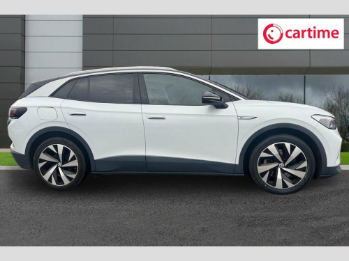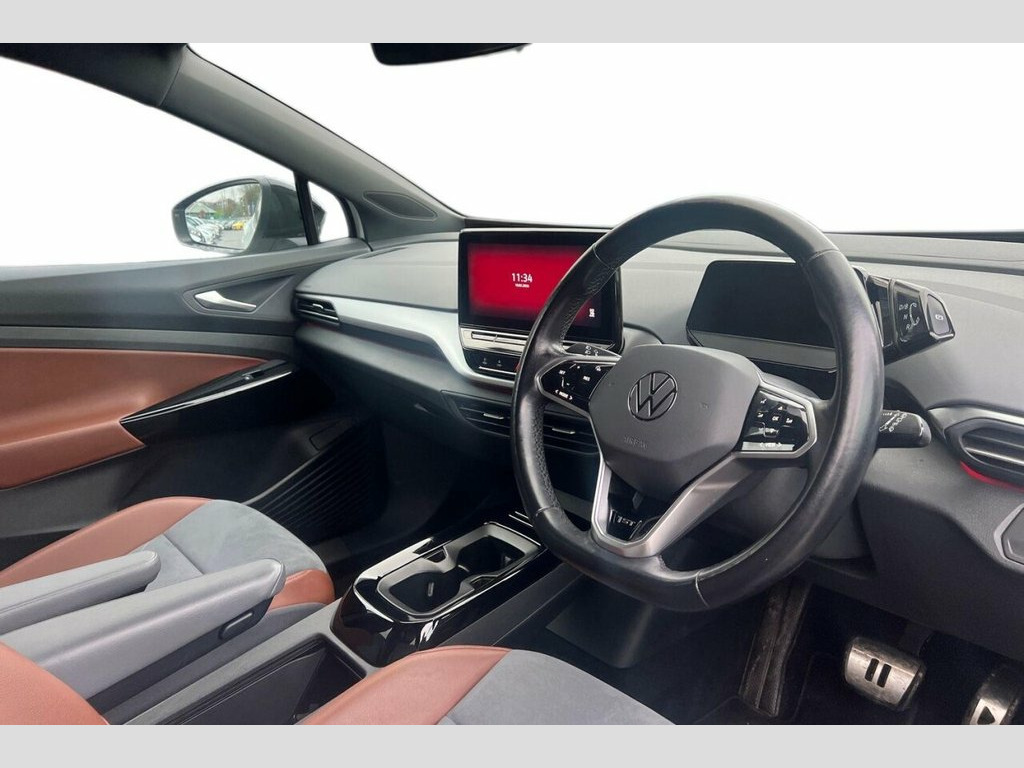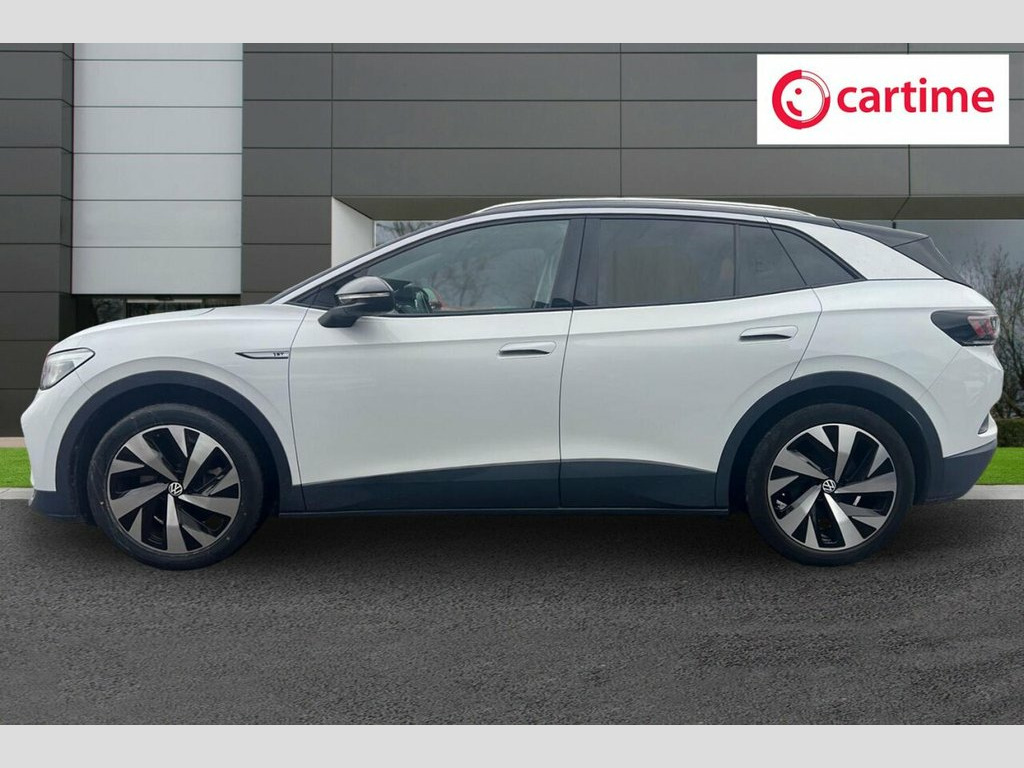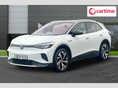 This 2021 Volkswagen ID.4 Pro Performance 1ST Edition is a standout electric vehicle with exceptionally low mileage for its age, having covered just 39,700 miles. As a 1ST Edition model, it boasts a substantial 82 kWh battery, offering a maximum range of 310 miles when new, and comes with an MOT valid until May 2026. This well equipped ID.4 features a heated multifunction leather steering wheel, smart adaptive cruise control with a rain sensor, and a comprehensive driver assistance pack including front and rear parking sensors. You'll also appreciate the convenience of heated front seats and advanced LED headlights with automatic switching, complemented by LED tail lights. The electric powertrain of this ID.4 provides a smooth and efficient driving experience, with a full charge at home taking approximately 12 hours and 40 minutes using a 7kW charger. For quicker top ups, it can reach 80% charge from empty in as little as 40 minutes at a compatible public charging station. Beyond its impressive charging capabilities, this model offers a generous boot space, making it a practical choice for families and everyday use. The combination of its electric efficiency, advanced technology, and spacious interior positions this Volkswagen ID.4 as an excellent alternative to other vehicles in its class. 10-Inch Display including App Connect an, 20in Alloy Wheel - Drammen - Black, ABS - Anti-Lock Braking System, Air Care Climatronic 2-Zone Air Conditio, Airbags - Curtain Front and Rear, Airbags - Front Side, AirStop Tyres, Ambient Lighting with 30 Colour Options, Anti-Theft Alarm System with Interior Mo, Anti-Theft Wheel Bolts, Art Velours - Leatherette - Interior Sty, Automatic Dimming Rear View Mirror, Belt Tensioners in the Front and Rear Ou, Bi-Colour Exterior Style Pack - Silver, Black Roof, Car2X Technology, Carpet Mats - Front and Rear, Center Console with Roller Blind and Ill, Centre Console with Armrest in the Front, Child Seat Anchor for Child Seat System , DAB Digital Radio, Disco