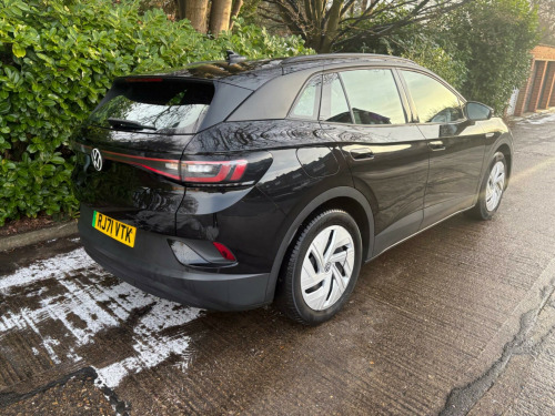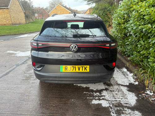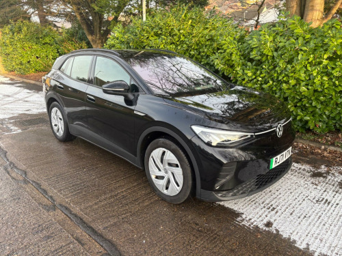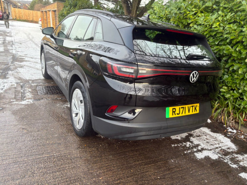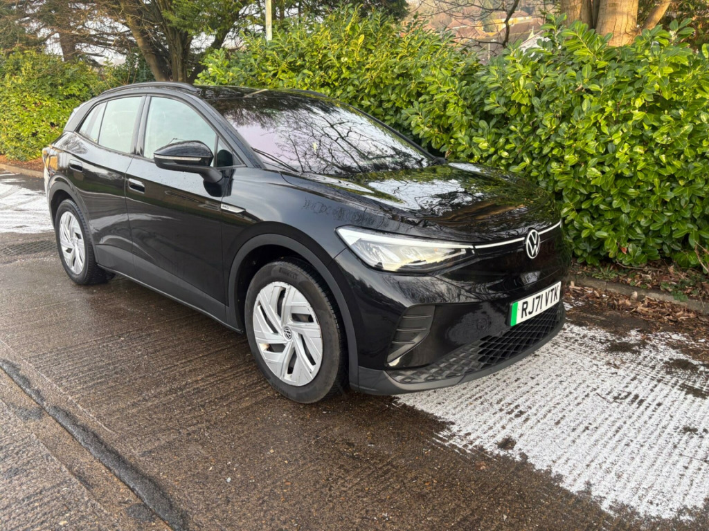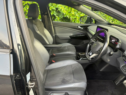 This 2021 Volkswagen ID.4 Pro Performance Life is an electric vehicle offering an impressive new battery range of 320 miles. This model, registered in 2021, features a substantial 82 kWh battery, providing ample power for your journeys. It comes equipped with a suite of intelligent features designed for comfort and convenience, including Smart Adaptive Cruise Control, automatic LED headlights and tail lights, and a Rain Sensor. The Driver Assistance Pack enhances safety with front and rear parking sensors, while the Keyless Opening System and Keyless Start allow for effortless access. Inside, the Comfort Pack ensures a pleasant experience with climate control, heated seats, and a heated steering wheel.The charging capabilities of this ID.4 are designed for modern life. A full charge at home using a 7kW charger takes approximately 12 hours and 40 minutes, ideal for overnight top ups. For faster charging on the go, it can reach 80% capacity from empty in just 40 minutes at a public charging station. This electric Volkswagen also boasts a large boot space, offering practicality for shopping trips or luggage. The 320 mile maximum range at new highlights its capability as a long distance electric car, making it a compelling choice for those seeking an efficient and well equipped electric SUV. sistance pack plus, black roof, bi-colour exterior style pack - silver, sport pack, mode 2 - 3-pin mains - charging cable, 10-inch display including app connect and digital connectivity, 19in steel wheels - aero, abs - anti-lock braking system, airbags - curtain front and rear, airbags - front side, anti-theft alarm system with interior monitoring in cab - backup horn and tow-away protection, belt tensioners in the front and rear outside, centre console with armrest in the front seats, comfort pack, discover pro navigation system incl. automatic charging stop planning, driver assistance pack, drivers and front passengers airbags, electric windows - front and rear, exterior e-sound, id light, infotainment package, interior style, keyless opening system and keyless start, led headlights with automatic driving light switching and led tail lights, led rear combination lights, mode 3 - 32-amp - 7.2kw charging cable for charging at public charge points, multifunction camera, multifunction steering wheel and natural voice control, pro-active passenger protection system, rear seat bench unsplit - backrest split folding with centre armrest, roof rails, smart adaptive cruise control and rain sensor, sound system, speed sensitive power steering, we charge go access, we connect id app