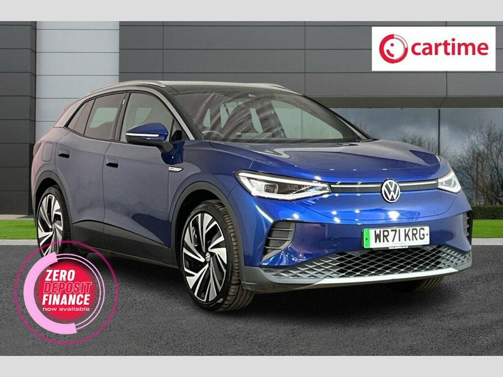 The Volkswagen ID4, a family crossover driven by a rear wheel drive axle and an all electric motor for environmentally friendly driving pleasure. Presented here in Stone Washed Blue and paired with 19-inch Alloy Wheels, Cartime are proud to offer this VW ID4 Max. Features on this vehicle include; App Connect with Wireless Android Auto and Apple CarPlay, 30 Colour Ambient Lighting, DAB Digital Radio, Power Adjustable/Folding and Heated Door Mirrors, Heated Front Climate Windscreen, Keyless Opening and Start, LED Headlights with Automatic Driving Lights, Roof Rails and Wireless Smartphone Charging. 19in Alloy Wheels - Hamar, 3 Head Restraints - Height Adjustable, 3-Point Seatbelts in Front with Seatbelt, ABS - Anti-Lock Braking System, Airbags - Front Seat Side Impact, Alarm with Interior Protection with Deac, Ambient Lighting with 30 Colour Options, App Connect with Wireless Connection for, ArtVelours-Microfleece - Soul Black-Flor, Assistance Pack Plus, Automatic Dimming Rear View Mirror, Bluetooth Telephone and Audio Connection, Body Coloured Bumpers and Flush Integrat, Car2X - Intelligent Vehicle Networking, Carpet Mats - Front and Rear, Centre Console with Changeable Inserts f, Comfort Pack Plus, Curtain Airbag System for Front and Rear, DAB Digital Radio, Design Package Plus, Driv