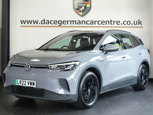 Volkswagen ID.4 Pure Life | Service History | High-Spec Electric SUV | Finished in stylish Grey, Inside, you'll find a digital dash, heated front seats, and a smart black & grey half leather interior, complemented by ambient lighting for a refined cabin feel. Technology includes satellite navigation, a reverse camera, wireless Apple CarPlay, Bluetooth, DAB digital radio, and in-car entertainment, all managed via the heated multifunction steering wheel. On the road, selectable driving modes, parking sensors, and automatic lights ensure a confident and effortless drive. Outside, the ID.4 looks sharp with 18-inch alloys, sleek styling, and roof rails for added practicality. Comfort and convenience come with dual climate control, air conditioning, electric windows, and electric mirrors, making this ID.4 ready for everyday life. ------------FINANCE------------ ***NOT SURE YOU'RE ELIGIBLE FOR CAR FINANCE? *** CHECK TODAY USING THE FREE CAR FINANCE CHECKER ON OUR WEBSITE.** Dace Motor Group have a dedicated team of finance experts waiting to help with your enquiry. Over the past 30 years we have forged relationships with the country's largest and best finance houses. We are specialists in Hire Purchase (HP), Personal Contract Purchase (PCP) as well as assisting those with poor credit or previous credit problems. ------------ABOUT US------------ - At Dace German Car Centre, we are very proud to have been named the first Trading Standards Approved Car Retailer, 18in Alloy Wheels - Falun, 18in Steel Wheels - Aero, 3 Head Restraints - Height Adjustable, 3-Point Seatbelts in Front with Seatbelt, ABS - Anti-Lock Braking System, Airbags - Front Seat Side Impact, Alarm with Interior Protection with Deac, Ambient Lighting with 30 Colour Options, App Connect with Wireless Connection for, Assistance Pack, Automatic Dimming Rear View Mirror, Bluetooth Telephone and Audio Connection, Body Coloured Bumpers and Flush Integrat, Car2X - Intelligent Vehicle Networking, Carpet Mats - Front and Rear, Centre Console with Changeable Inserts f, Comfort Pack, Curtain Airbag System for Front and Rear, DAB Digital Radio, Driver and Front Passenger Seat Height A, Driver As