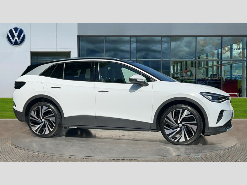 Volkswagen Id.4 210kW Match Pro 77kWh 5dr Auto Adaptive cruise control, Advanced driver attention and drowsiness monitor, Car2X intelligent vehicle networking, Central control unit - 12.9" infotainment screen in black, Discover pro navigation, Drivers assistance, Driving profile selection, Dynamic road sign display, Electrically-operated tailgate opening and closing function (Easy open), operated via foot movement under rear tailgate, Emergency call service, Hand brake/low brake fluid level warning light and inscription, Lane change system side assist and rear traffic alert, Natural voice control, Oncoming vehicle braking when turning including swerve support, Online service, with OCU, with head unit coding, without engine immobilizer interconnection, Park assistance plus with front and rear parking sensors, Power assisted speed sensitive steering, Preparation for We connect and We connect plus, Speedo and rev counter, electronic odometer, trip, service interval display and exterior temperature gauge, Telephone interface comfort with inductive charging function, Warning signal and warning light for front and rear seatbelts not fastened, Washer fluid level indicator, We Charge Go access, We Connect Plus integrated data volume, Wireless app connect, Wireless Smartphone charger, 11 kW AC charging power, 82 kWh High voltage battery, AC charging socket (Type 2), Battery 320 A (49 Ah), Charging cable mode 3, Type 2: 7.2kW 1-Phase/11kW 3-Phase (32A), DC battery charging capablity (Type 2:CCS), DC-DC converter 2.4 kW, Rear wheel drive, Standard electronic engine sound actuator, DAB Digital radio, Diversity antenna for FM reception, Gaming platform via car app, Radio - Ready 2 discover, Advanced dynamic light assist for LED matrix headlights, Ambient lighting, exterior illuminated styling elements in door handle recesses and front grille, Automatic dimming interior rear view mirror, Body colour door handles, Body coloured bumpers, Climate windscreen assists defrosting and prevents fogging, Daytime running lights, Exterior mirrors convex on the left and aspherical on the right, Front and rear electric windows, Front underbody guard, Gloss black door mirrors with integrated indicators, Heat insulating darkened glass in side and rear windows, Heated windscreen washer jets, LED rear tail lights with dynamic turn signal, Matrix LED headlights with automatic headlight control, Poor weather light and entry lighting, Rain sensor, Rear side wing doors, Rear tinted glass from B-pillar backwards approx 65% tinted, Rear windscreen washer and wiper with interval delay, Roof trim strip in matte black, Silver roof rails, Third brake light, Variable front intermittent wipers, Welcome light, 2 USB-C ports in the front, 2 USB-C charging sockets on the centre console in rear, charging capacity up to 45 W, 3 seat bench in 2nd row, Air care climatronic 2 zone air conditioning system, Armrests for both front seats, Art Velours microfleece cloth upholstery, Backrest with ID perforation, Black steering wheel, Central control unit in black, Centre console with illuminated storage compartment with sliding cover and two drinks holders, Door and side trim panel with leatherette insert, Electric auxiliary air heater, Front + rear carpet mats, Headliner in recycled material, Heated front seats, Illuminated smartphone storage compartment, Interior style comfort seats, Isofix child seat preparation easy-fit (for two outer rear seats, and front passenger seat) compatible with I-size, Leatherette-wrapped multifunction heated steering wheel with touch control, Operating voltage 12V, Play and Pause brake and accelerator pedals, Pockets and smartphone pockets in seats, Reach + rake adjustable steering column, Rear seat bench unsplit, backrest split folding with center armrest, Safety optimised front head restraints, Sides,rear and armrest in leatherette, Single front passenger seat, Sun visors with illuminated vanity mirrors, Three rear head restraints, 3 Point seat belts in front with pretensioners, 3x3 point rear seat belts, Anti-lock braking system (ABS), Autonomous emergency braking front assist with pedestrian and cyclist monitoring, Child safety lock, Driver and front passenger airbag with front passenger airbag deactivation, Drum brakes in rear, Electronic parking brake with auto hold, Electronic Stability Programme (ESP), First aid kit with warning triangle and safety vest, Front curtain and side airbags with center airbag, Front disc brakes, Proactive passenger protection system in combination with front assist, Seat belt reminder (Japan design), Traction control, Two tone horn, Tyre pressure loss indicator, Alarm with interior protection, Anti theft wheel bolts, Immobiliser, Keyless entry and start, Remote central locking with 2 remote keys, Soul black dash trim
