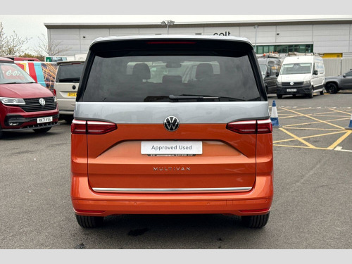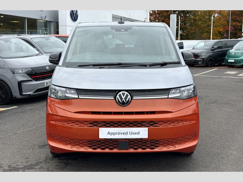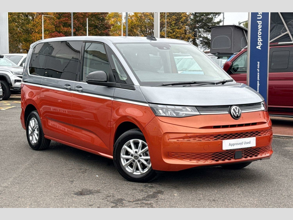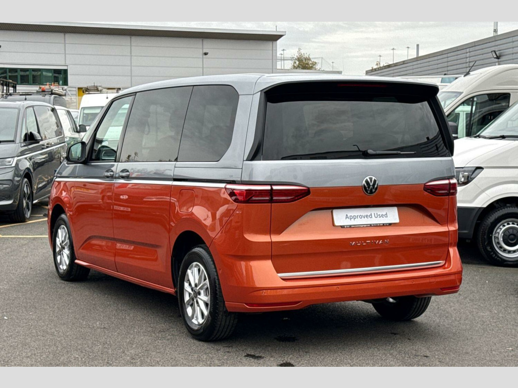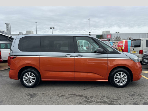 Volkswagen Multivan 2.0 TDI Life 5dr DSG Parking Package, Special Order Factory 2-Tone Paint, Chrome Strips on Side & Rear, Heated Front Seats, Discover Media Navigation Pro, Privacy Glass, Parking Package, Special 2-Tone Factory paint-Mono Silver/Energetic Orange, Twin sliding side load doors, Privacy glass (90%), Chrome trim decorative strip mid-way on side and rear, Parking sensors front + rear, Rear view camera, Park sensors - front and rear park with park assist, Rear view camera, High Beam Control, Park Assist, Adaptive Cruise Control, Lane Change Assist, Dynamic Headlamp Range Control, Poor Weather Lights, Ribella bi-colour fabric upholstery, Heated front seats, Multi-function table, Navigation system 'Discover Pro', App-Connect incl. App-Connect Wireless for Apple CarPlay and Android Auto, 2 remote control folding keys, Parking Package, Assistance Package, Lighting Package, Two tone - Mono Silver/Energetic Orange, Ribella bi-colour fabric - Raven black/Sand, 16" Syrakus silver alloy wheels with low rolling resistance tyres, Heated rear window with window wiper and washer system, Interior noise reduction measures, Laminated safety glass windshield, heat and sound insulating, Rear wiper, Windshield wiper intermittent control with rain sensor, Body coloured exterior door handles, Glossy black painted radiator grille with 2 chrome trims, Sliding door on left/right with power latching, Automatic headlight control with welcome home lights, Dynamic headlight range control (self adjusting), Front fog lights, LED 3rd brake lamp, LED main headlamps with LED separate daytime running light, LED rear combination lamps, ABS, Automatic post collision braking system, Autonomous emergency braking front assist with pedestrian and cyclist monitoring, Electronic stability control (ESC) and Electromechanical brake booster, ESP, Hill hold assist, Traction control, Adaptive cruise control with C2X including front assist and city emergency braking system, Driver alert system, Dynamic road sign display, Lane change system with side assist including blind spot monitor, rear traffic alert and exit warning system, Lane keeping system Lane Assist, PAS, Break away auto dimming rear view interior mirror, Electrically adjustable, heated and folding door mirrors, High gloss black exterior mirror housing, 3x3 point rear seat belts, Driver and front passenger airbag with front passenger airbag deactivation, Electric childproof lock, First aid kit with warning triangle and safety vest, Seat belt warning for the drivers and all passengers seats if unfastened, Side and curtain airbags for driver and front passenger, curtain airbags for outer seats in rear, centre airbag in front, Single tone horn, Tyre pressure monitoring system, Carpet mats in cab, Reinforced carpet floor covering in passenger compartment, 1 x 12V sockets on the dash panel, 12V socket in passenger compartment, Grab handles on A pillar for access, on driver and front passenger side, Height and longitudinal adjustment steering wheel with gear shift paddles, Illumination lockable glovebox compartment, Load compartment partition to 20kg with bag hooks and luggage net, Luggage compartment lid power latching with unlatching from inside, Multifunction leather steering wheel with tiptronic, Slidable multifunction table/centre console with 3 cup holders, Storage compartment under the 2nd and 3rd row seat and two waste bins, Surround lighting in door area, LED luggage compartment lighting X 2, Electronic differential lock, Sun visors with illuminated vanity mirror, ticket holder on driver side with airbag warning label on sunvisor and B-pillar, Mobile phone interface, We connect preparation, 2 USB-C ports in front and 4 USB-C ports in passenger compartment, eCall emergency system, Tailgate, Travel assist, Dark silver brushed decorative inserts, 3 seat bench in 3rd row, 7 single seats removable/movable, Front and rear head restraints, Height adjustable seats, ISOFIX (including i-size) and top tether in all seats in 2nd and 3rd rows, Removable armrests for front seats with power adjustable lumbar support and folding table for 2nd row passenger seats, Removable armrests in 2nd row passenger seats, Single