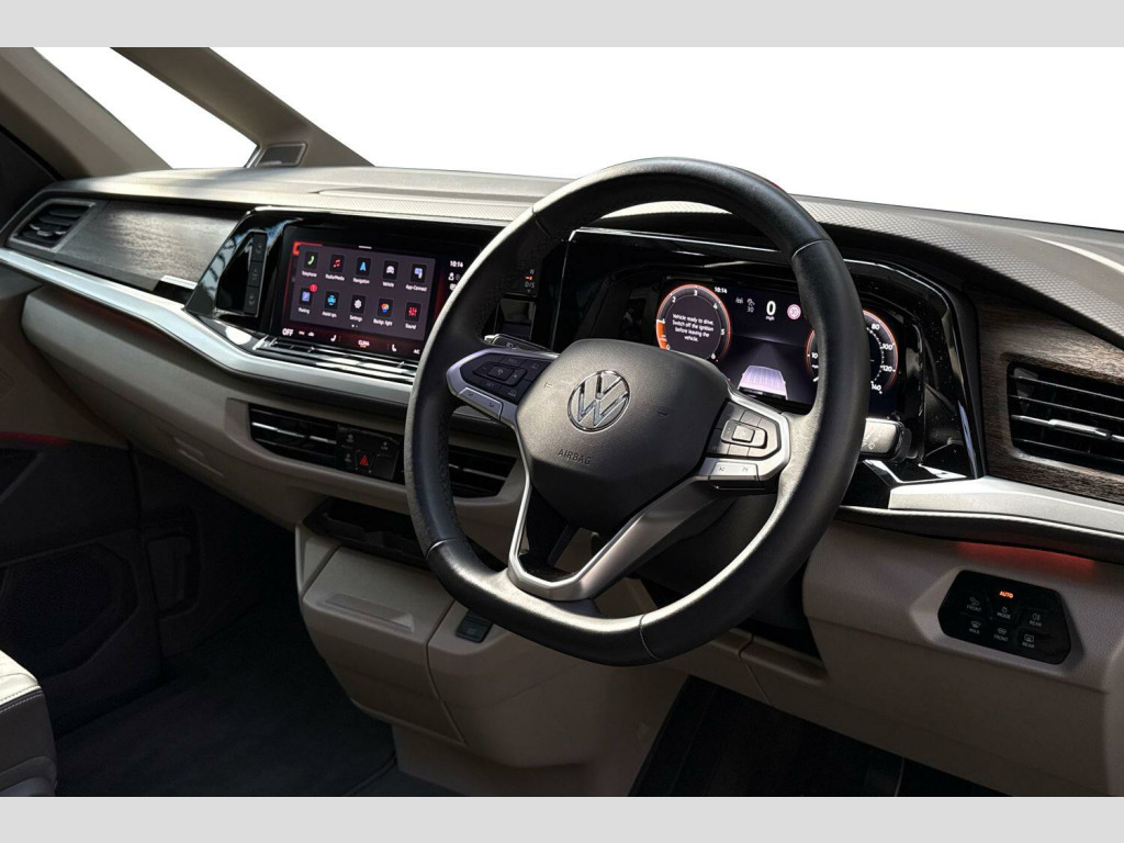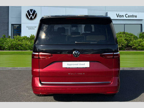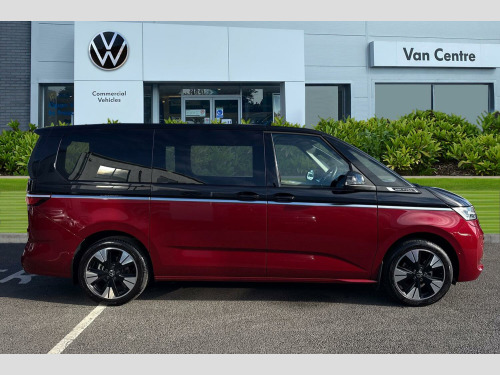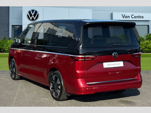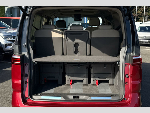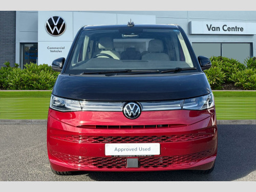 LWB Body, Deep Black Pearl/Fortana Red- Metallic 2 Tone, Panoramic glass sunroof, Twin, electrice sliding side load doors, Power tailgate, IQ Matrix LED headlamps, Fixed side windows in 2nd row, Retractable tow bar, with electric release, Mudflaps front + rear, Park sensors - front and rear park with park assist, Rear view camera system, 7 Seat Conference Package, Raven Black/Sand Art Velours interior trim, Heated front seats, Navigation system "Discover Media'', Harmon Kardon HiFi, Retractable tow bar, with electric release, Heated front seats, Art Velours interior trim-Raven Black/Sand, 4 remote control folding keys, Keyless Advance, Deep Black/Fortana Red 2 Tone, Raven Black/Sand 'Art velours' Interior trim, 19" Halmstadt black alloy wheels, Tyre mobility kit, Part of the Swansway group-one of the largest and leading official VW Van Centre groups with access to 700+ used VW Commercial Vehicles, We stock one of the largest range of new and used VW Commercial Vehicles, We have a dedicated used sales team to assist with all aspects of your enquiry, We offer a 14 day exchange your vehicle policy if you're not completely satisfied, We offer a full HD personalised video walk around-just call a member of the team on 0121 260 3000, Reserve today with just a fully refundable £500 reservation, Additional interior noise reduction measures, Heated rear window with window wiper and washer system, Heated windscreen, Laminated safety glass windshield, heat and sound insulating, Rear wiper, Windshield wiper intermittent control with rain sensor, Body coloured exterior door handles, Chrome trim decorative strip mid-way on side and rear, Electric sliding rear side door on the left/right with easy open feature, Glossy black painted radiator grille with 2 illuminated chrome trims, Sliding windows in front sliding doors and fixed rear windows, Stainless steel tailgate trim, Advanced high beam control dynamic light assist for LED matrix headlamps, Automatic headlight control with welcome home lights, Dynamic headlight range control with dynamic cornering light, Front fog lights, IQ.Light LED matrix headlamps with LED separate daytime running light, LED 3rd brake lamp, LED rear combination lamps, Surround lighting in door area and tailgate with logo projection in door area, ABS, Automatic post collision braking system, Autonomous emergency braking front assist with pedestrian and cyclist monitoring, Electronic stability control (ESC) and Electromechanical brake booster, ESP, Front disc brakes, Hill hold assist, Traction control, Adaptive cruise control with C2X including front assist and city emergency braking system, Driver alert system, Dynamic road sign display, Lane keeping system Lane Assist, PAS, Semi-automated driving assistance, Break away auto dimming rear view interior mirror, Electrically adjustable, heated and folding door mirrors, High gloss black exterior mirror housing, 3x3 point rear seat belts, Driver and front passenger airbag with front passenger airbag deactivation, Electric childproof lock, First aid kit with warning triangle and safety vest, Seat belt warning for the driverÆs and all passengers seatÆs if unfastened, Side and curtain airbags for driver and front passenger, curtain airbags for outer seats in rear, centre airbag in front, Single tone horn, Tyre pressure monitoring system, Carpet mats in cab, Reinforced carpet floor covering in passenger compartment, Climatronic 3 zone air conditioning with 2nd evaporator, auxiliary heater, air conditioned headliner and additional passenger control, 1 x 12V sockets on the dash panel, 12V socket in passenger compartment, Grab handles on A pillar for access, on driver and front passenger side, Heated steering wheel, Height and longitudinal adjustment steering wheel with gear shift paddles, Illumination lockable glovebox compartment, Load compartment partition to 20kg with bag hooks and luggage net, Luggage compartment lid power latching with unlatching from inside, Multifunction l