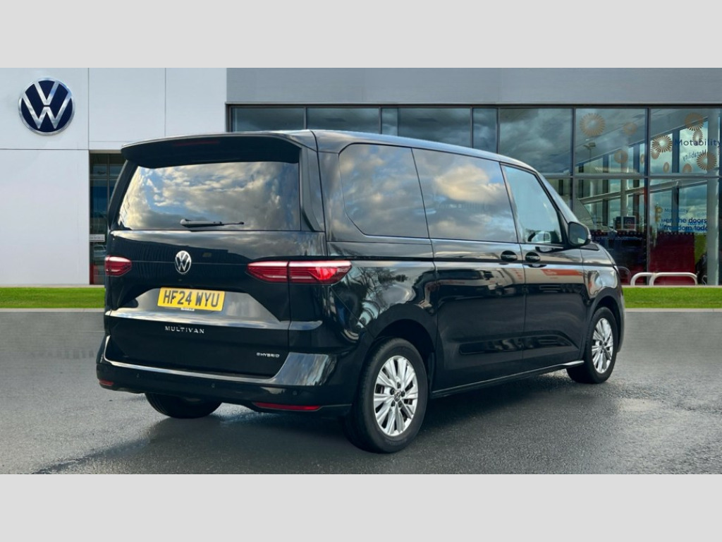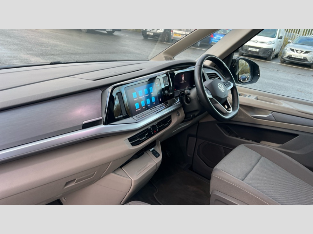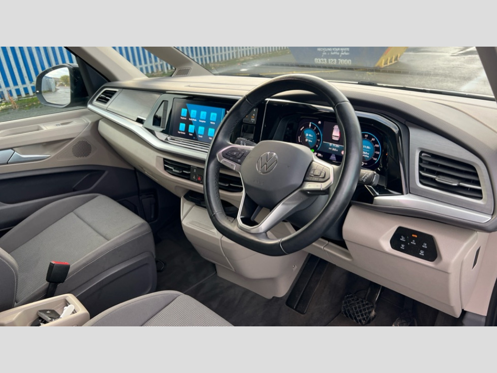 Volkswagen Multivan 1.4 TSI eHybrid Life 5dr DSG Adaptive cruise control with C2X including front assist and city emergency braking system, App-Connect incl. App-Connect Wireless for Apple CarPlay and Android Auto, Digital Cockpit Pro with 10.25" Display, Driver alert system, Dynamic road sign display, eCall emergency system, Lane keeping system Lane Assist, Mobile phone interface, PAS, Rear view camera, Socket AC Type 2, Tailgate, Voice control system including Alexa web app, We connect preparation, 1 x 6 metre charging cables - 16amp AC cable for wallbox chargepoints (mode 3), Charging cable Mode 3 Type 2 / 3 (16A), Electronic differential lock, 2 USB-C ports in front and 4 USB-C ports in passenger compartment, Digital radio reception (DAB+), Automatic headlight control with welcome home lights, Body coloured exterior door handles, Break away auto dimming rear view interior mirror, Dynamic headlight range control (self adjusting), Electrically adjustable, heated and folding door mirrors, Front fog lights, Glossy black painted radiator grille with 2 chrome trims, Heated rear window with window wiper and washer system, High gloss black exterior mirror housing, Interior noise reduction measures, Laminated safety glass windshield, heat and sound insulating, LED 3rd brake lamp, LED main headlamps with LED separate daytime running light, LED rear combination lamps, Rear wiper, Sliding door on left/right with power latching, Windshield wiper intermittent control with rain sensor, 1 x 12V sockets on the dash panel, 12V socket in passenger compartment, 3 seat bench in 3rd row, 7 single seats removable/movable, Carpet mats in cab, Front and rear head restraints, Grab handles on A pillar for access, on driver and front passenger side, Height adjustable seats, Height and longitudinal adjustment steering wheel with gear shift paddles, Illumination lockable glovebox compartment, ISOFIX (including i-size) and top tether in all seats in 2nd and 3rd rows, LED luggage compartment lighting X 2, Load compartment partition to 20kg with bag hooks and luggage net, Luggage compartment lid power latching with unlatching from inside, Multifunction leather steering wheel with tiptronic, Reinforced carpet floor covering in passenger compartment, Removable armrests for front seats with power adjustable lumbar support and folding table for 2nd row passenger seats, Removable armrests in 2nd row passenger seats, Single front passenger seat, Storage compartment under the 2nd and 3rd row seat and two waste bins, Sun visors with illuminated vanity mirrors and airbag warning label on front passenger sun visors, Surround lighting in door area, 3x3 point rear seat belts, ABS, Automatic post collision braking system, Autonomous emergency braking front assist with pedestrian and cyclist monitoring, Driver and front passenger airbag with front passenger airbag deactivation, Electric childproof lock, Electronic stability control (ESC) and Electromechanical brake booster, ESP, First aid kit with warning triangle and safety vest, Hill hold assist, Seat belt warning for the drivers and all passengers seats if unfastened, Side and curtain airbags for driver and front passenger, curtain airbags for outer seats in rear, centre airbag in front, Single tone horn, Traction control, Tyre pressure monitoring system, Anti theft alarm system with interior monitoring in cab, backup horn and towing protection, Keyless Start, Start/stop button on centre console, Dark silver brushed decorative inserts