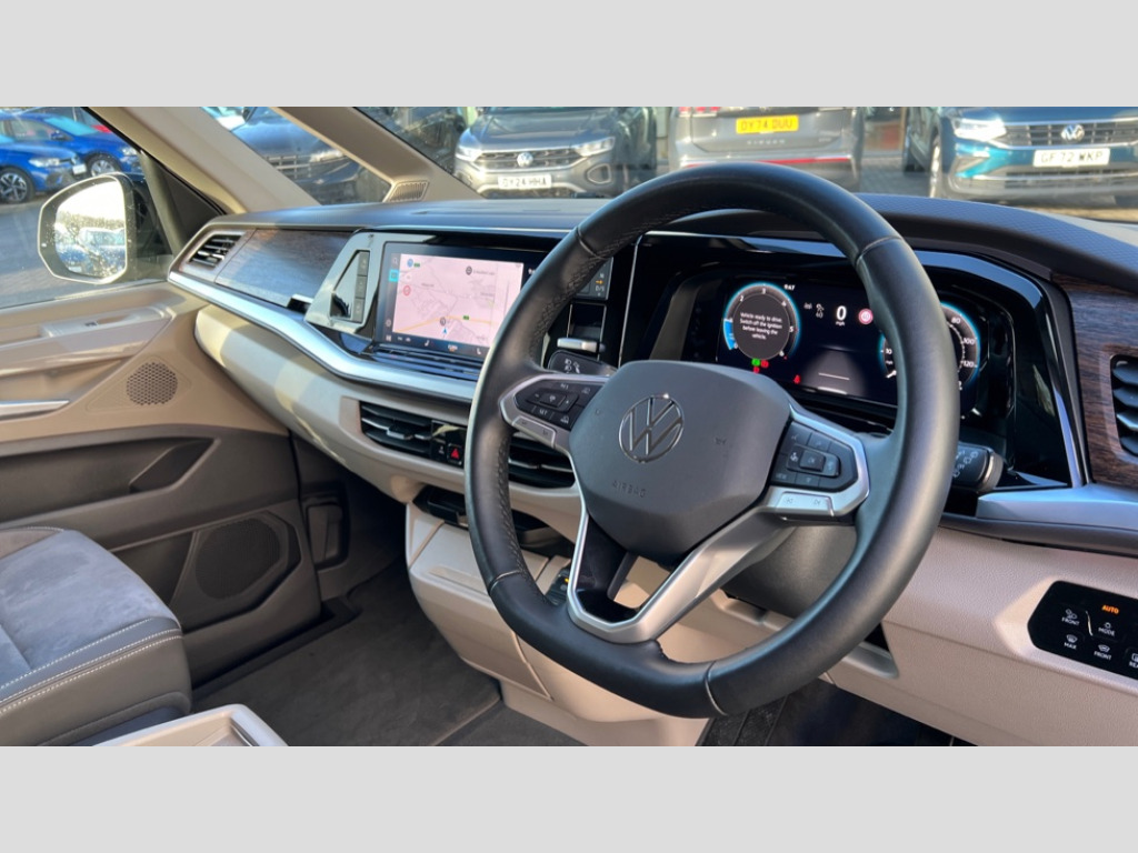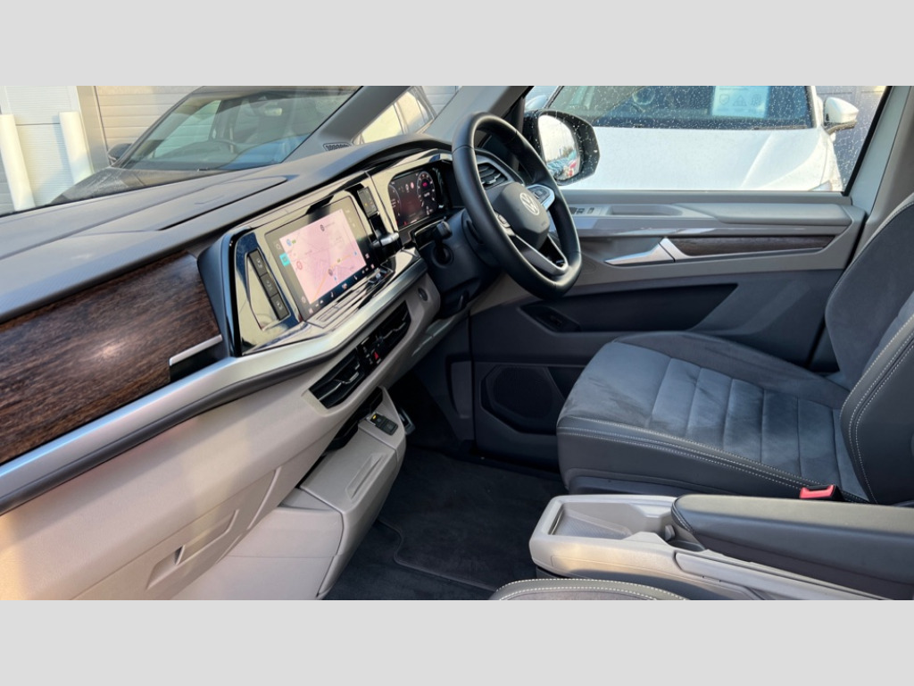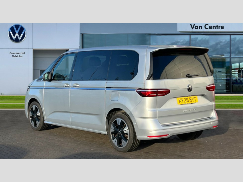 Volkswagen Multivan 2.0 TDI Style 5dr DSG Adaptive cruise control with C2X including front assist and city emergency braking system, Digital Cockpit Pro with 10.25" Display, Discover media pro navi system with 10" colour touch incl DAB+radio/appconnect for apple carplay/android auto/streaming and internet/gesture control, Driver alert system, Dynamic road sign display, eCall emergency system, Electric tailgate with virtual pedal, Electrically-operated tailgate opening and closing function (Easy open), operated via foot movement under rear tailgate, Emergency assist, Lane change system with side assist including blind spot monitor, rear traffic alert and exit warning system, Lane keeping system Lane Assist, Mobile phone interface, PAS, Semi-automated driving assistance, Travel assist, Voice control system including Alexa web app, We connect preparation, Electronic differential lock, 2 USB-C ports in front and 4 USB-C ports in passenger compartment, Additional interior noise reduction measures, Advanced high beam control dynamic light assist for LED matrix headlamps, Automatic headlight control with welcome home lights, Body coloured exterior door handles, Break away auto dimming rear view interior mirror, Chrome trim decorative strip mid-way on side and rear, Dynamic headlight range control with dynamic cornering light, Electrically adjustable, heated and folding door mirrors, Front fog lights, Glossy black painted radiator grille with 2 illuminated chrome trims, Heated rear window with window wiper and washer system, Heated windscreen, High gloss black exterior mirror housing, IQ.Light LED matrix headlamps with LED separate daytime running light, Laminated safety glass windshield, heat and sound insulating, LED 3rd brake lamp, LED rear combination lamps, Rear wiper, Stainless steel tailgate trim, Surround lighting in door area and tailgate with logo projection in door area, Windshield wiper intermittent control with rain sensor, 1 x 12V sockets on the dash panel, 12V socket in passenger compartment, 3 seat bench in 3rd row, 30 colours ambient interior lighting and tailgate surround lighting, 7 single seats removable/movable, Carpet mats in cab, Climatronic 3 zone air conditioning with additional control panel in passenger compartment, Front and rear head restraints, Grab handles on A pillar for access, on driver and front passenger side, Height adjustable seats, Height and longitudinal adjustment steering wheel with gear shift paddles, Illumination lockable glovebox compartment, ISOFIX (including i-size) and top tether in all seats in 2nd and 3rd rows, LED luggage compartment lighting X 2, Load compartment partition to 20kg with bag hooks and luggage net, Luggage compartment lid power latching with unlatching from inside, Multifunction leather steering wheel with tiptronic, Reinforced carpet floor covering in passenger compartment, Removable armrests for front seats with power adjustable lumbar support and folding table for 2nd row passenger seats, Removable armrests in 2nd row passenger seats, Single front passenger seat, Slidable multifunction table/centre console with 3 cup holders, Stainless steel pedals, Storage compartment under the 2nd and 3rd row seat and two waste bins, Sun visors with illuminated vanity mirror, ticket holder on driver side with airbag warning label on sunvisor and B-pillar, Easy open package - Multivan, 3x3 point rear seat belts, ABS, Automatic post collision braking system, Autonomous emergency braking front assist with pedestrian and cyclist monitoring, Driver and front passenger airbag with front passenger airbag deactivation, Electric childproof lock, Electronic stability control (ESC) and Electromechanical brake booster, ESP, First aid kit with warning triangle and safety vest, Front disc brakes, Hill hold assist, Seat belt warning for the drivers and all passengers seats if unfastened, Side and curtain airbags for driver and front passenger, curtain airbags for outer seats in rear, centre airbag in front, Single tone horn, Traction control, Tyre pressure monitoring system, Anti theft alarm system with interior monitoring in cab, backup horn and towing protection, Central locking system with keyless locking and starting system keyless advanced with safelock, Start/stop button on centre console, Dark woodgrain optic decorative inserts