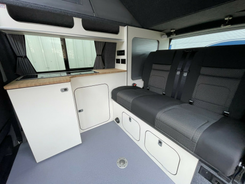 ** LIMITED EDITION **Quality at it's finest 5 speed 110 bhp High line conversion , with RIB Bed in the rear and two swivel seats in the Cab.Side kitchen with Sink , Hob and Fridge and storage to help.Reversing Camera , Folding Mirrors , Driving lights , LED headlamps...Don't miss out !!!!!!!! Call Now 01202 855531 Option 1 for Sales and Speak to the leading Vw Specialists in the South !!!!! '' We have attempted to make the above description as accurate as possible but please bear in mind that honest mistakes can happen so this description cannot form any part of any future contract. Some items fitted to models on display may be excluded from said contract' 0 bhp engine, battery charger, brand new conversion, curtains, exclusive 2 vwkc, fresh water tank, rib seat/bed, swivel cab seats, sub 5.0 meter van, sink, side running bars, reimo elevated roof with luxurious mattress, rear tailgate, rear park sensors, plgv (under 3.5t), leisure battery, isofix, heating, gas hob, fridge, elevating roof, apple car play, 4 seat belts, 240 mains & usb sockets, 2+2 berth, 'rib' bed system, 4 berth, alloy wheels, blinds, cab aircon, cruise control, euro 6, mains hookup, ulez compatible