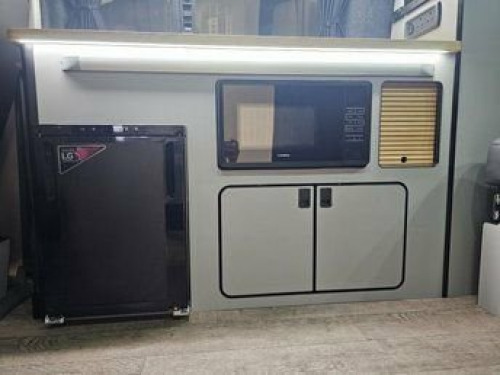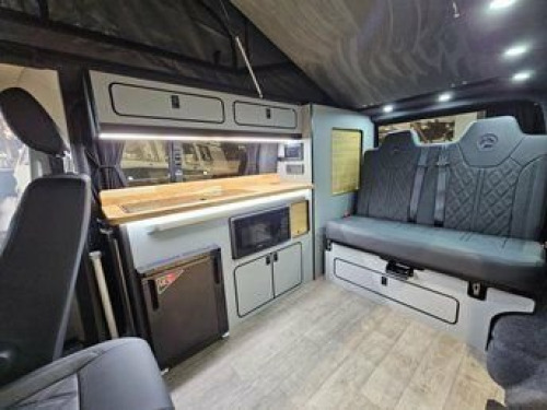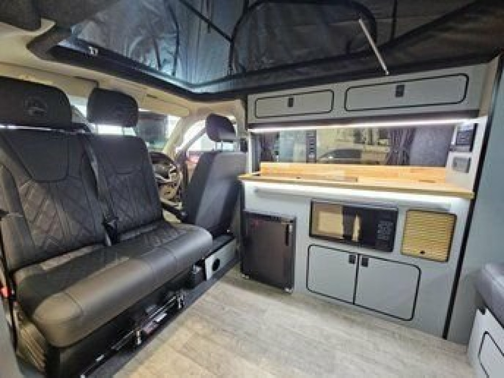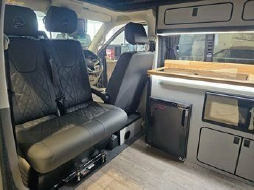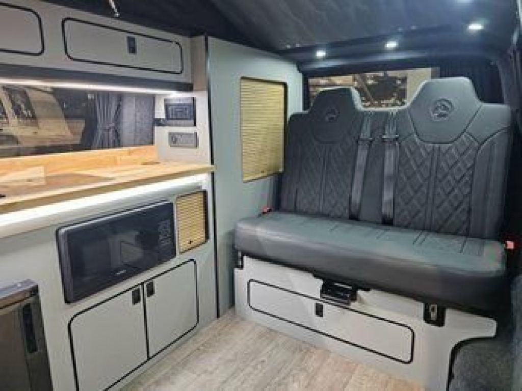 Westdubs pop top roof with scenic canvas Elevating upper bed system Privacy glass all-round Full furniture Solid oak worktop Oak tambour doors to match worktop Flush soft close doors with black flush catches Can double burner and sink unit Fold down tap 50L fridge freezer with LG compressor Dometic camper spec microwave CBE PC180 power management system Sterling split charge system 2 x 240v & 1 x double USB Wireless charger Cool white LED lighting throughout Onboard 2 x 110amp leisure batteries Onboard gas locker for 907 gas bottle Onboard 20L water tank Storage for thetford 335 porta potty within cabinetry Blackout curtains throughout Planar 2kw diesel heater with 7-day programmable timer M1 tested Rock n Roll bed 20" ALLOYS Vanstyle sidebars Vanstyle front splitter Custom painted front gloss black Grill + lower inlays Custom-painted water/electric hook-up flaps Custom-painted mirror bases Heated Front Seats, Indium Grey, Rear View Camera