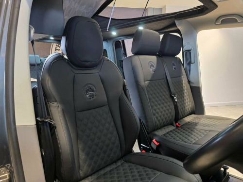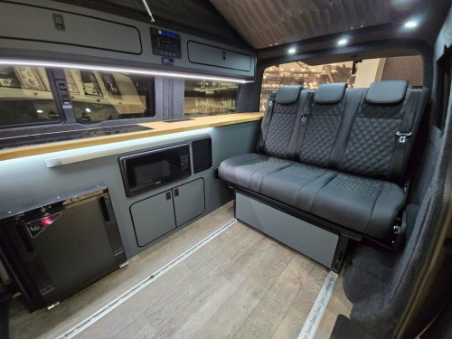 Westdubs poptop roof with scenic canvas Elevating upper bed system Privacy glass all-round Full extended furniture Solid oak worktop with hinged lid for storage Oak tambour doors to match the worktop Flush soft close doors with black flush catches Can double burner and sink unit Fold down tap 50L fridge freezer with LG compressor Dometic camper spec microwave CBE PC180 power management system Sterling split charge system Flush mount soft close sockets - 2 x 240v & 1 x double USB Cool white LED lighting throughout Onboard 130amp leisure battery Onboard gas locker for 907 gas bottle Under chassis 69L water tank High-pressure shower Storage for Thetford 335 porta potty within cabinetry Vanshade thermal blinds throughout Planar 2kw diesel heater with 7-day programmable timer 20" ALLOYS Vanstyle sidebars Vanstyle front splitter Custom painted front gloss black Grill + lower inlays Custom-painted water/electric hook-up flaps Custom-painted mirror bases Indium Grey, LED Headlights with LED Daytime Running