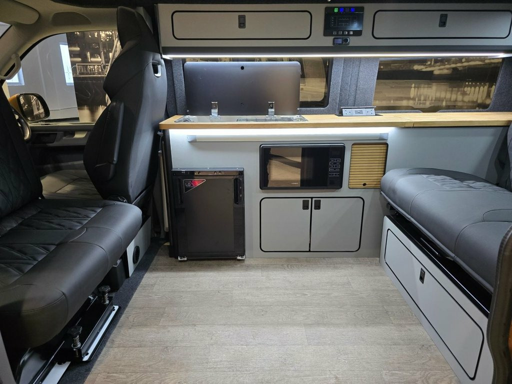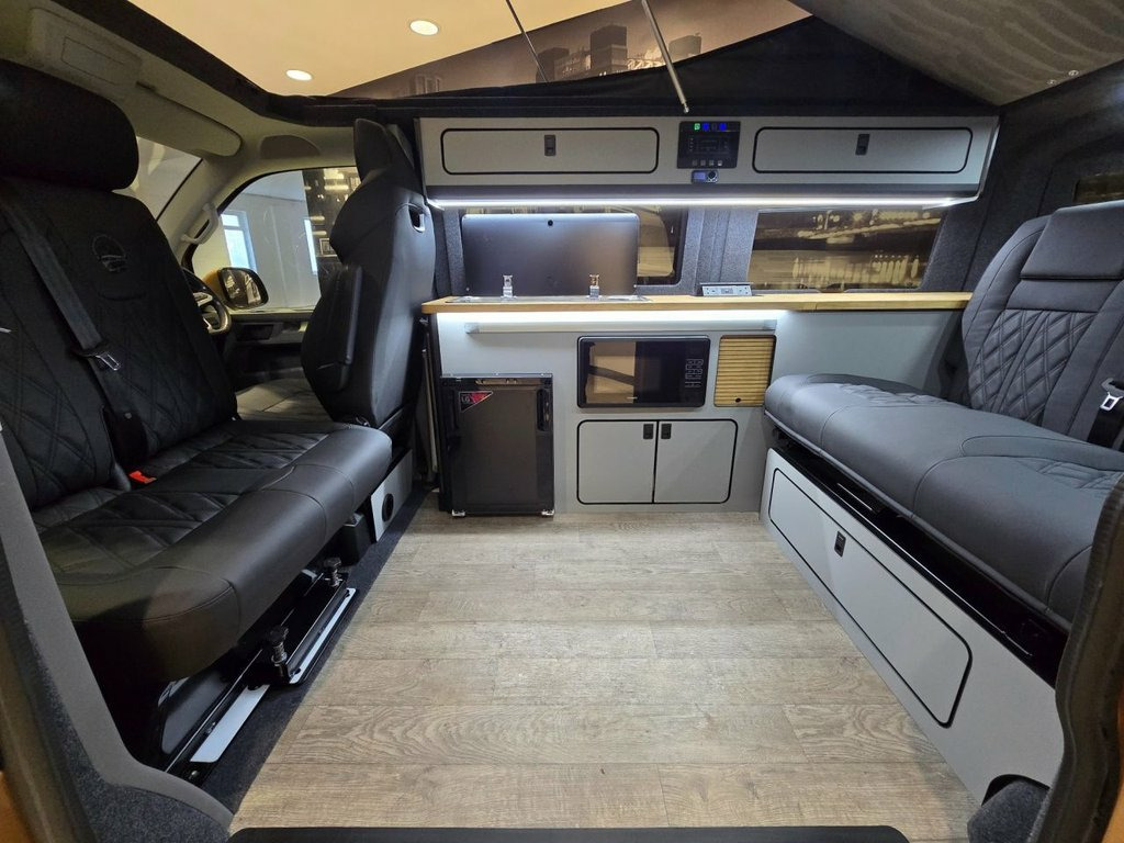 The Executive is our flagship VW Transporter campervan conversion — a masterclass in de-sign, craftsmanship, and innovation. Originally created six years ago by Lee for his own per-sonal use, this layout quickly captured attention. When customers saw the van in person, de-mand was immediate, prompting us to make it available for general sale. Lee returned to the fac-tory and worked closely with Gary, our Head of Build, meticulously refining every element to achieve the exceptional standard you see today. Over the years, countless subtle enhancements have perfected this design, resulting in a conversion that stands as the benchmark for others to follow. While many have tried to replicate it, imitations never match the original. The Executive re-mains the definitive expression of luxury, functionality, and heritage in campervan design.
