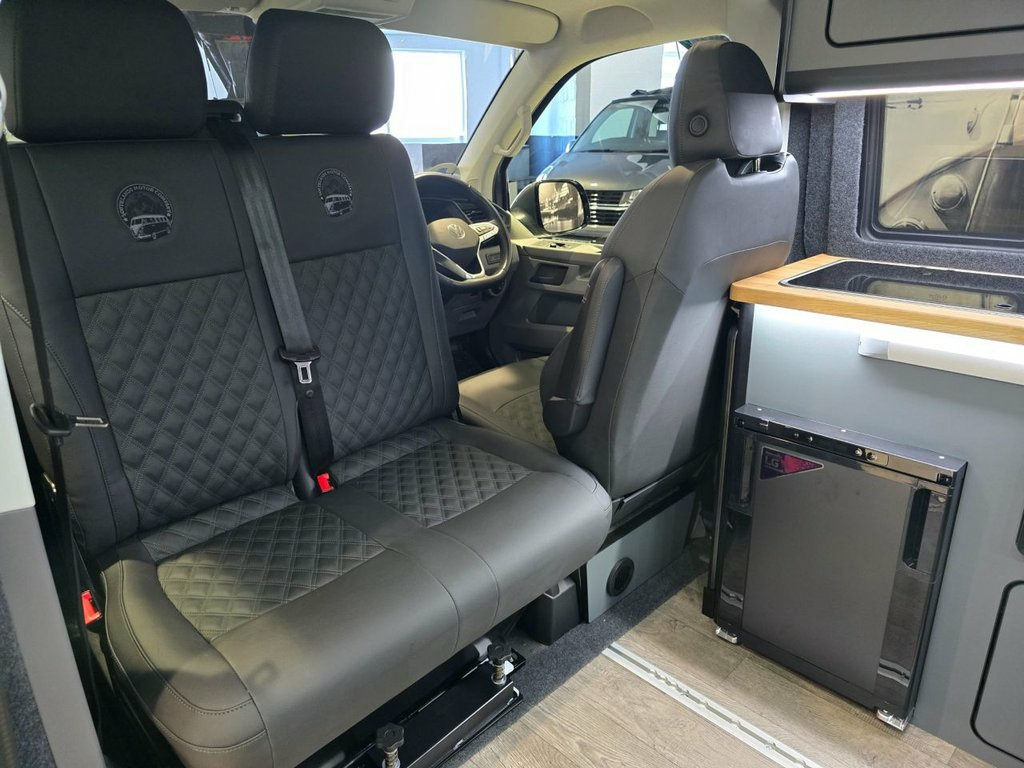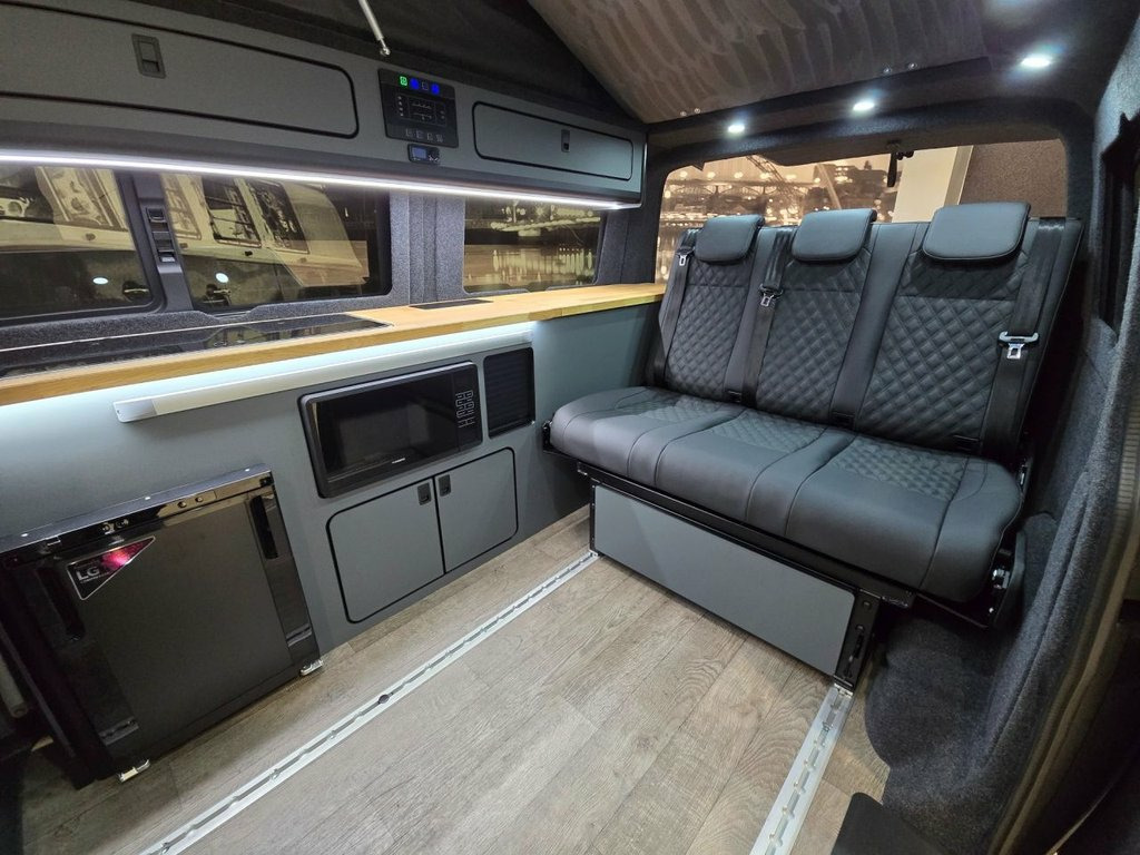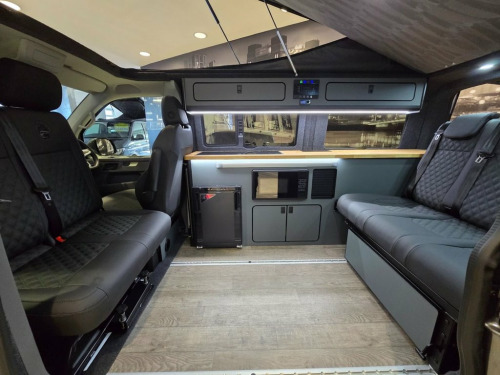 Westdubs poptop roof with scenic canvas Elevating upper bed system Privacy glass all-round Full extended furniture Solid oak worktop with hinged lid for storage Oak tambour doors to match the worktop Flush soft close doors with black flush catches Can double burner and sink unit Fold down tap 50L fridge freezer with LG compressor Dometic camper spec microwave CBE PC180 power management system Sterling split charge system Flush mount soft close sockets - 2 x 240v & 1 x double USB Cool white LED lighting throughout Onboard 130amp leisure battery Onboard gas locker for 907 gas bottle Under chassis 69L water tank High-pressure shower Storage for Thetford 335 porta potty within cabinetry Vanshade thermal blinds throughout Planar 2kw diesel heater with 7-day programmable timer 20" ALLOYS Vanstyle sidebars LV Front splitter Custom painted front gloss black Grill + lower inlays Custom-painted water/electric hook-up flaps Custom-painted mirror bases Heated Front Seats, Indium Grey, LED Headlights with Separate LED Daytime, Rear View Camera