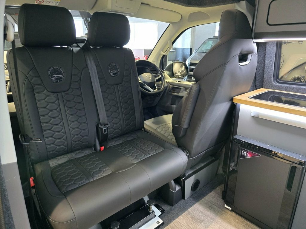 Westdubs poptop roof with scenic canvas Elevating upper bed system Privacy glass all-round Full extended furniture Solid oak worktop with hinged lid for storage Oak tambour doors to match the worktop Flush soft close doors with black flush catches Can double burner and sink unit Fold down tap 50L fridge freezer with LG compressor Dometic camper spec microwave CBE PC180 power management system Sterling split charge system Flush mount soft close sockets - 2 x 240v & 1 x double USB Cool white LED lighting throughout Onboard 130amp leisure battery Onboard gas locker for 907 gas bottle Under chassis 69L water tank High-pressure shower Storage for Thetford 335 porta potty within cabinetry Vanshade thermal blinds throughout Planar 2kw diesel heater with 7-day programmable timer 20" ALLOYS Vanstyle sidebars LV Front splitter Vanshades Custom painted front gloss black Grill + lower inlays Custom-painted water/electric hook-up flaps Custom-painted mirror bases Heated Front Seats, Indium Grey, LED Headlights with Separate LED Daytime, Rear View Camera