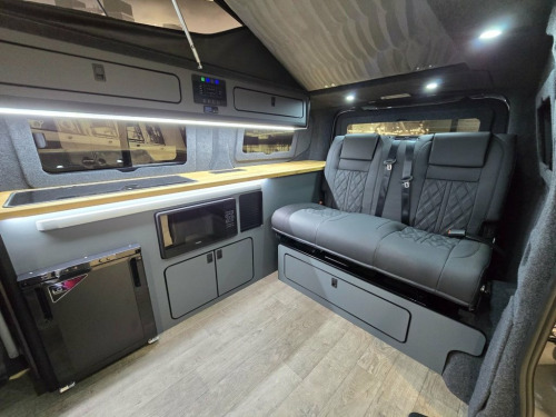The Executive is our flagship VW Transporter campervan conversion — a masterclass in de-sign, craftsmanship, and innovation. Originally created six years ago by Lee for his own per-sonal use, this layout quickly captured attention. When customers saw the van in person, de-mand was immediate, prompting us to make it available for general sale. Lee returned to the fac-tory and worked closely with Gary, our Head of Build, meticulously refining every element to achieve the exceptional standard you see today. Over the years, countless subtle enhancements have perfected this design, resulting in a conversion that stands as the benchmark for others to follow. While many have tried to replicate it, imitations never match the original. The Executive re-mains the definitive expression of luxury, functionality, and heritage in campervan design. 12-V Outlet on D-Pillar at The Bottom - , 12-Volt Outlet in Centre Console and 12-, 13in Digital Drivers Display, 13in Touchscreen Infotaintment Display w, 16in Alloy Wheels - Montreal in Silver, 2 LED Lights in Roof of Load Compartment, 2 x 15-W USB-C Data and Charging Ports i, 2-Seater Bench and Single Drivers Seat i, 2-Seater Bench with Load-Through System , 3 Super-Bright LED Lights in Rear of Car, 4 Speakers - x2 in Dashboard - x2 in Cab, 4-Way Head Restraints - Adjustable in He, 5 Additional USB-C Charging Ports, 5 Plus Promise, 55L Fuel Tank, 5G Modem, 6-Way Adjustable Driver Seat, AGM Vehicle Battery and 2nd Battery - Un, Adaptive Cruise Control System with Pred, Alternator - 230A, A