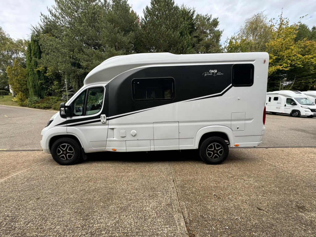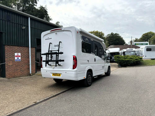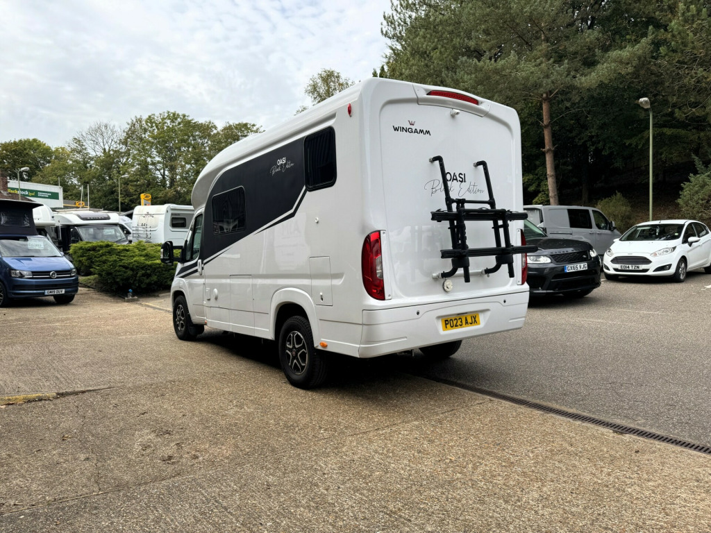 *** NEW ARRIVAL ***Andrew James Motorhomes are delighted to offer this stunning 2023 Wingamm Oasi 610M.Fiat Ducato 2.2L 140BHP with the 9 speed Automatic gearbox. The Wingamm model range is the only mass produced fiberglass monocoque body manufactured on the market.This 4 berth motorhome with 4 belted travelling seats is incredibly spacious down to its clever design offering ample storage both internally and externally and the fact that it is only 6.1 metres in length really is impressive.Below you will find a breakdown of the packs and options we have carefully selected.Option features on the Fiat chassis selected are the Drive pack and Comfort pack which feature such items as, 10'' Media System with APP control, DRL LED Running lights, Keyless start push button, Full Digital dash display, Electronic hand brake, Lane assist, auto-headlights, Tyre pressure monitoring system, Alloy wheels, 90L Fuel tank, front fog lights with cornering light assist function, heated windscreen, steering wheel controls, Dab radio and Reverse camera media system to name a few.This example has been also selected with the Design pack & Wingamm Oasi pack, feature examples are such as, front mud flaps, colour coded bumpers, gloss black front bumper grill, electric entrance step with alarm alert if left out, central locking with central locking external lockers, bin on entrance door, entrance door fly net blind, kitchen sink cover, cab blinds, cab curtain, heated water tanks, preparation for solar and much more.The interior option selected for this model is the Dolomiti Variant capsule collection, which is truly stunning and gives a warmth feel throughout the interior but with the modern touch.Fixed French Double bed with ample storage underneath accessible internally and through the external locker door. Drop down double bed with memory foam mattress.Other options are such as the additional 12v USB and mains sockets. this gives you ample sockets located around the interior for your convenience.Moving to the spacious wash room, options have been selected with the mains socket point and new roof interior lighting.Rare option Gas Oven installed.Exterior of the motorhome features the new exterior Black Edition graphic pack and wall mounted Fiamma F45s awning and Dometic reverse camera. Thule Bike RackMultiple additional options installed to previous owner:Motorhome Wi-Fi Starlink System400watts of Roof mounted solar panels with MPPT solar regulator controller3000watt inverter system wired to ring main.TV bracketViewing now available and highly recommended here at the dealership today.Disclaimer: Whilst every effort is made to ensure the accuracy of the data shown, it is not a definitive statement of specification of the vehicle and no responsibility will be accepted for errors in listing made on this site. uetooth connection, climate control, colour satnav, full leather, manufacturer direct, rain-sensing wipers, cassette toilet, end bedroom, fixed bed, hand basin, rear washroom, shower, wardrobe, 2-burner hob, 3-way fridge, fridge freezer, oven, side kitchen, 3 point seatbelts, park assist camera, power steering, adaptive cruise control, adaptive steering, cruise control, digital instrument cluster, multi-function steering wheel, steering wheel reach adjustment, traction control, trip computer, abs, service indicator, twin air bags, tyre pressure monitor, immobiliser, keyless entry, remote central locking, electric handbrake, electric mirrors, heated door mirrors, bluetooth enabled stereo, digital radio, mobile phone app interface, radio, front armrest, height adjustable drivers seat, auto lighting, body coloured bumpers, colour coded body, led 3rd brake light, led daytime running lights, 12v points, 16, 3000watt inverter, 460ah lithium batteries, 9 speed automatic, ample storage offered, drop down double bed, electronic open release lockers, external belly locker, fiamma f45 awning, fresh water onboard tank, fresh water tank heater, fully winterised, i-net box, internal blinds, internal fitted curtains, led lighting throughout, mains 240v sockets, manual drop down double bed, overhead led lighting, roof mounted solar panels, space for 2x 13kg gas bottles, swivel captains chairs, thule bike rack, truma dual fuel heating system, truma electric/gas water heater, weight 3500kg, wi-fi system with wireless router, wrap around cab blinds, wrap around cab curtain, 16'' Alloys