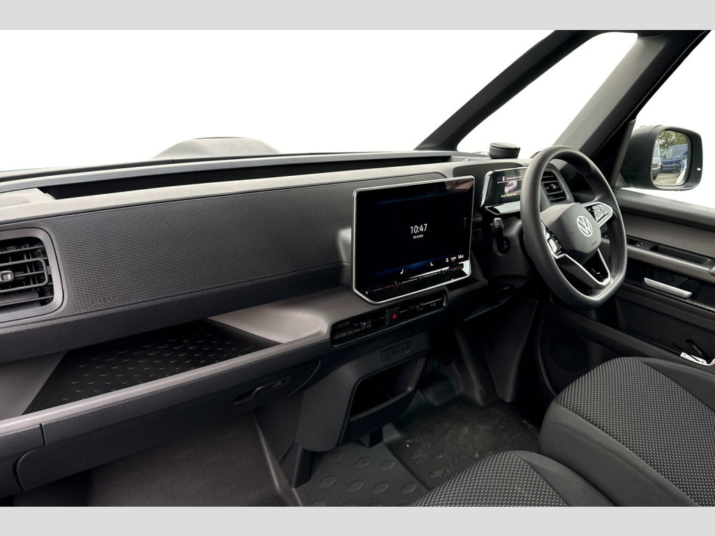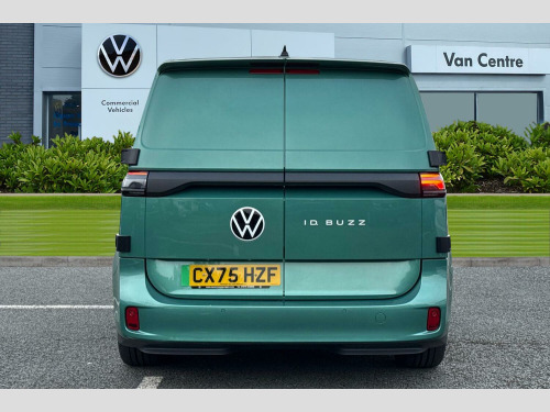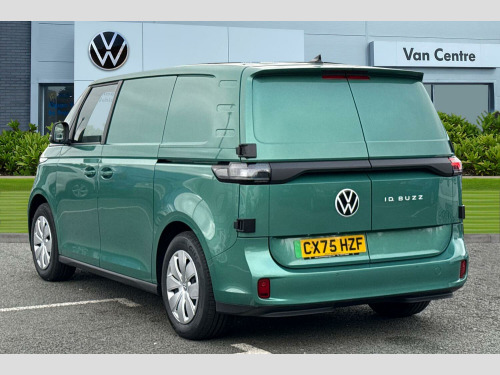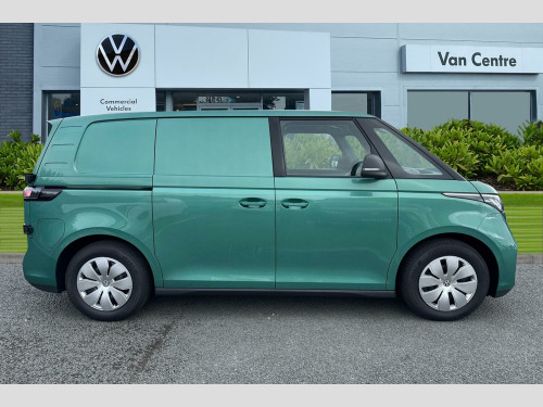 The ID. Buzz Cargo Pro Commerce stands out with its impressive 282 bhp electric engine, delivering strong performance for a commercial vehicle. This power output, combined with its electric drivetrain, positions it favourably against many other vehicles in its class, offering a responsive and efficient driving experience. The 84 kWh total battery capacity further supports its robust performance and range. This model represents a forward thinking choice for businesses seeking a reliable, capable, and environmentally conscious transport solution. Body coloured bumpers, Heat reflecting glass, Body coloured door handles, Unique ID Buzz badging, Sliding door on the left and right, Autonomous emergency braking front assist with monitoring and braking for vehicles, pedestrians, cyclists, Cruise control system with speed limiter and Intelligent speed assist, PAS, Driver and front passenger airbags, First aid kit with warning triangle and safety vest, Front passenger airbag deactivation, Seat belt reminder with electric contact in buckle, Tyre pressure monitoring system (TPMS), Car2X technology, Driver alert system, Front and rear park distance control, eCall emergency system, Electronic engine sound, Black decorative trim, Soul - soul dashboard, Heated front seats, Single driver seat with manual height adjustment, 2 speakers (full-range), 2 USB-C ports in dashboard and 2 USB-C charging sockets in front, App-Connect incl. App-Connect Wireless for Apple CarPlay and Android Auto, Digital radio reception (DAB+), We Connect preparation, Carpet in Black, Door trim panel and armrest in plastic, Illuminated mirrors in sun vinsors with airbag label on sun visor and B-pillar, Lockable glovebox, Multifunction steering wheel with touch control, Robust floor covering in cab, Steering wheel, dashboard and central controls in black, LED load compartment lighting, Wooden floor covering in load compartment, Anti-theft alarm system, interior monitoring in cab, back-up horn and towing protection, Keyless start incl central locking with two remote control folding keys incl interior control safelock and Illuminated door handle recesses, 11 kW AC charging power, Charging cable mode 3 type 2, 32 A (6 metres length)