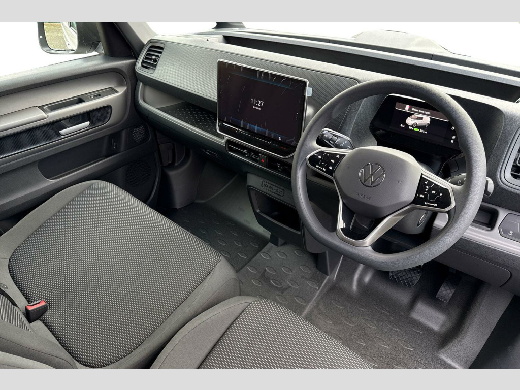 The ID. Buzz Cargo Pro Commerce is equipped with a range of features to enhance your driving and working experience. Stay connected and entertained with App Connect, offering wireless Apple CarPlay and Android Auto. Enjoy comfort during every journey with heated driver and passenger seats and a 1 Zone Climatronic system featuring an enhanced air filter and stationary air conditioning. For enhanced visibility and safety, it includes LED headlights and parking sensors at both the front and rear. These features collectively position the ID. Buzz Cargo as a superior choice in its class, providing efficiency, comfort, and advanced technology. Body Coloured Bumpers, 1-Zone Climatronic with Enhanced Air Filter and Stationary Air Conditioning, 18in Steel Wheels - Silver, 2x USB-C Ports in Dashboard and 2 USB-C Charging Sockets in the Front, 3 Seats - Drivers Seat and 2 Seater Front Passenger Bench Seat, 3-Point Seat Belts in Front with Height Adjustment and Seat Belt Pretensioners, Anti-Theft Alarm System with Interior Monitoring in Cab - Backup Horn and Tow-Away Protection, App Connect with Wireless Connection for Apple Carplay and Android Auto, Autonomous Emergency Braking - Front Assist with Pedestrian and Cycling Monitoring, Black Bumpers, Car2X - Intelligent Vehicle Networking, Central Locking System - Keyless-Go without SAFELOCK, Charging Cable Mode 3 - Type 2 32A - 6m Length, Cruise Control System with Speed Limiter and Intelligent Speed Assist, DAB+ - Digital Radio Reception, Door Trim Panel and Armrest in Plastic, Driver Alert System, Driver and Front Passenger Airbags with Front Passenger Airbag Deactivation, Electronic Engine Sound, First Aid Kit and Warning Triangle and Safety Vest, Fixed Bulkhead, Heat Reflective Glass, Heated Driver and Passenger Seat, Hub Caps, Illuminated Mirrors in Sun Visors with Airbag Label on Sun Visor and B-Pillar, Keyless Advance with SAFELOCK, LED Headlights, LED Load Compartment Lighting, LED Rear Combination Lights, Multifunction Steering Wheel with Touch Control, Onboard Battery Charger - 11kW AC, Operating Voltage 12v, Parking Sensors - Front and Rear, Power Adjustable and Heated Door Mirrors, Preparation for Discover Pro Navigation System, Radio - Ready 2 Discover with 12.9in Colour Touch-Screen, Rear Wing Door without Window Apperture, Robust Floor Covering in Cab, Seat Belt Reminder - Electric Contact in Buckle, Seats - Height Adjustment for Driver Seat, Side and Curtain Airbags for Driver and Front Passenger, Sliding Doors - Left and Right, Speakers x2 - Full Range, Steering Wheel - Dashboard and Central Controls in Black, Surround Lighting on Rear, Tailgate Latch without Unlocking Function from Inside, Tool Kit and Tyre Mobility Set 12-Volt Compressor and Tyre Sealant, Tyre Pressure Monitoring System, We Connect Preparation, Windshield Wiper Intermittent Control, Wooden Floor Covering in Load Compartment, eCall Emergency System