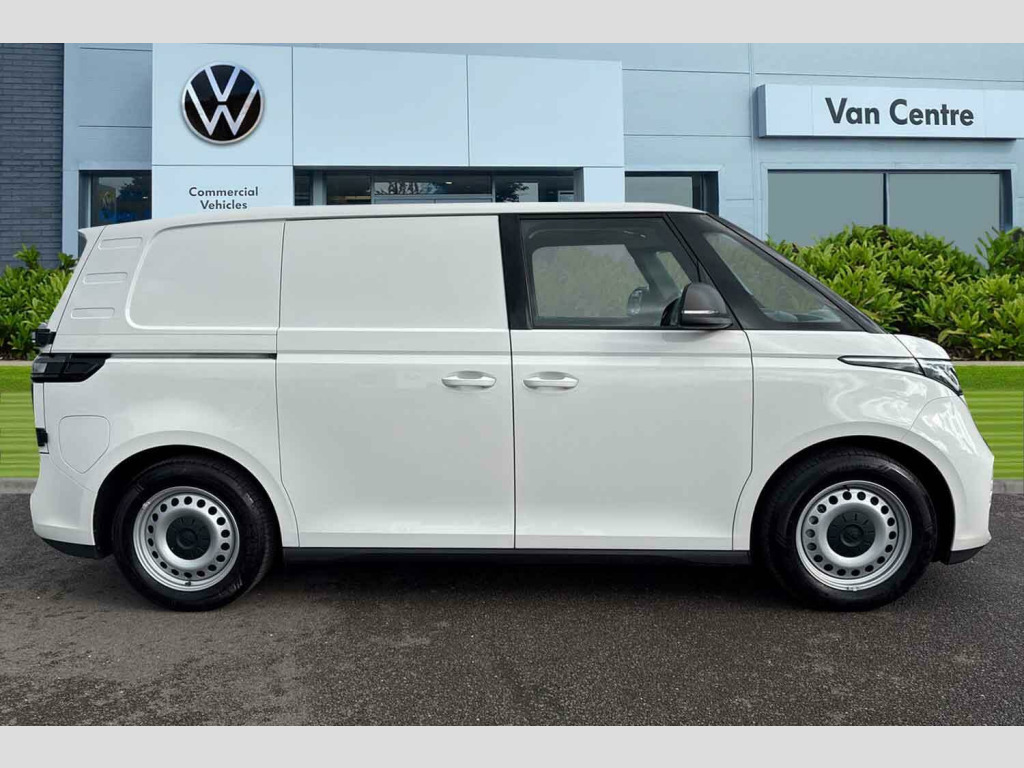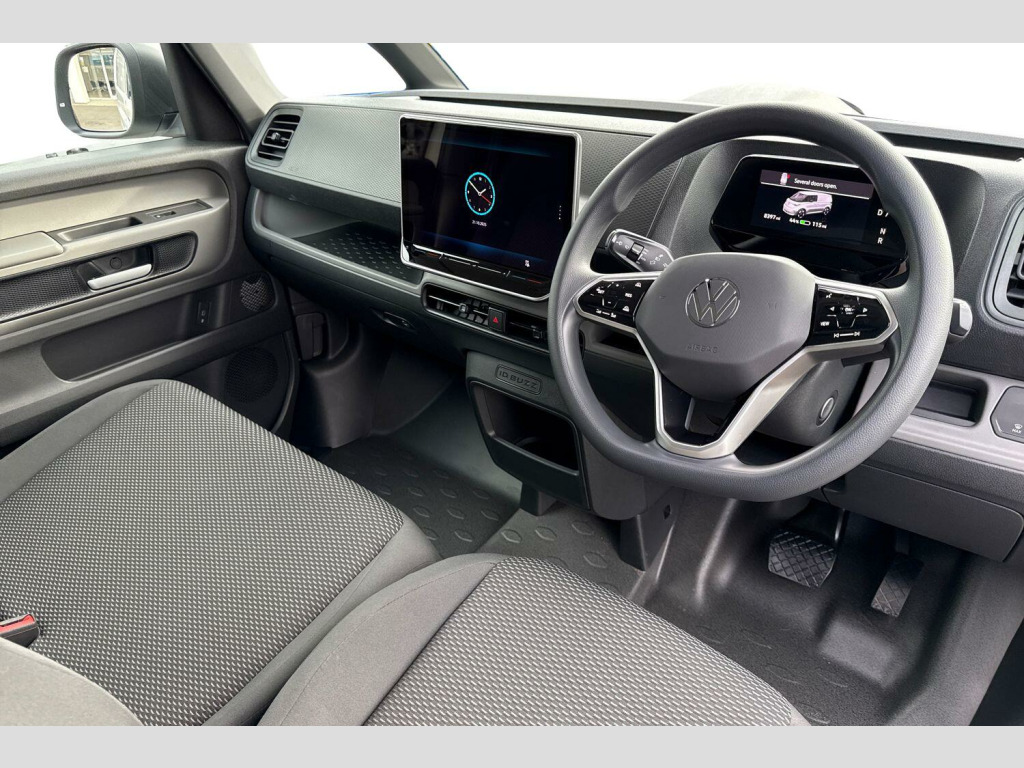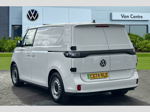The highlights of this ID. Buzz Cargo are truly impressive, setting it apart from other vehicles in its class. Its electric powertrain delivers a powerful 282 bhp, offering responsive performance for all your hauling requirements. The generous 277 mile range is a significant advantage, allowing for extended journeys without frequent stops. This combination of robust performance and extensive range makes the Volkswagen ID. Buzz Cargo Pro Commerce Auto an exceptional choice for businesses seeking efficiency and capability. Body coloured bumpers, Heat reflecting glass, Body coloured door handles, Unique ID Buzz badging, Sliding door on the left and right, Autonomous emergency braking front assist with monitoring and braking for vehicles, pedestrians, cyclists, Cruise control system with speed limiter and Intelligent speed assist, PAS, Driver and front passenger airbags, First aid kit with warning triangle and safety vest, Front passenger airbag deactivation, Seat belt reminder with electric contact in buckle, Tyre pressure monitoring system (TPMS), Car2X technology, Driver alert system, Front and rear park distance control, eCall emergency system, Electronic engine sound, Black decorative trim, Soul - soul dashboard, Heated front seats, Single driver seat with manual height adjustment, 2 speakers (full-range), 2 USB-C ports in dashboard and 2 USB-C charging sockets in front, App-Connect incl. App-Connect Wireless for Apple CarPlay and Android Auto, Digital radio reception (DAB+), We Connect preparation, Carpet in Black, Door trim panel and armrest in plastic, Illuminated mirrors in sun vinsors with airbag label on sun visor and B-pillar, Lockable glovebox, Multifunction steering wheel with touch control, Robust floor covering in cab, Steering wheel, dashboard and central controls in black, LED load compartment lighting, Wooden floor covering in load compartment, Anti-theft alarm system, interior monitoring in cab, back-up horn and towing protection, Keyless start incl central locking with two remote control folding keys incl interior control safelock and Illuminated door handle recesses, 11 kW AC charging power, Charging cable mode 3 type 2, 32 A (6 metres length)