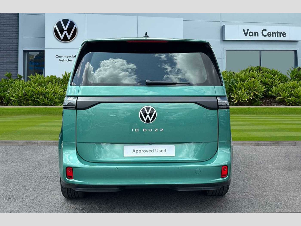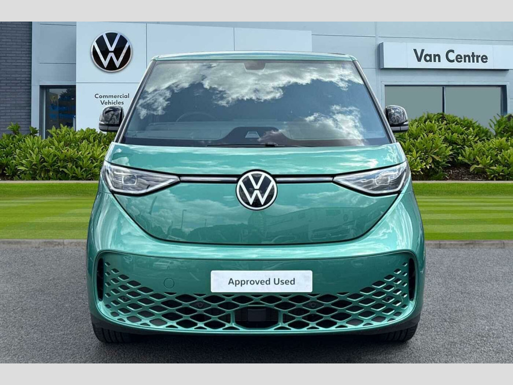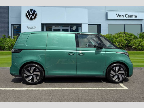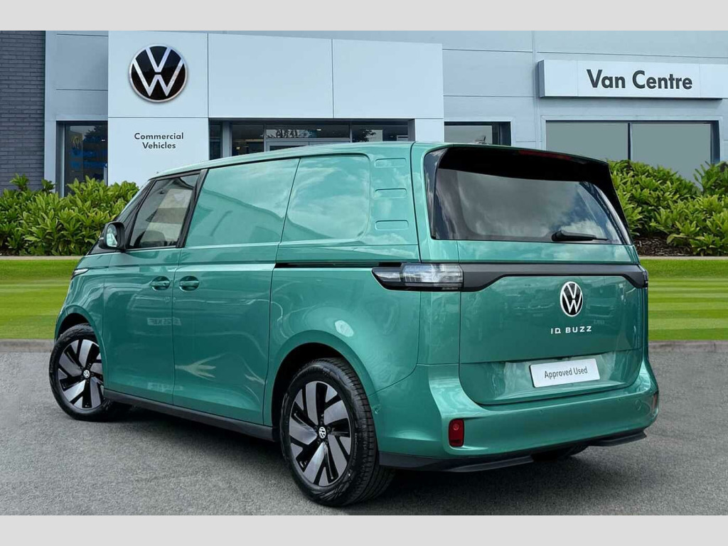 The ID. Buzz Cargo Pro Commerce Plus is designed for efficiency and performance. Its electric powertrain delivers an impressive 282 bhp, a highlight that signifies its superior power compared to many other vehicles in its class. For convenience, a full charge at home using a 7kW charger takes approximately 35 hours, while rapid public charging can take the battery from empty to 80% in just 32 minutes. This combination of range, charging speed, and power makes the ID. Buzz Cargo a compelling choice for modern businesses. Bay Leaf Green-Metallic Paint, Bay Leaf Green-Metallic Paint, Single Front Passenger Seat, IQ Light Package, Tailgate with Window Aperture with Rear Window Wiper, Buzz Box - Removable Centre Console With Storage Compartments and Mounting Points In Floor Between Front Seats, Bay Leaf Green-Metallic Paint, IQ Matrix LED headlamps, Illuminated moulding between headlights, Illuminated door handle recesses, Parking sensors front + rear, Rear view camera system, Surround lighting with logo projector, Power folding/heated external mirrors, High gloss black mirror caps, Tailgate with heated rear window + wash wipe system, Twin sliding side load doors, Single front passenger seat, Manual height adjustment for both fronts seats, ISOFIX for front passenger seat, Basket fabric upholstery, Buzz Box, 1 zone Climatronic with enhanced air filter and stationary air conditioning, LED interior lights in passenger/load compartment, Heated windscreen, Heated front seats, Dynamic headlight range control with dynamic cornering lights, Heated washer nozzles, Intelligent Park Assist, Discover Pro Navigation system, Wired + wireless App Connect, Apple Car Play, Android Auto, Twin USB-C interfaces, Metallic - Bay Leaf Green, Fabric - Basket seat covers/Titanium Black - Soul, 19" Tilburg bi-colour alloy wheels, Part of the Swansway group-one of the largest and leading official VW Van Centre groups with access to 700+ used VW Commercial Vehicles, We stock one of the largest range of new and used VW Commercial Vehicles, We have a dedicated used sales team to assist with all aspects of your enquiry, We offer a 14 day exchange your vehicle policy if you're not completely satisfied, We offer a full HD personalised video walk around-just call a member of the team on 0121 260 3000, Reserve today with just a fully refundable £500 reservation, Heat reflecting glass, Heated windscreen, Body coloured bumpers, Body coloured door handles, Unique ID Buzz badging, Sliding door on the left and right, Autonomous emergency braking front assist with monitoring and braking for vehicles, pedestrians, cyclists, Intelligent Park Assist incl. Park Assist with memory function and Park Assistance Plus with park distance control, PAS, Folding door mirrors with front passenger lowering function, Driver and front passenger airbags, First aid kit with warning triangle and safety vest, Front passenger airbag deactivation, Seat belt reminder with electric contact in buckle, Tyre pressure monitoring system (TPMS), Car2X technology, Driver alert system, eCall emergency system, Electronic engine sound, Black decorative trim, Soul - soul dashboard, Heated front seats, Single driver seat with manual height adjustment, 2 speakers (full-range), 2 USB-C ports in dashboard and 2 USB-C charging sockets in front, App-Connect incl. App-Connect Wireless for Apple CarPlay and Android Auto, Digital radio reception (DAB+), Discover Pro navigation with 12.9" screen, We Connect preparation, Carpet in Black, Door trim panel and armrest in plastic, Illuminated mirrors in sun vinsors with airbag label on sun visor and B-pillar, Lockable glovebox, Robust floor covering in cab, Steering wheel, dashboard and central controls in black, LED load compartment lighting, Wooden floor covering in load compartment, Driver assistance package plus - ID. Buzz Cargo, Anti-theft alarm system, interior monitoring in cab, back-up horn and towing protection, Keyless start incl central locking with two remote control folding keys incl interior control safelock, 11 kW AC charging power, Charging cable mode 3 type 2, 32 A (6 metres length), Airstop tyres
