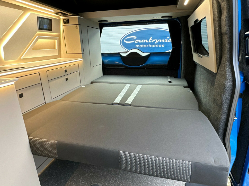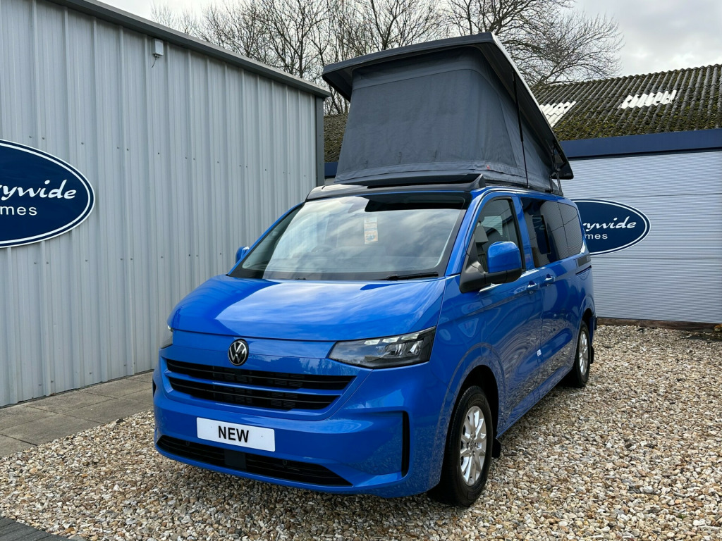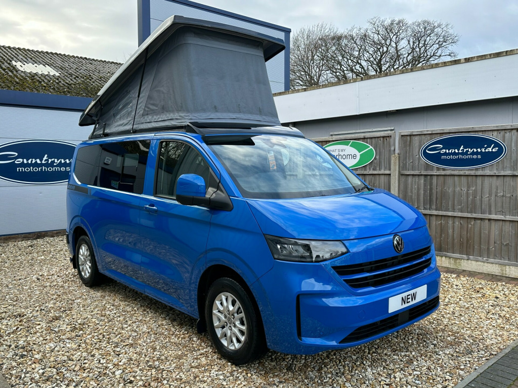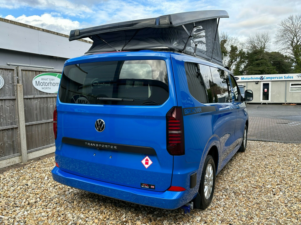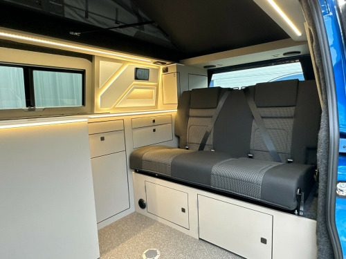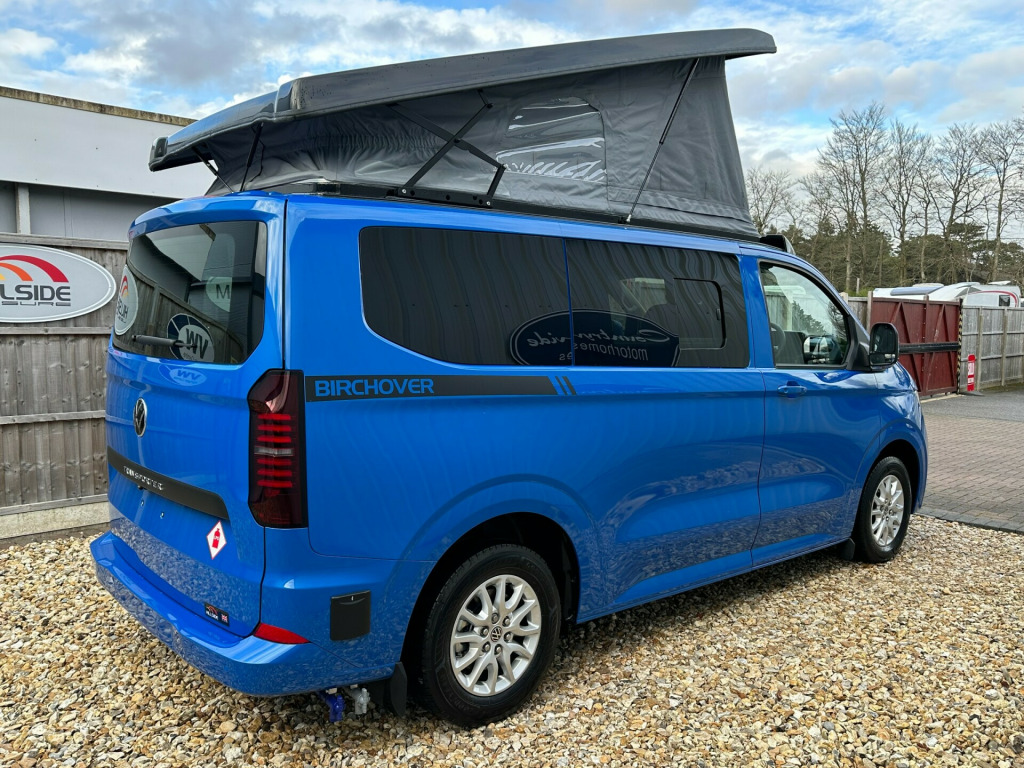 The VW Kamper Centre are proud to announce the All New T7 Birchover Iconic, spacious and versatile. The Birchover Classic is all of these things and more. The VW based campervan conversion provides a fresh, ingenious take on the conventional side conversion, blending clever technology and ideas with traditional values. Benefitting from years of evolution and adaptation, everything works together seamlessly to help take you on your most memorable adventures.Place that order and don't delay !!!!!! Call now 01202 855531 Option 1 for Sales or come and visit our Kamper Centre !!!!!! ib' bed system, 110 bhp engine, 240 mains & usb sockets, 4 berth, 4 seat belts, 6 speed manual, alloy wheels, apple car play, battery charger, blinds, blue metallic paintwork, brand new conversion, cab aircon, camera, cruise control, drop-down bed, elevating roof, euro 6, fresh water tank, fridge, front sensors, gas grill, gas hob, heated front seats, heating, led lighting, leisure battery, mains hookup, plgv (under 3.5t), rear parking sensors, rear tailgate, rib seat/bed, short wheel base, single swivel seat, sink