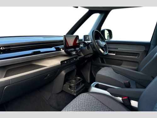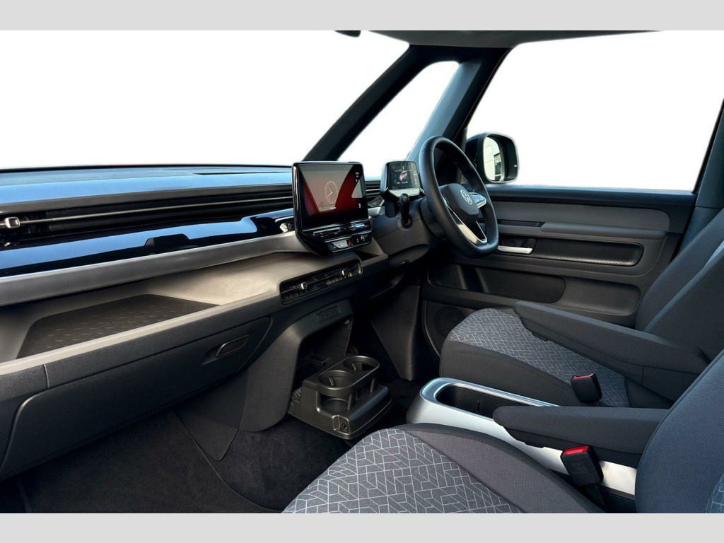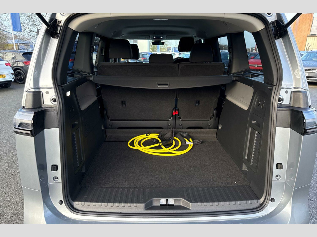 Dark tinted rear windows, Heated rear window, Heated washer nozzles, Heated windscreen, Rear window wiper and washer system with intermittent control, Windshield wiper intermittent control with rain sensor, Body coloured bumpers, Body coloured door handles, D pillar styling badges, Power latching sliding doors, Auto headlights, Daytime running lights, Integrated fog lights with cornering function, LED 3rd brake light, LED Headlights, LED rear combination lamp, Surround lighting with logo projector, ABS, Autonomous emergency braking front assist with pedestrian and cyclist monitoring, Electronic parking brake, Driver alert system, Dynamic road sign display, Electromechanical power steering, Electronic engine sound, Front and rear parking sensors, Oncoming vehicle braking when turning including swerve support, Auto dimming rear view mirror, Gloss black door mirrors, Power adjustable, heated and folding mirrors with front passenger lowering function, 3-point rear outer seat belts with ECE label, 3-point seat belts with seat belt and lap belt pretensioner in front and height adjustment, Driver and front passenger airbag with front passenger airbag deactivation, Electric child locks, First aid kit with warning triangle and safety vest, Front and rear seatbelt audible and visual warning indicator, Front curtain and side airbags with center airbag, Proactive passenger protection system, Tyre pressure monitoring system, Front carpet mats, 2-zone Climatronic with enhanced air filter and stationary air conditioning, 1 USB-C charging socket in front passenger area, 2 USB-C ports in dashboard, 2 waste bins for door pockets, 4 USB-C charging sockets in rear, Airbag label on sun visor and B-pillar, Black coloured steering wheel, integrated control panel, bezel for infotainment display and central controls, Buzz box - removable centre console with storage compartments and mounting points in vehicle floor between front seats, Lockable glovebox with illumination, Luggage compartment cover, Driver and passenger footwell lighting, LED luggage compartment lighting, Sun visors with illuminated vanity mirrors, App-Connect incl. App-Connect Wireless for Apple CarPlay and Android Auto, E-call, Voice control system, We connect preparation, Wireless charging, DAB Digital radio receiver, Car2X technology, Tailgate latching without unlatching function front inside, Tailgate with window aperture and with power latching, Digital cockpit, Black decorative trims, 3 rear seat head restraints, 3 seat bench in 2nd row, 60/40 split folding rear seat bench, Drivers and front passengers seat height adjustment, Front head restraints, 11 kW AC onboard charger, Charging cable mode 3, type 2 32 A, Airstop tyres
