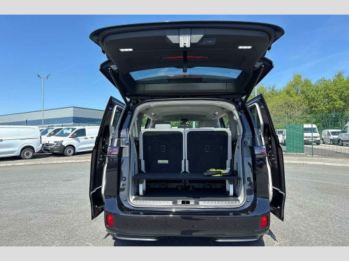 To make an enquiry about this vehicle call our friendly sales team today! Deep Black Pearl, 7 Seat Configuration, Park Assist Pro, Heated multifunction steering wheel with touch control, Central locking system with keyless locking and starting system Keyless Advanced with SAFELOCK, Adaptive Cruise Control ACC stop & go with speed limiter, Park Assist Plus incl. Park Distance Control, Front and rear view camera system and two side cameras, Charging cable, mode 2, type 2 (10A), Charging cable mode 3 type 2, 32 A (6 metres in length), IQ.LIGHT - LED matrix headlamps with automatic headlight control, poor weather light, entry lighting, Heated washer nozzles, Heated multifunction steering wheel with touch control, Heated front seats, Multi-flex board (brings the boot space to height of seats when folded flat), Power tailgate (opening/closing) with Easy Open and Easy Close, 'Discover Pro' navigation system, Wireless charging for mobile device with antenna, 20" 'Solna' bi-colour alloy wheels, Dark tinted rear windows, Rear window wiper and washer system with intermittent control, Body coloured bumpers, Body coloured door handles, D pillar styling badges, Power latching sliding doors, Auto headlights, Daytime running lights, Integrated fog lights with cornering function, LED 3rd brake light, LED Headlights, LED rear combination lamp, Surround lighting with logo projector, ABS, Autonomous emergency braking front assist with pedestrian and cyclist monitoring, Electronic parking brake, Driver alert system, Dynamic road sign display, Electromechanical power steering, Electronic engine sound, Front and rear parking sensors, Oncoming vehicle braking when turning including swerve support, Gloss black door mirrors, Power adjustable, heated and folding mirrors with front passenger lowering function, 3-point rear outer seat belts with ECE label, 3-point seat belts with seat belt and lap belt pretensioner in front and height adjustment, Driver and front passenger airbag with front passenger airbag deactivation, Electric child locks, First aid kit with warning triangle and safety vest, Front and rear seatbelt audible and visual warning indicator, Front curtain and side airbags with center airbag, Proactive passenger protection system, Tyre pressure monitoring system, Front carpet mats, 2-zone Climatronic with enhanced air filter and stationary air conditioning, Airbag label on sun visor and B-pillar, Luggage compartment cover, Driver and passenger footwell lighting, LED luggage compartment lighting, Sun visors with illuminated vanity mirrors, App-Connect incl. App-Connect Wireless for Apple CarPlay and Android Auto, E-call, We connect preparation, Wireless charging, DAB Digital radio receiver, Car2X technology, Tailgate latching without unlatching function front inside, Tailgate with window aperture and with power latching, 3 rear seat head restraints, 3 seat bench in 2nd row, 60/40 split folding rear seat bench, Drivers and front passengers seat height adjustment, Front head restraints, 11 kW AC onboard charger, Charging cable mode 3, type 2 32 A, Airstop tyres