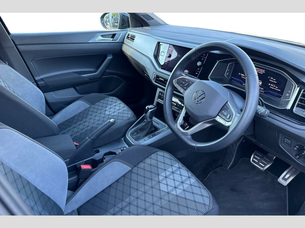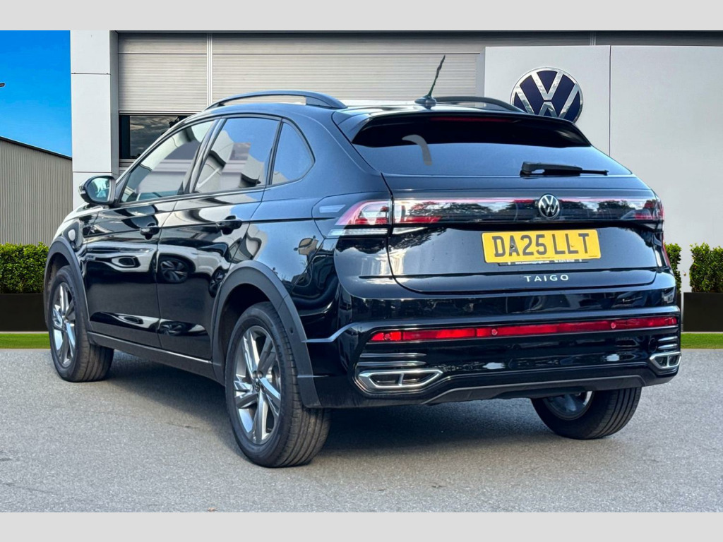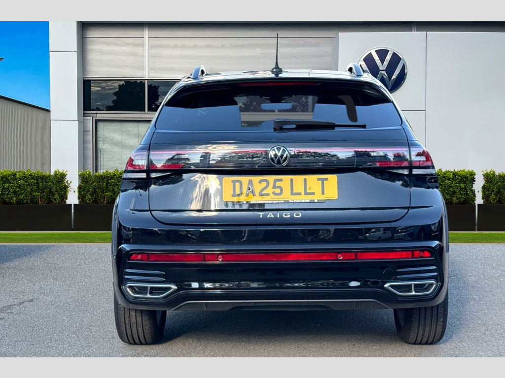 Metallic paint, Discover media navigation including streaming and internet - 6 speakers, multifunctional camera, traffic sign recognition, Metallic - Deep black pearl, Electric windows, Rear wash/wipe with intermittent wipe setting, Body coloured bumpers, Bumpers in R-Line style, External USB type C socket and charging sockets, Front scuff plates with R-Line logo, Rear side wing doors, Ambient lighting with logo projection, Auto headlights, LED rear combination lamp, LED third brake light, Rear fog light on one side, reversing light on both sides, Electronic stability control, Front and rear disc brakes, Hill start assist, Adaptive cruise control, Advanced driver attention and drowsiness monitor, Driving profile selection, Dynamic road sign display, Power Steering, Aspherical driver's exterior mirror, Left convex exterior mirror, Power folding adjustable/heated exterior mirrors and front passenger exterior mirror lowering function, 2 x 3-point seatbelts/outer rear seats with ECE label, 3-point seat belts in front with pretensioner and height adjustment, 3-point seatbelt for centre rear seat, Adaptive driver and front passenger airbags with passenger airbag deactivation function, Driver and front passenger safety-optimised head restraints, Extended and predictive pedestrian/ cyclist protection, Front curtain and side airbags with center airbag, Manual rear child locks, Single tone horn, Tyre pressure loss indicator, Black carpets, Front + rear carpet mats, Air care climatronic air conditoning system with active combination filter and 2-zone temperature control, 12V socket in centre console, Black roof lining, Chrome bezel for instrument cluster, vents, door handles + gear shift, Front centre armrest, Height and reach adjustable steering wheel, Karoso artvelours cloth upholstery, Leather trimmed gear knob, Leather wrapped multifunction steering wheel, Luggage compartment floor, Seat covers in grey + titanium black, Stainless steel pedals, Storage compartment under front seats, 2 front reading lights, Front footwell illumination, Interior ambient lighting and surround lighting, Luggage compartment light, XDS electronic differential lock for improved traction and handling, Sun visors with illuminated vanity mirrors, App-Connect including App-Connect Wireless, Wireless Charging including Bluetooth, Digital radio reception (DAB+), Diversity antenna for FM reception, WeConnect plus, Digital cockpit pro - 10.25" high resolution TFT dash display screen with customizable menus and information, e-Call (emergency call), Travel assist including emergency assist, Washer fluid level indicator, Start-stop system with battery regeneration (recuperation - energy recovery during braking), Grey anodised matte decorative inserts in dash and front door panels, 3 rear head restraints, 3 seat bench in 2nd row, Child seat anchor for child seat system i-Size, 2x top tether and child seat anchor in front on front passenger side, Driver and front passenger seat height adjustment, Front sports comfort seats, Lumbar support for driver's and front passengers seat, Single front passenger seat, Split folding backrest with centre armrest and unsplit rear seat bench, Chrome Package - Taigo, Drivers assistance pack - Taigo, Light and Sight pack including High beam assist - Taigo, Anti-theft alarm system with interior monitoring, backup horn, and towing protection, Low rolling resistance tyres