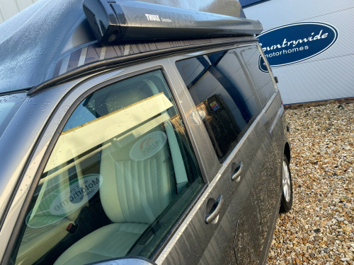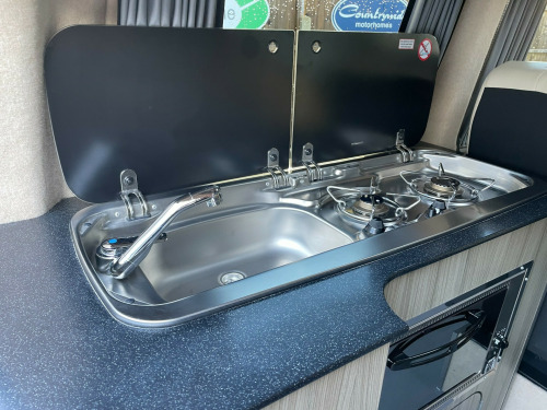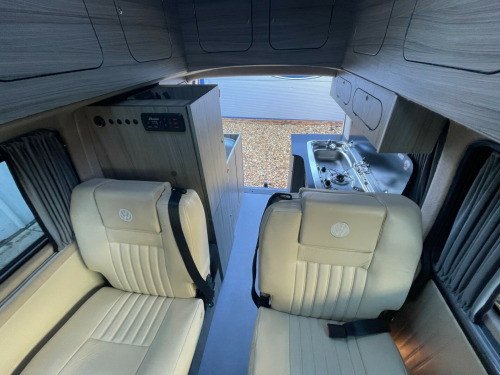 SWB, HIGH-TOP, BARN DOORS; Nearside sliding habitation door opens into lounge with 2 forward-facing seats with belts. Both cab seats swivel to set up lounge and it can be turned quickly into 2 single beds or a double. There is a table that can mount to the floor area for dining. Kitchen area to the rear comprising gas oven/grill & 2-burner hob, 12v compressor fridge & sink/drainer. Cassette toilet in privacy cupboard. This camper includes diesel heating, LED lighting and full leather upholstery. Don't miss out call no 01202 855531 Option 1 for sales. '' We have attempted to make the above description as accurate as possible but please bear in mind that honest mistakes can happen so this description cannot form any part of any future contract. Some items fitted to models on display may be excluded from said contract' ib' bed system, 102 bhp, 2 berth, 240 mains & usb sockets, 4 seat belts, alloy wheels, awning, barn doors, battery charger, cab aircon, cassette toilet, cruise control, curtains, diesel hob, fresh water tank, fridge, front dinette, gas grill/oven, gas hob, heating, highline spec, indium grey metallic paintwork, leather trim, leisure battery, lovely original condition, mains hookup, plgv (under 3.5t), sink, sub 5.0 meter van, swivel cab seats, towbar, waste tank